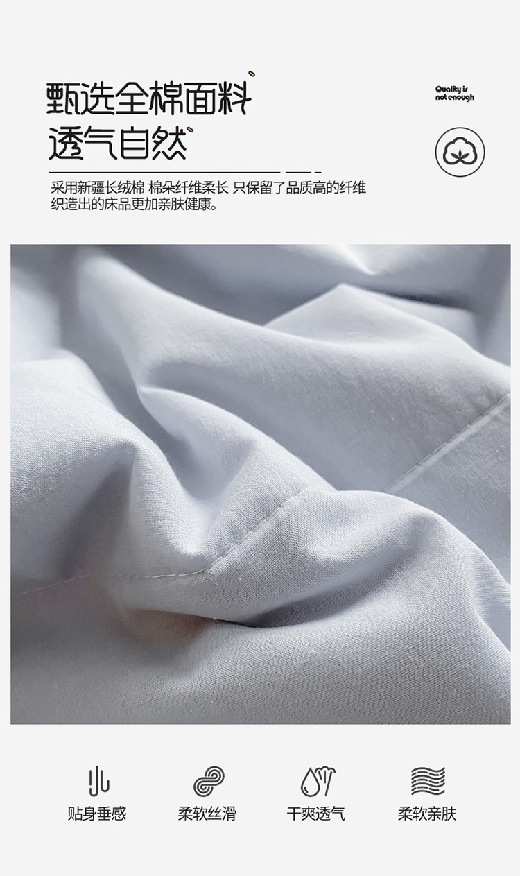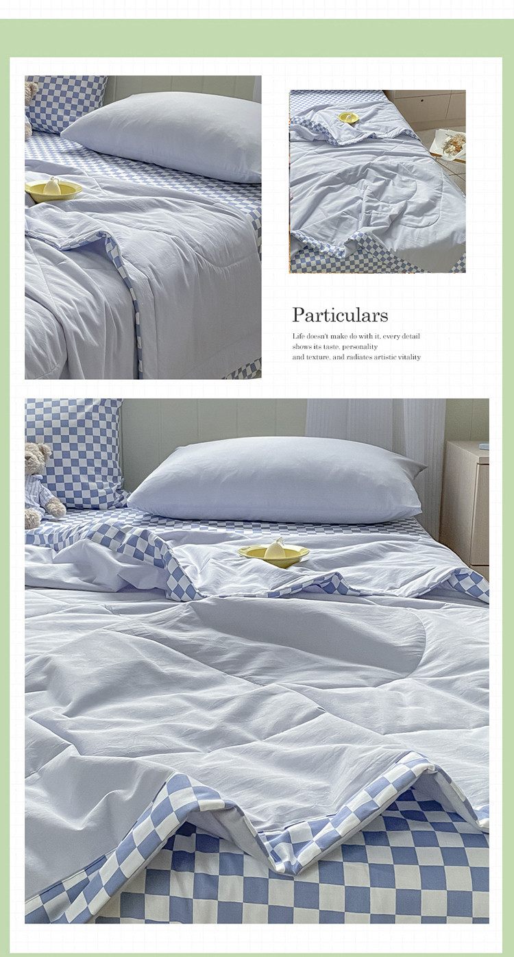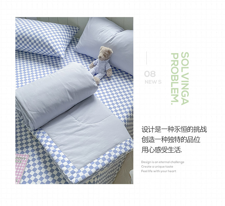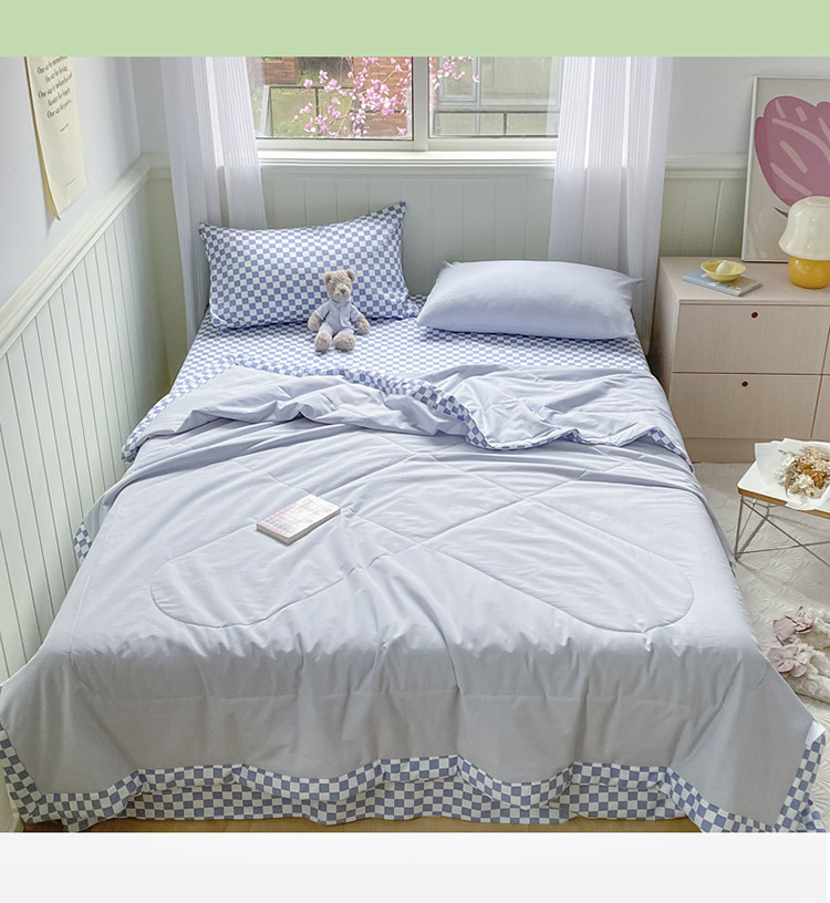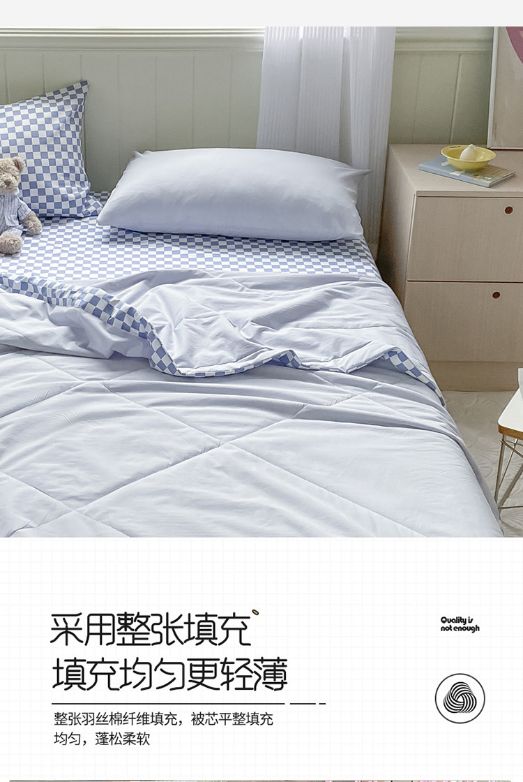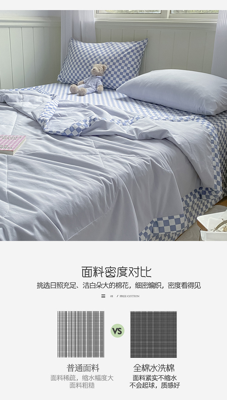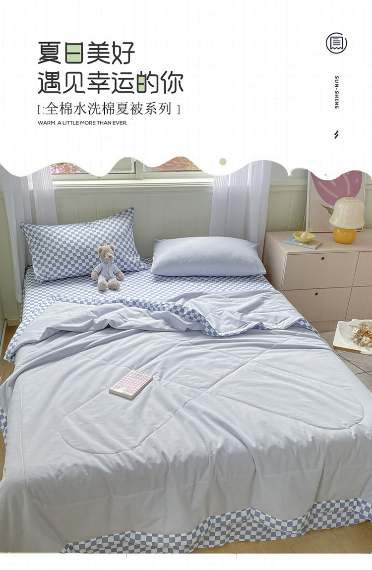 商品名称:三朵 2022新款水洗棉夏被四件套 浅蓝格