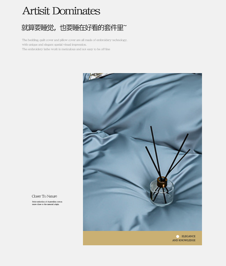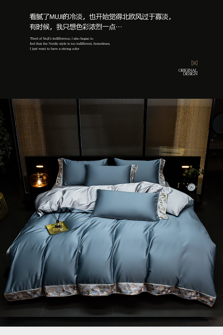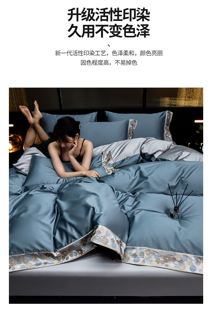 商品名称:金莎浪 2023新款瑾雅系列100支长绒棉四件套 瑾雅-灰蓝