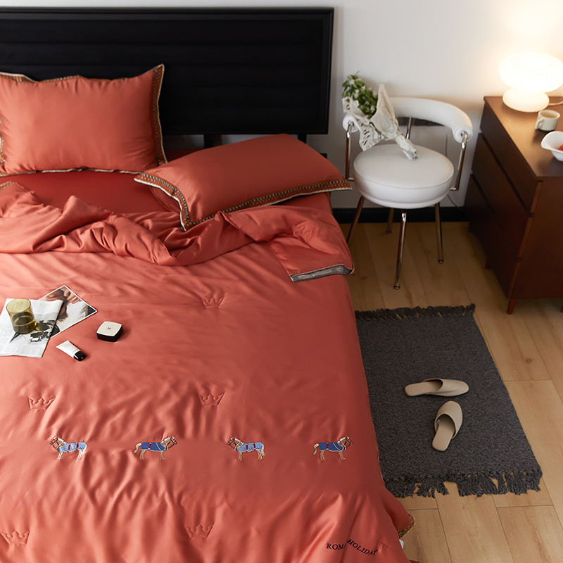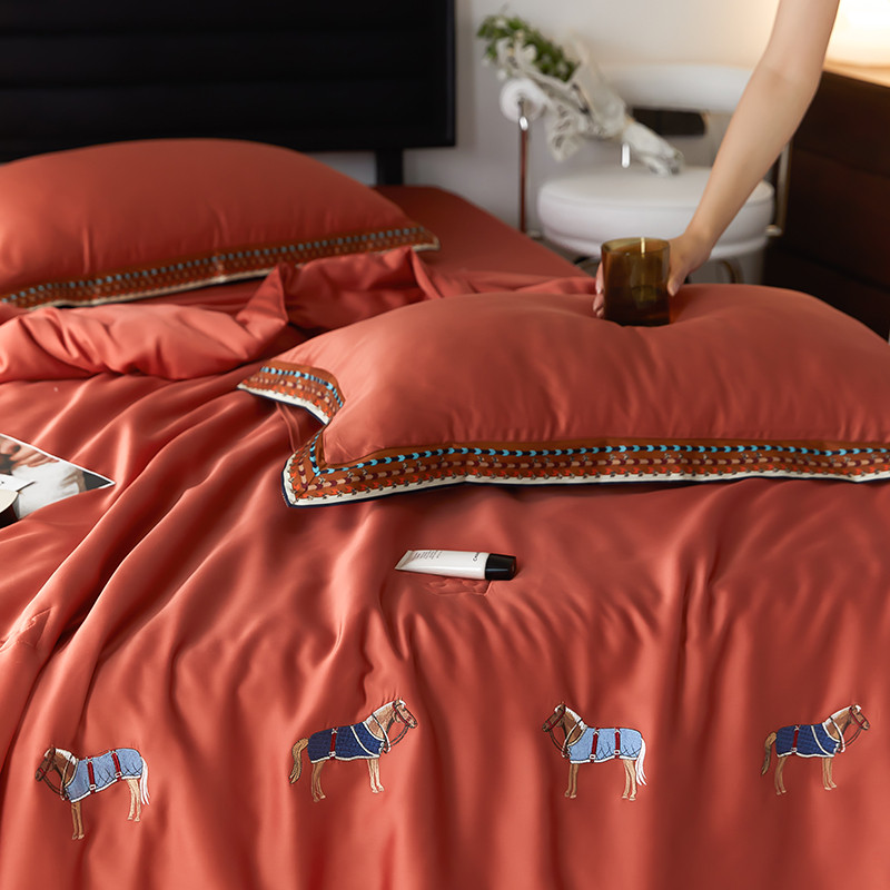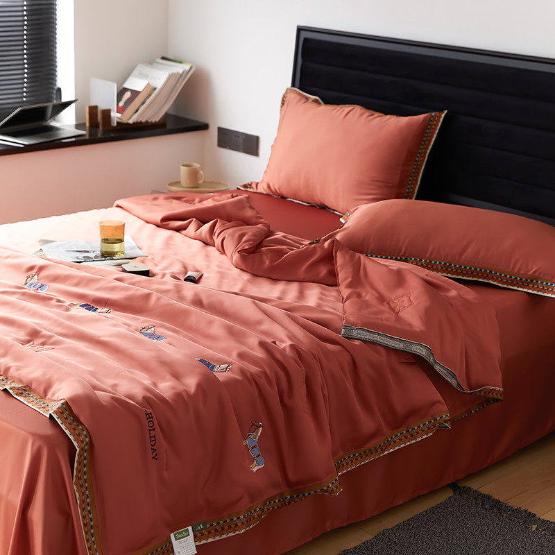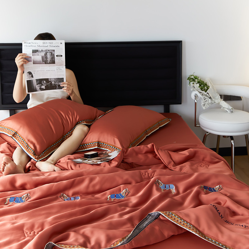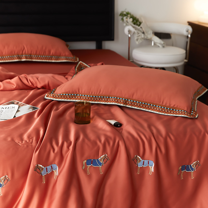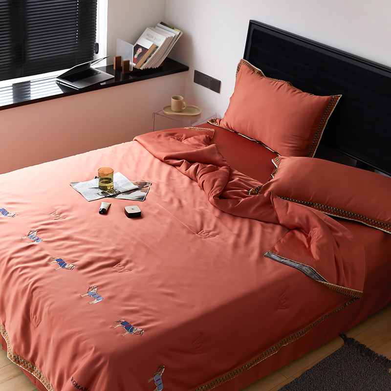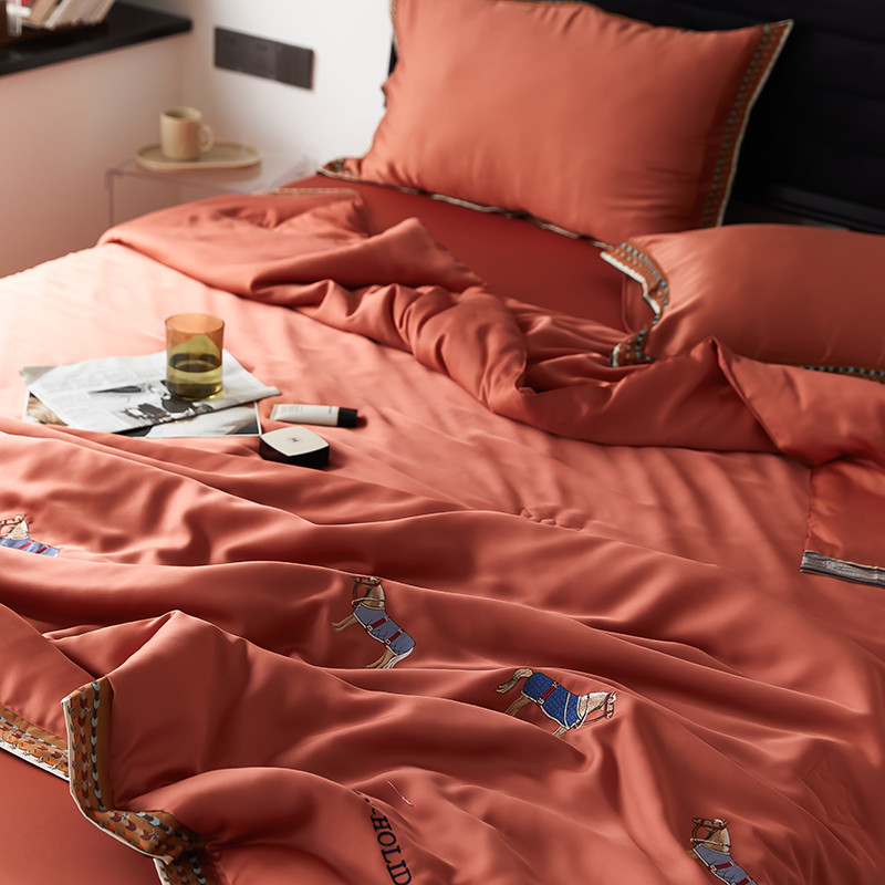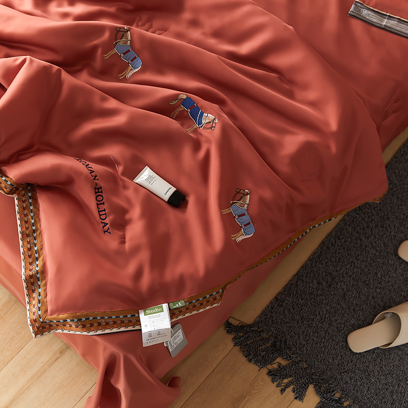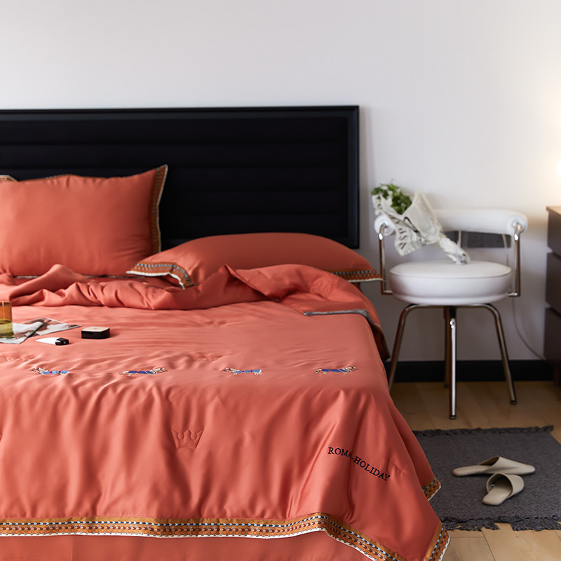 商品名称:汇庭 2022新款奥地利60天丝数码花边夏被-马德里 马德里橘色