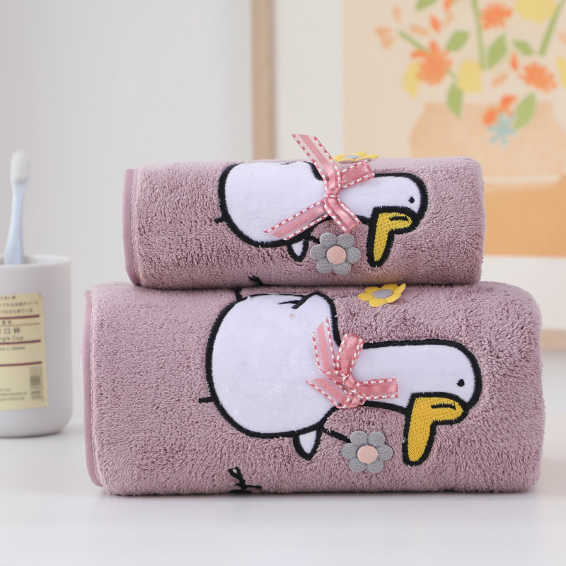当前位置: 91家纺网 > 商品网购 > 居家日用 > 毛巾/浴巾/浴袍 > 浴巾方巾毛巾套件 > 双梦毛巾 2022新款可爱大鹅套巾 紫色浴巾70*140