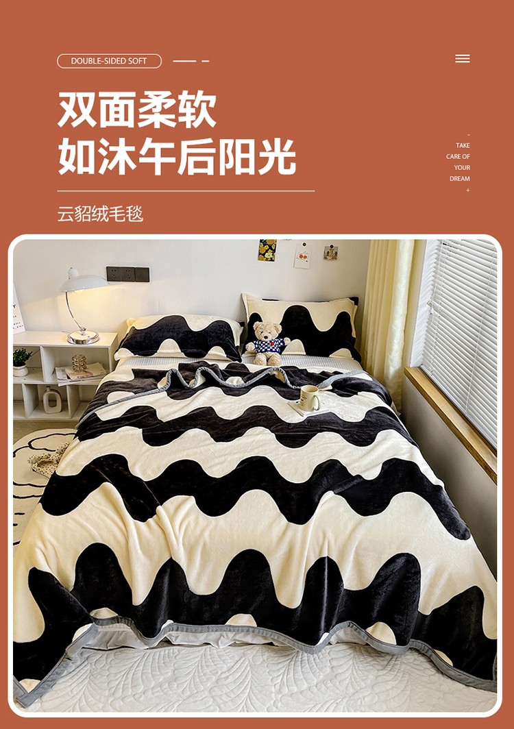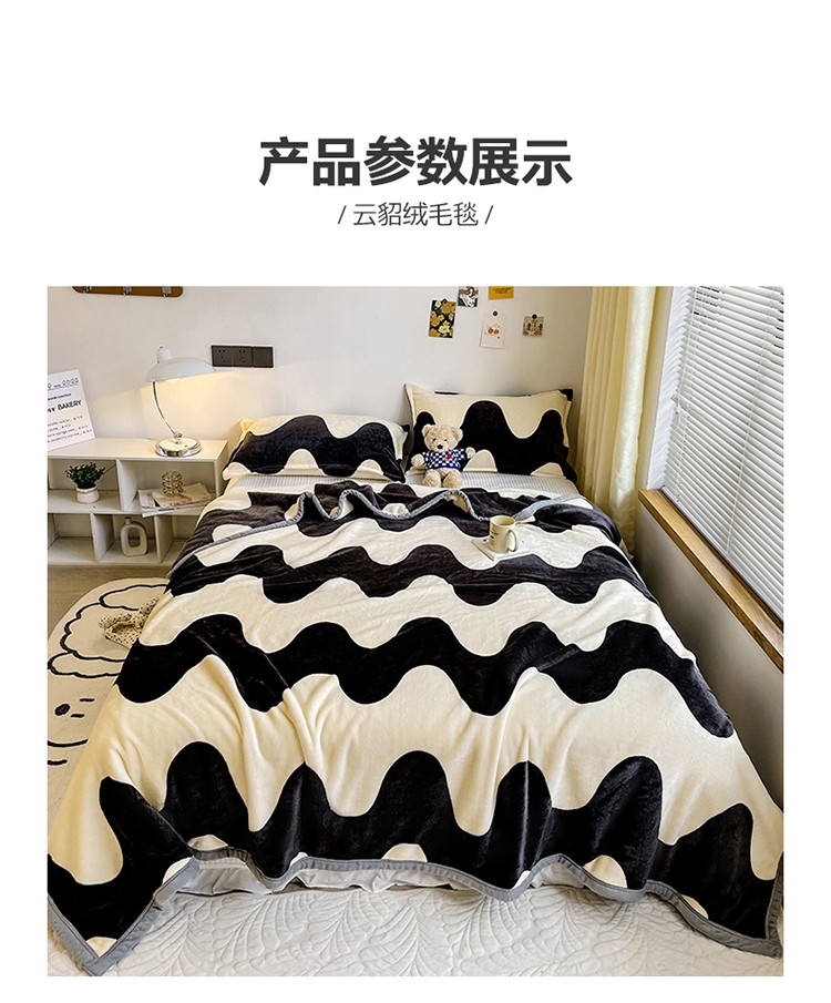 当前位置: 91家纺网 > 商品网购 > 毛毯休闲毯绒毯 > 毛毯 > 雅萱家纺 2022新款印花云貂绒毛毯 黑白波波