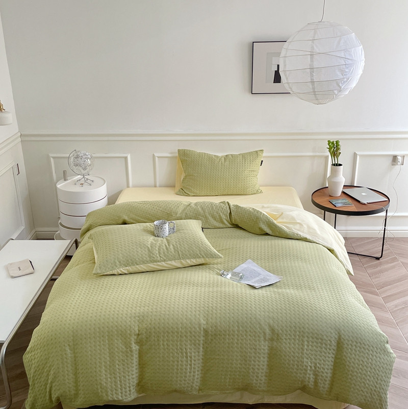 (总)梦享生活 2022新款水洗棉华夫格双拼四件套,华夫格焦糖,华夫格芒果黄双拼,华夫格奶白,华夫格水蓝纯色,华夫格水蓝双拼