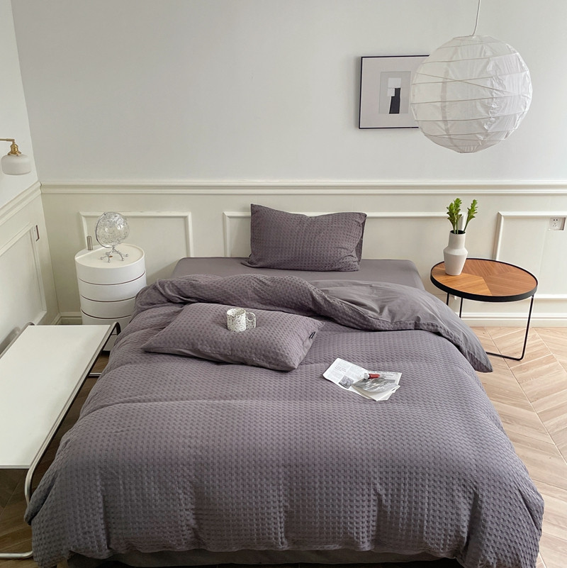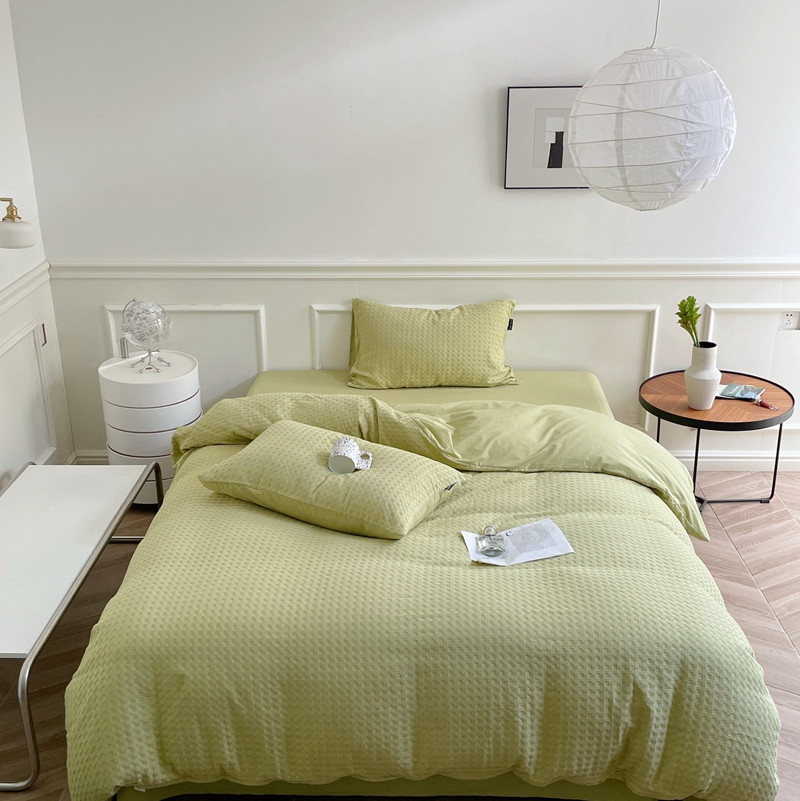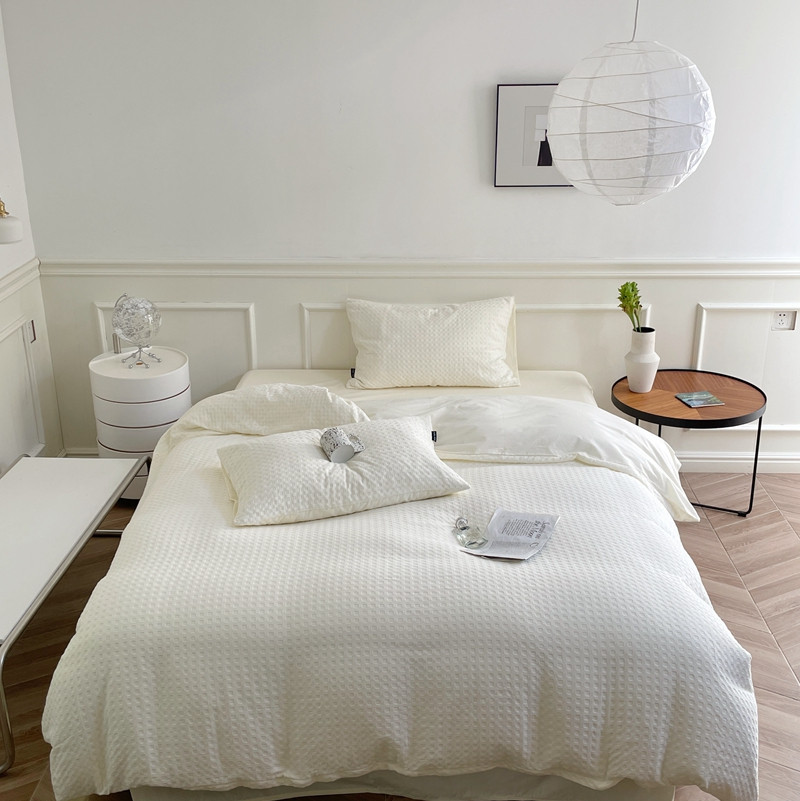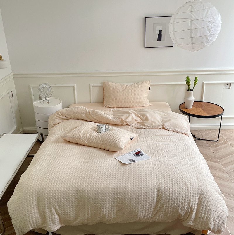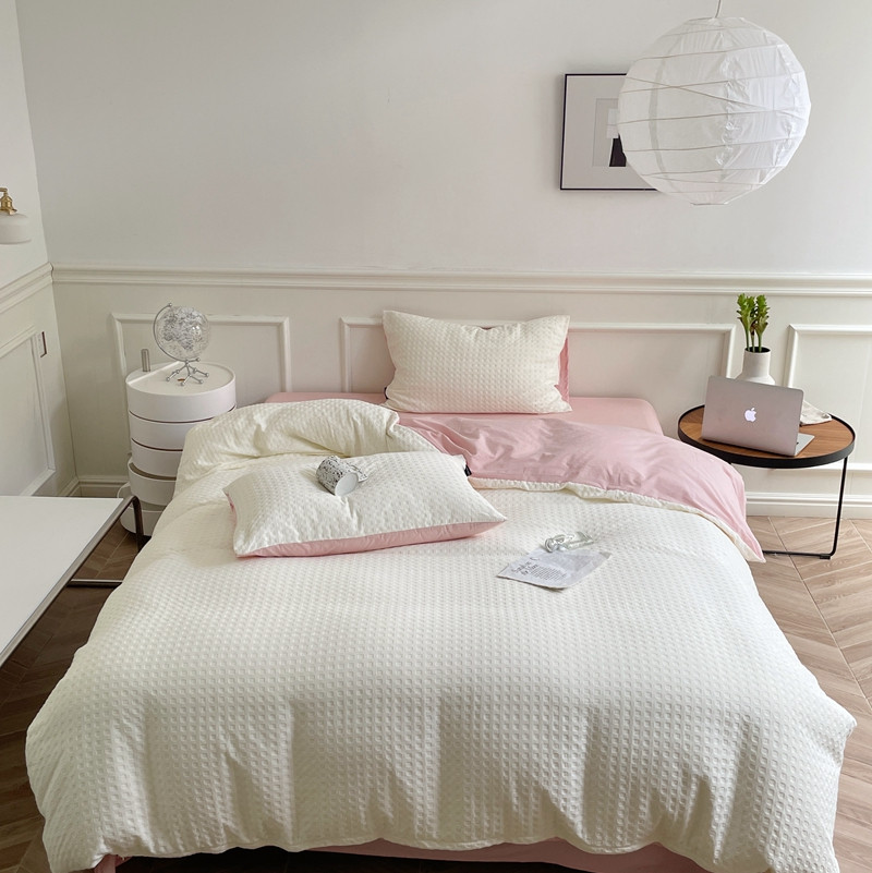 (总)梦享生活 2021新款华夫格水洗棉四件套,白色,粉色,黄色,卡其,浅灰,天蓝