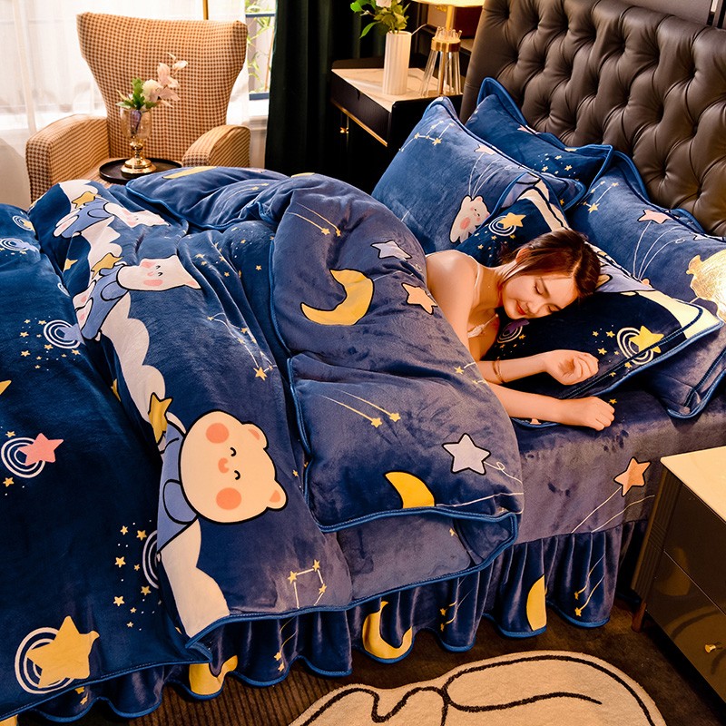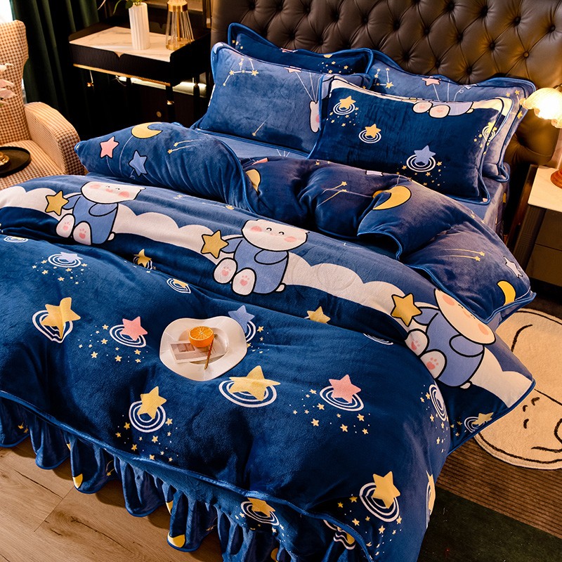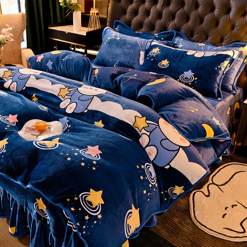 2025新款230克8.5斤加厚高克重牛奶绒金貂绒法莱绒四件套冬季加绒法兰绒床裙款拉布布,拉布布