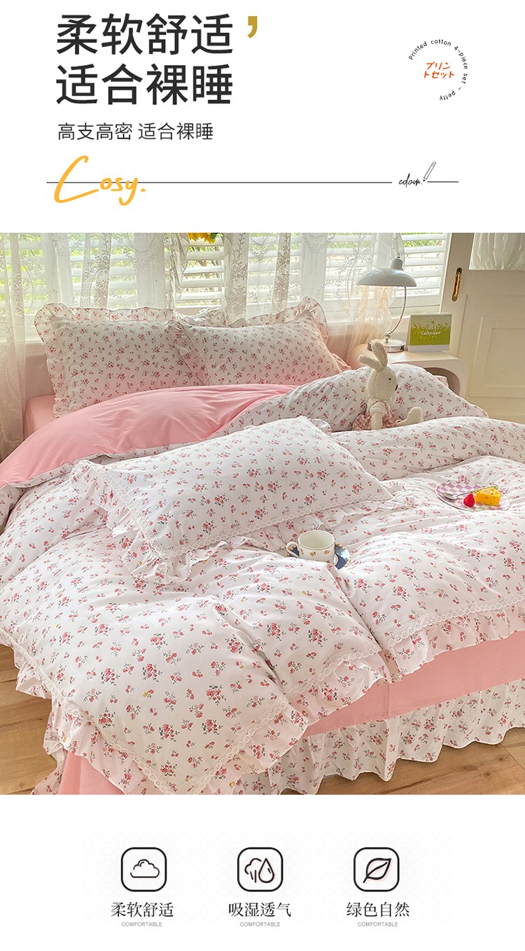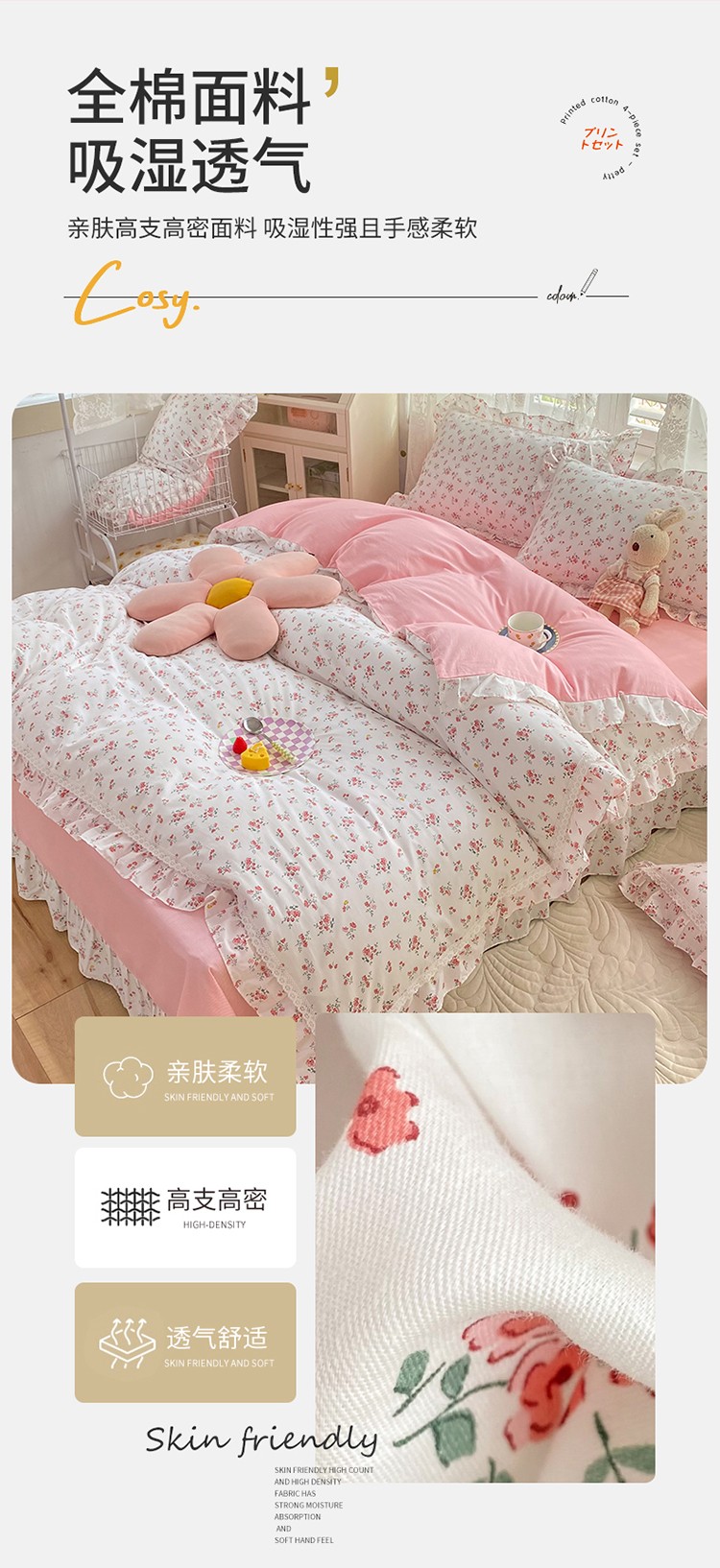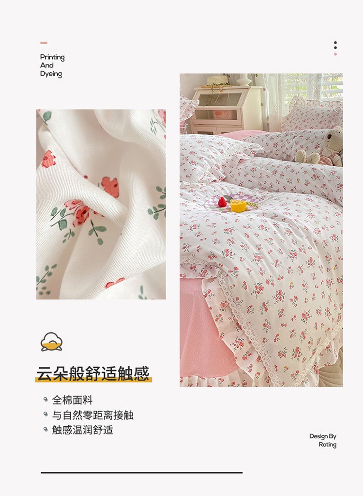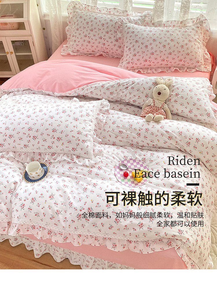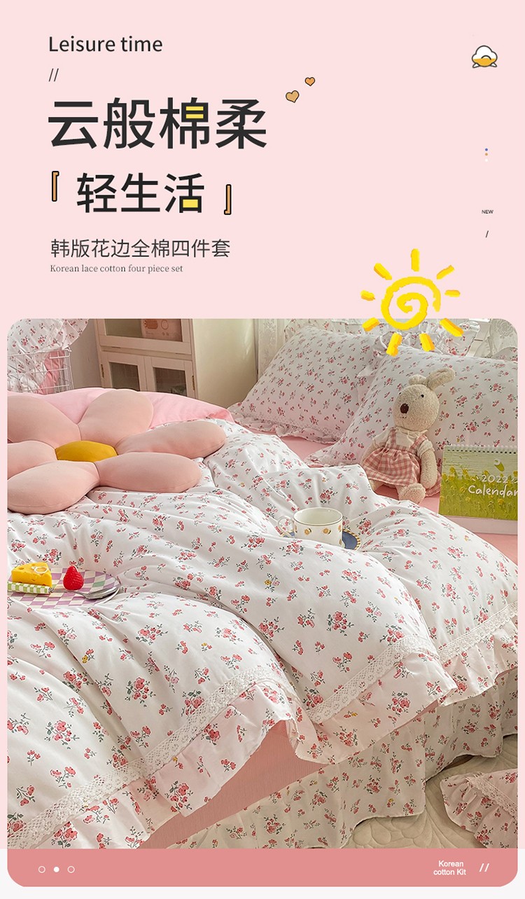 商品名称:艾唯希 2024新款法式花边全棉四件套 小清新