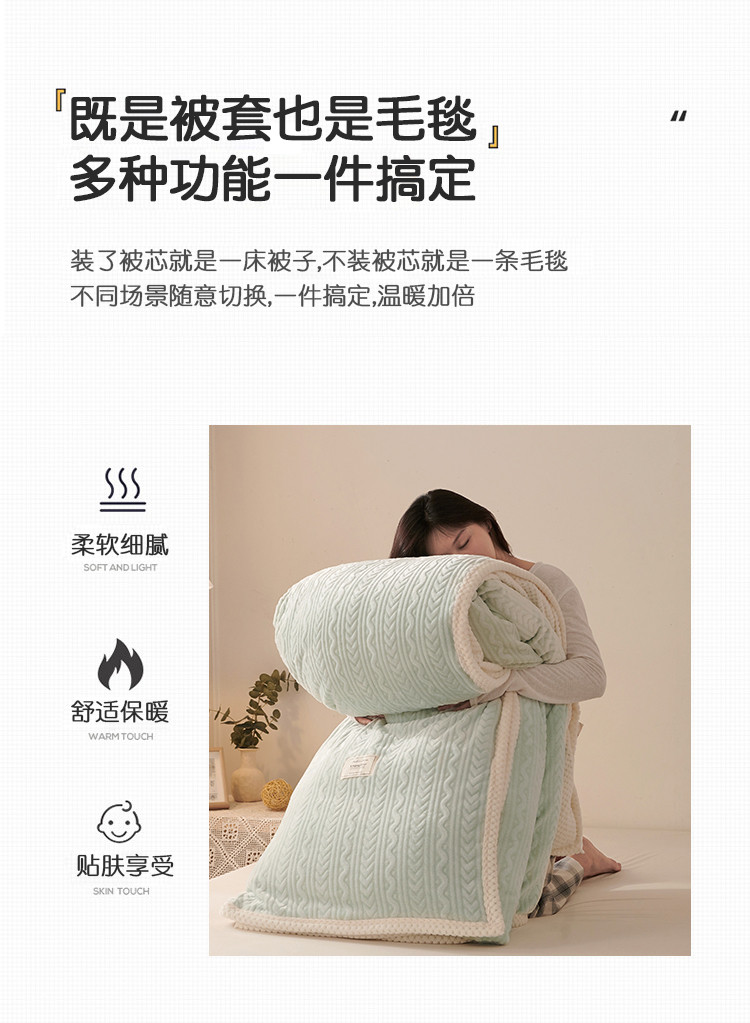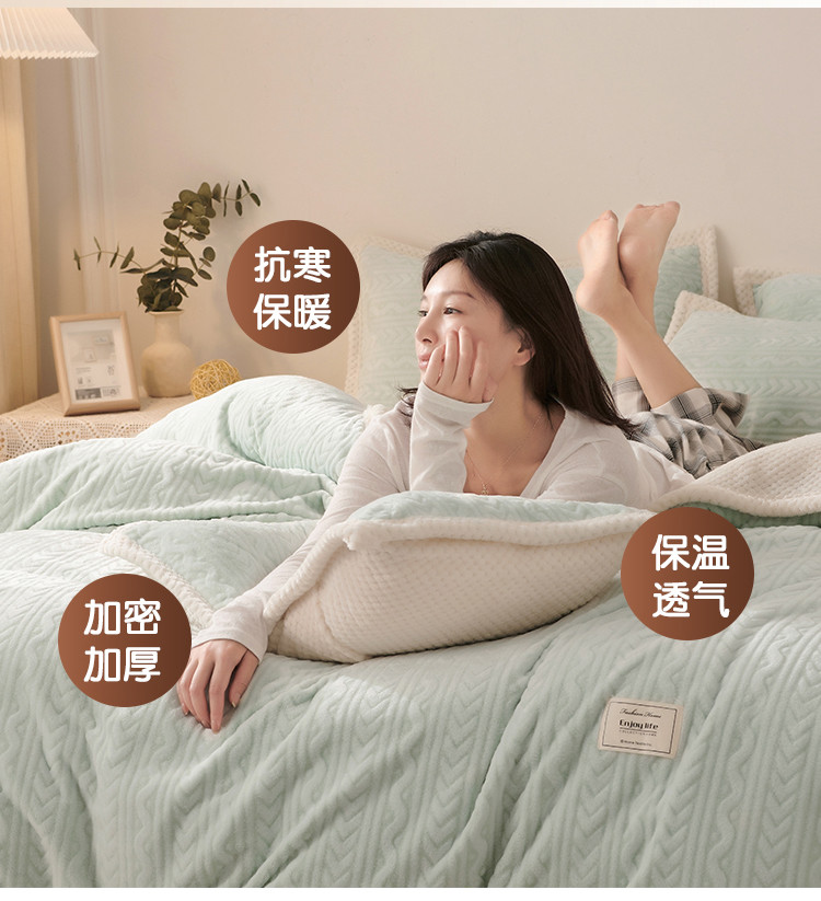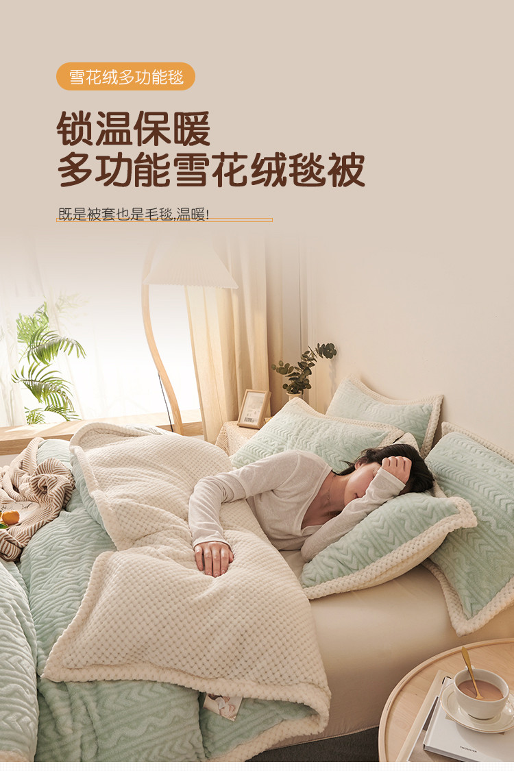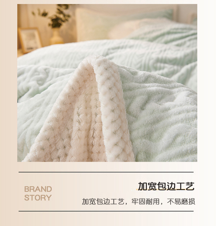 yyds立体雕花雪花双面绒被套毛毯牛奶绒四件套爆款荧光绿单毯