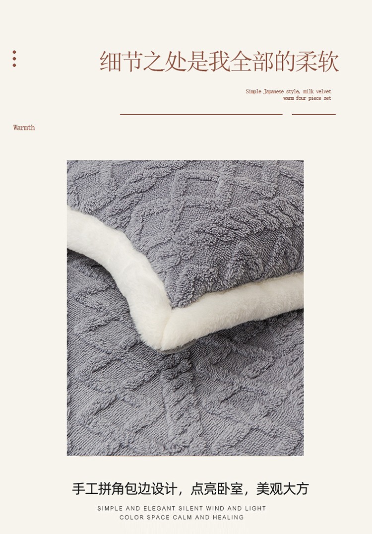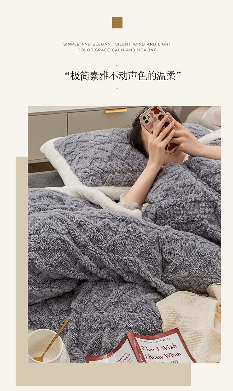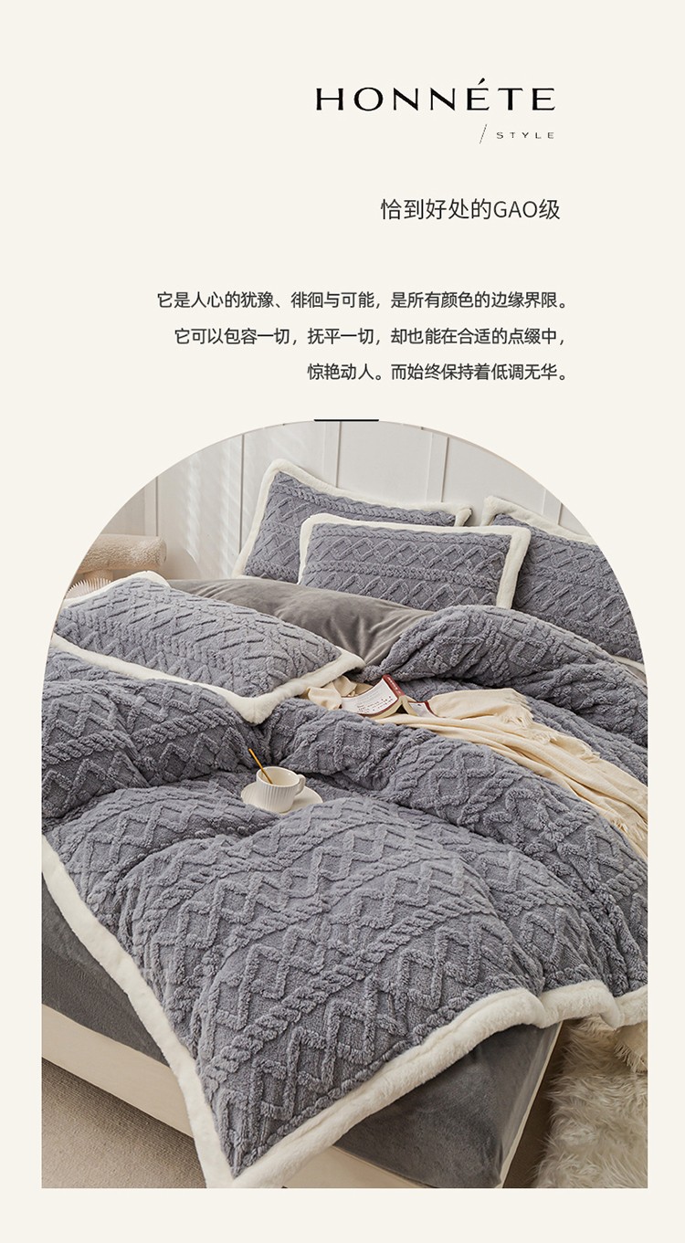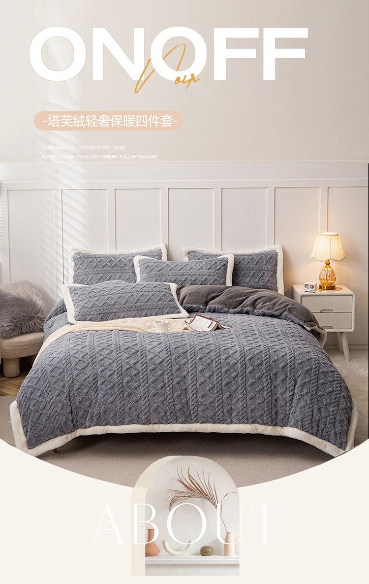 商品名称:潮邦2025【含买家秀】塔芙绒牛奶绒轻奢保暖四件套 塔芙蓝灰