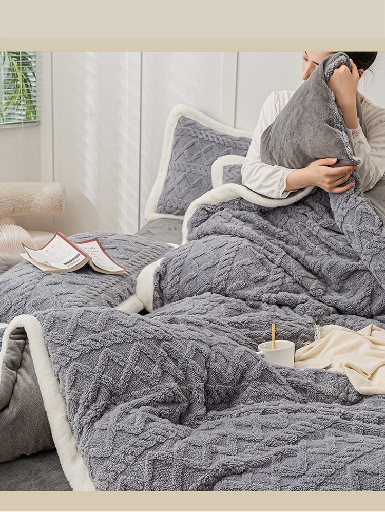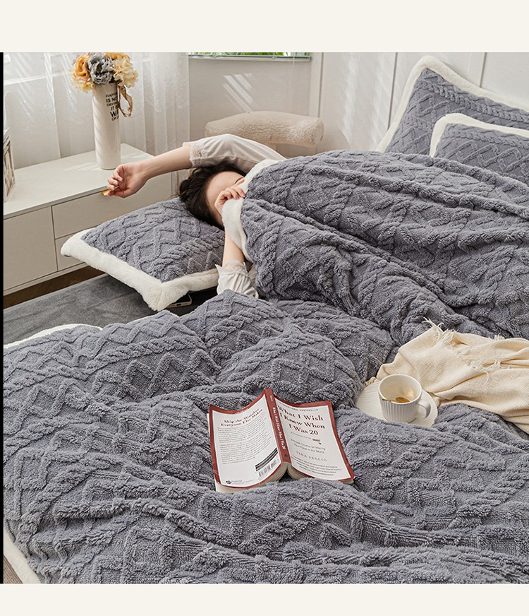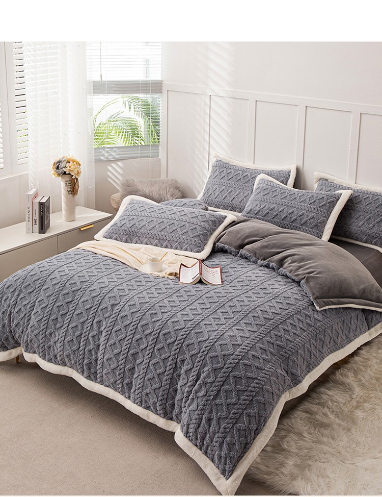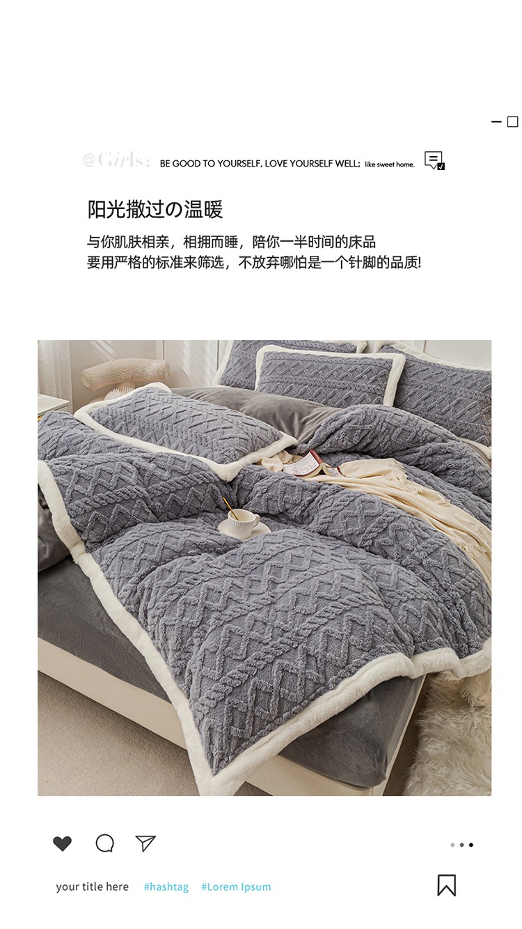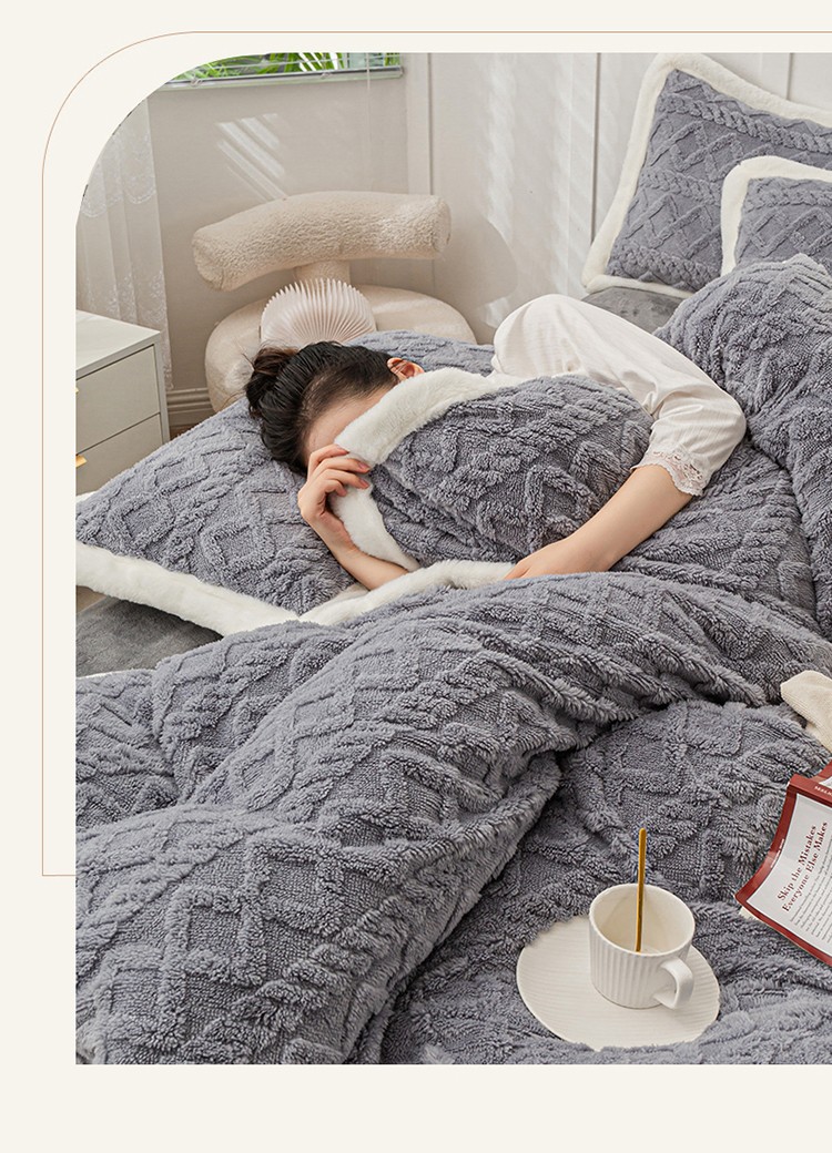 商品名称:潮邦2025【含买家秀】塔芙绒牛奶绒轻奢保暖四件套 塔芙蓝灰