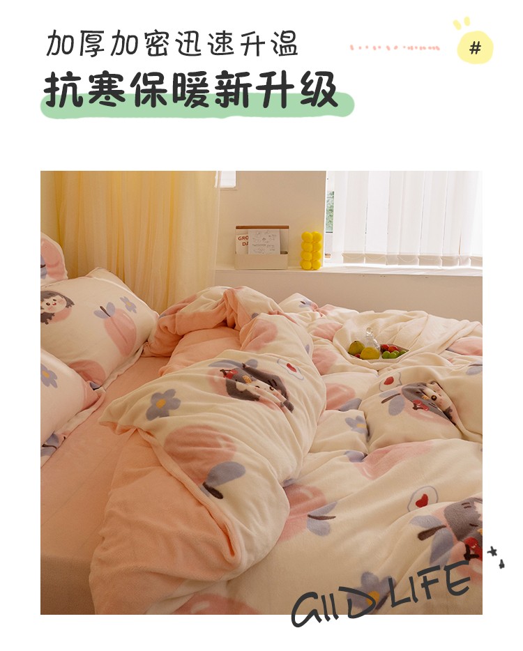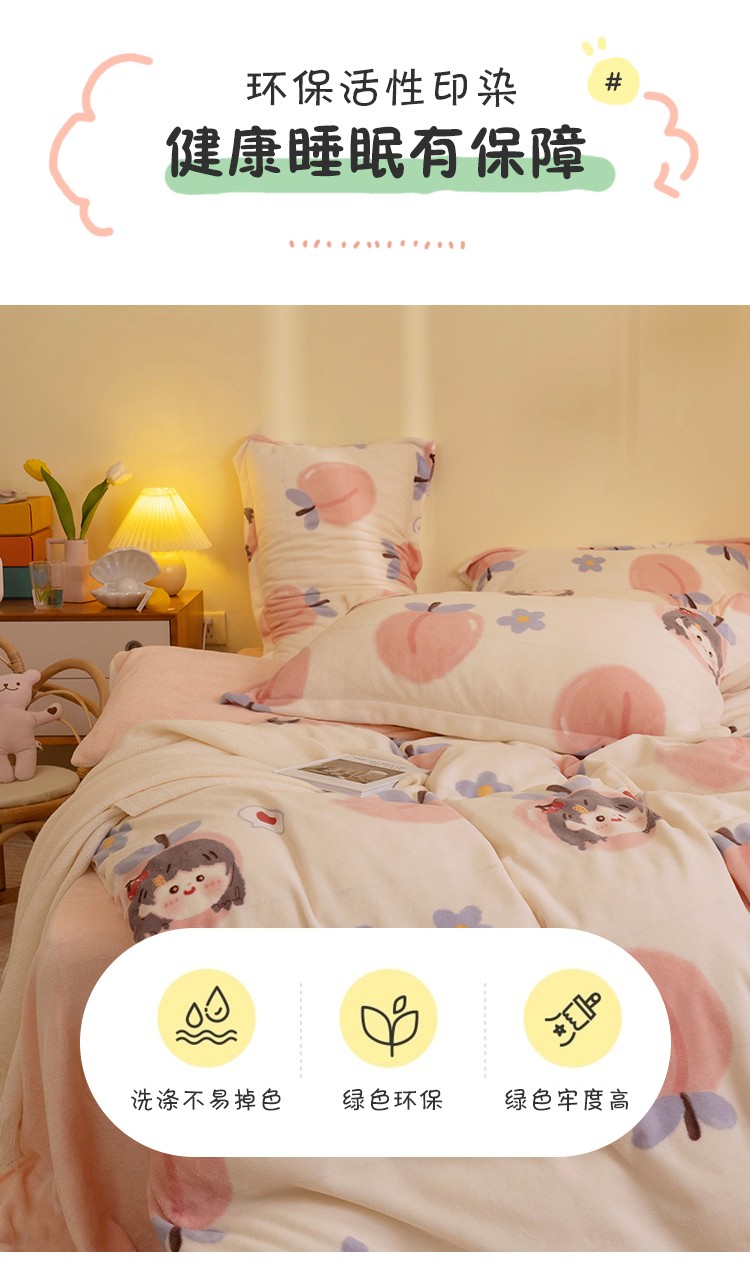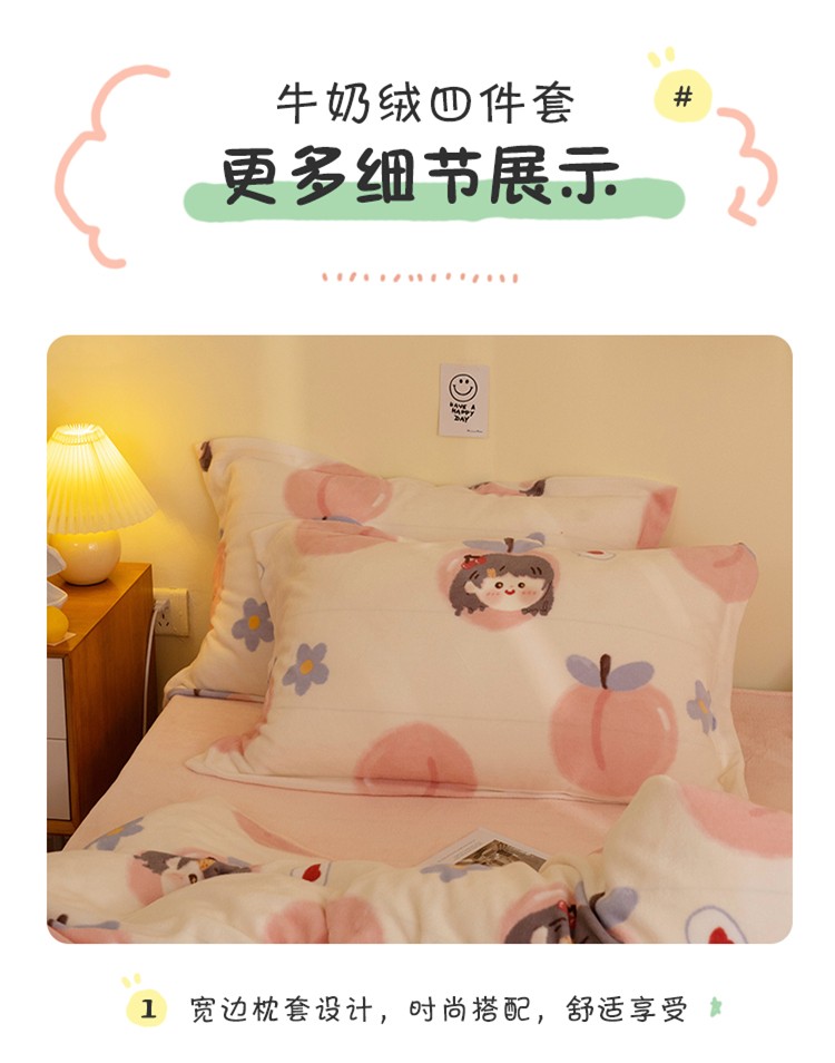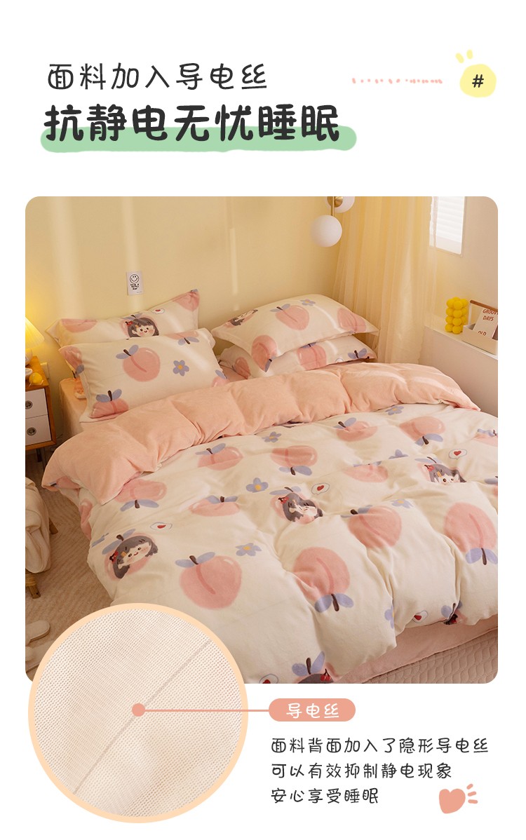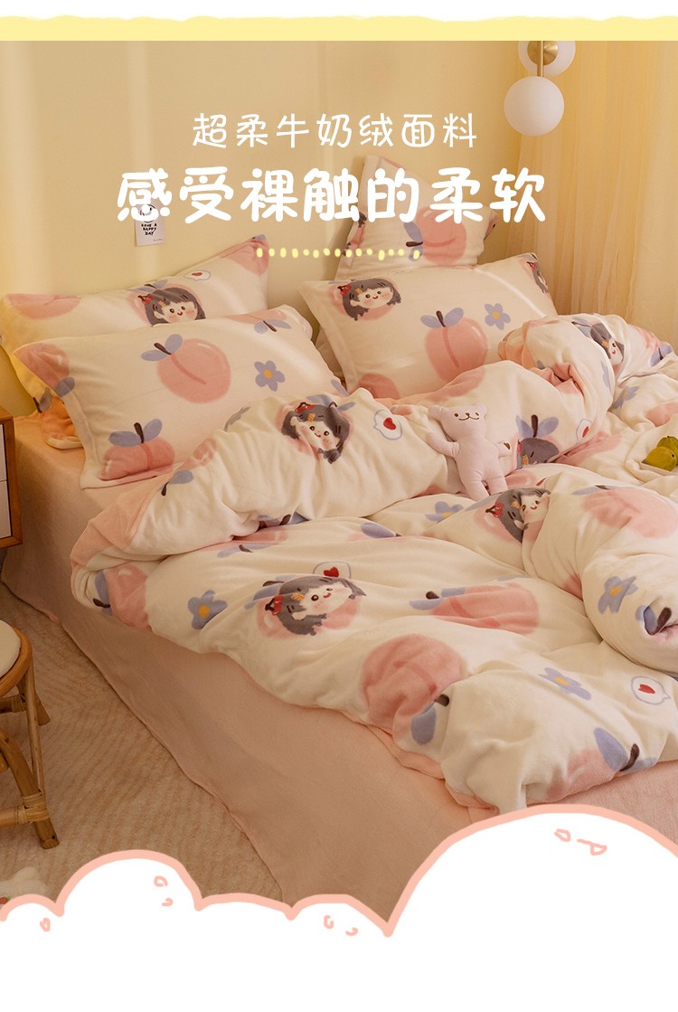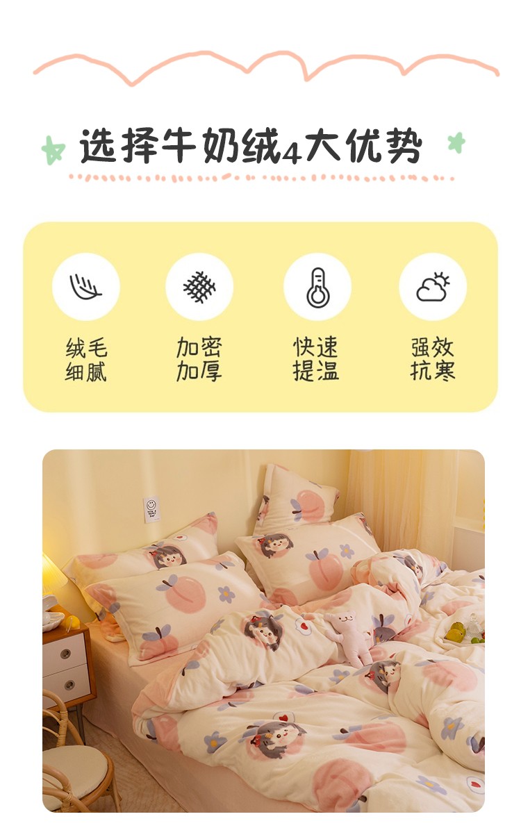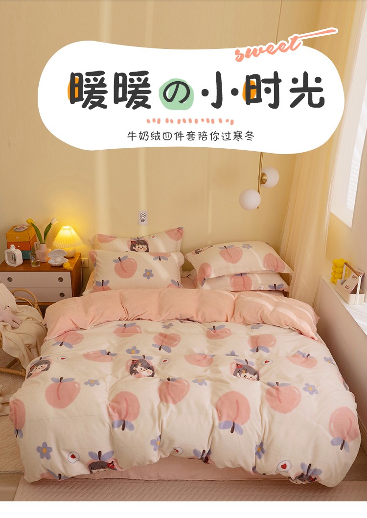 商品名称: 2022新款秋冬牛奶绒四件套 粉桃子