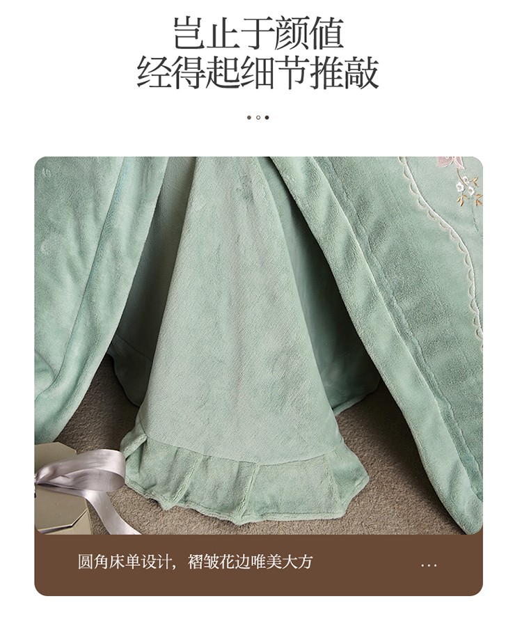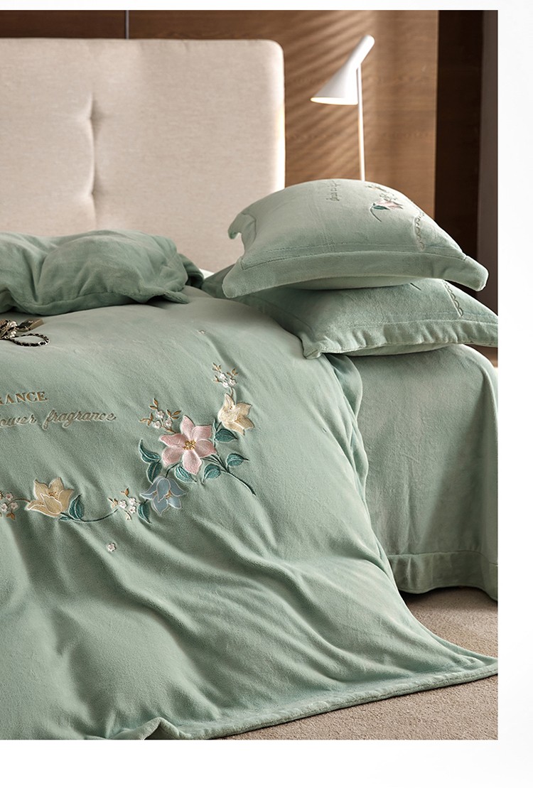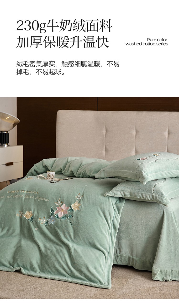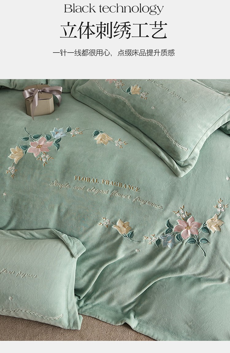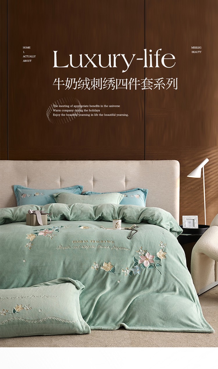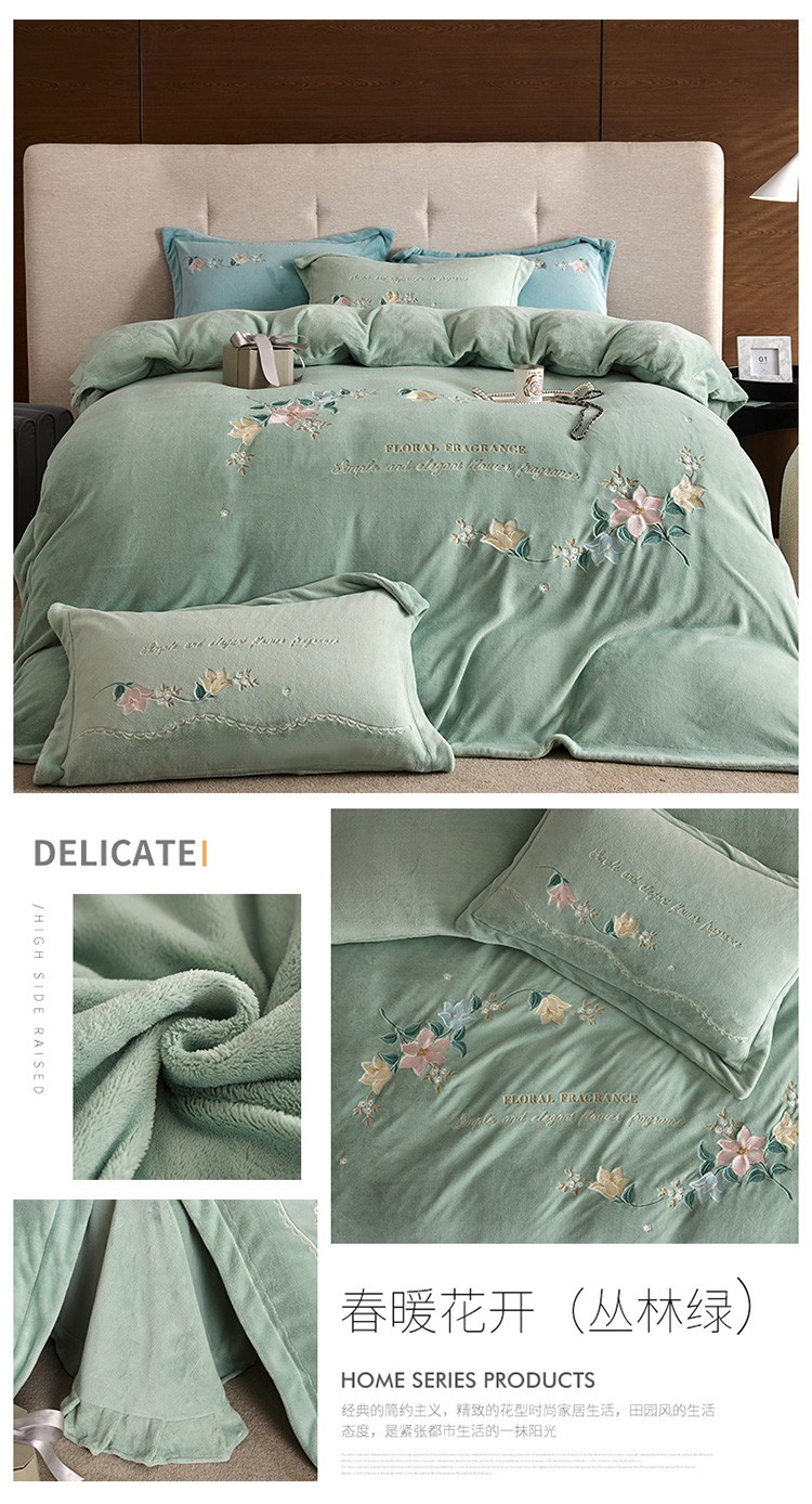 名品优仓2022新款牛奶绒刺绣四件套-春暖花开 春暖花开(丛林绿)