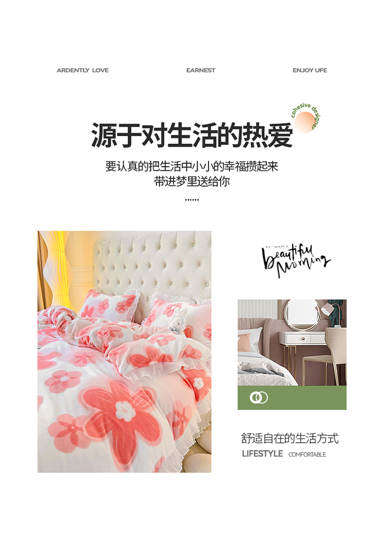 商品名称:(总)澳梵 2022新款韩版印花牛奶绒床盖三件套四件套