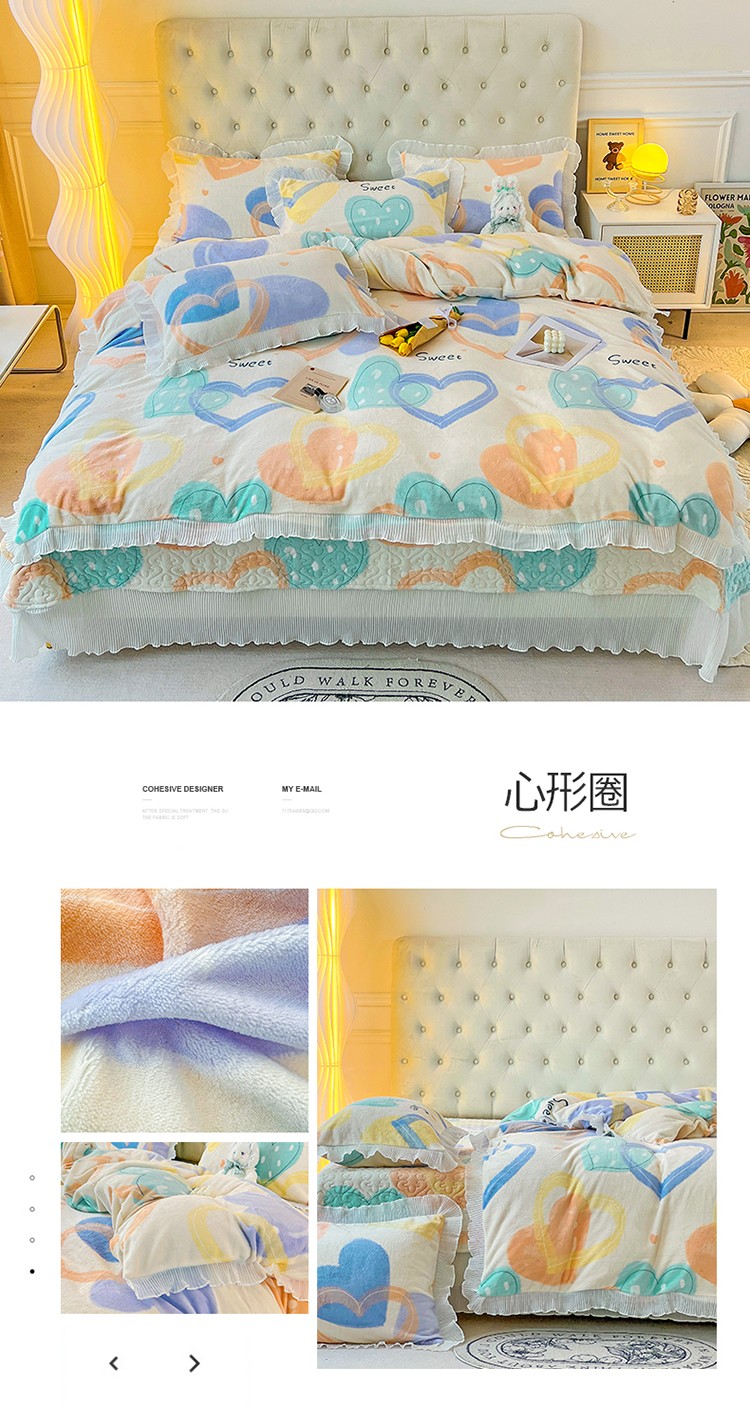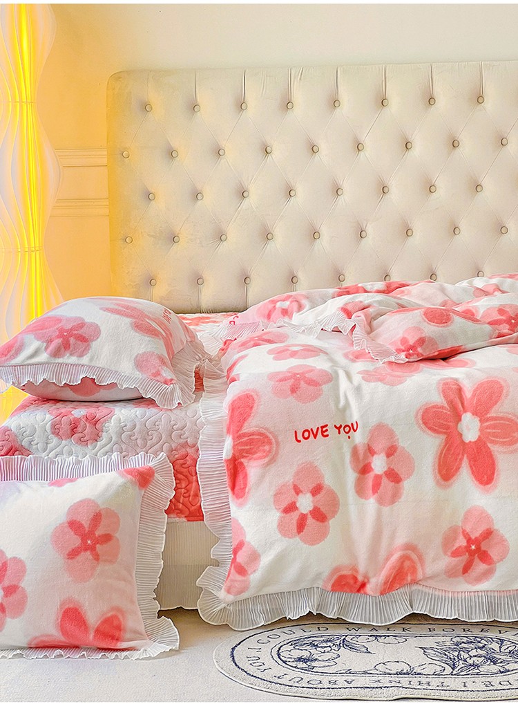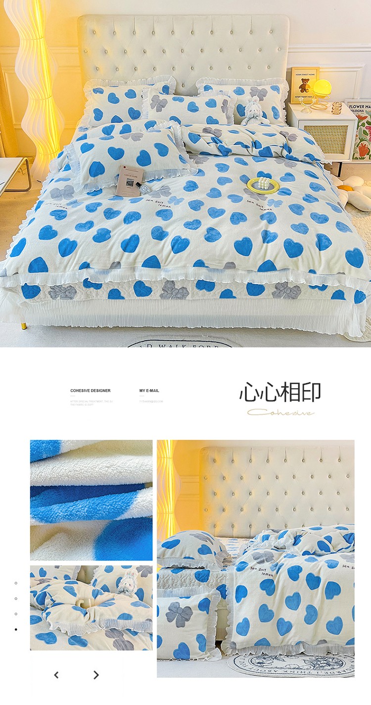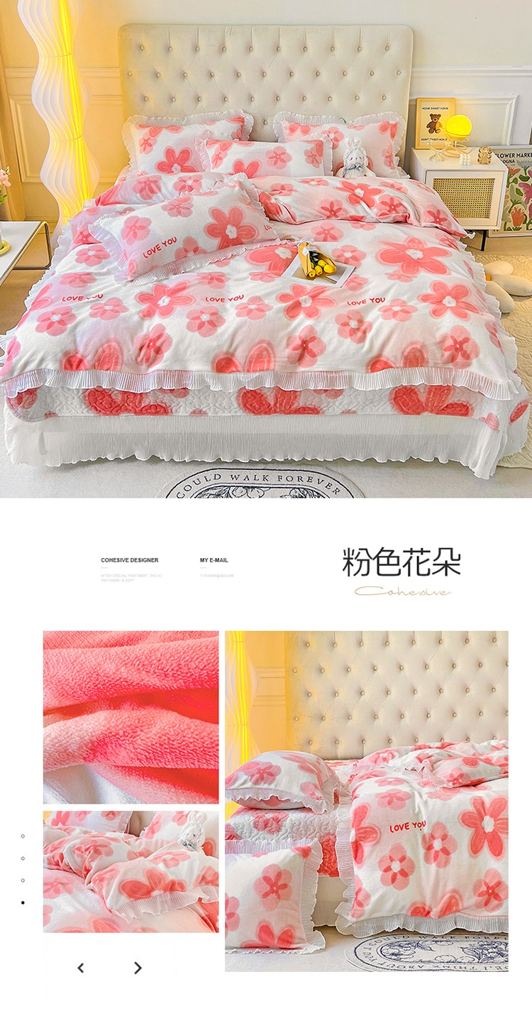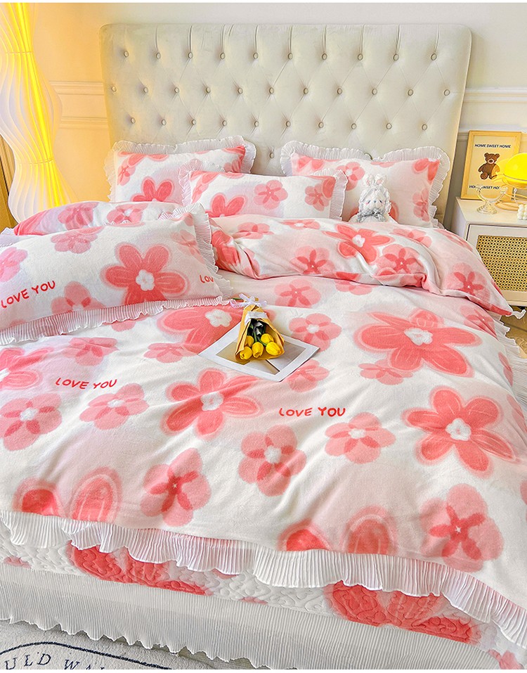 (总)澳梵 2022新款韩版印花牛奶绒床盖三件套四件套