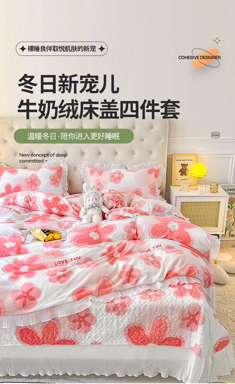 (总)澳梵家居 2025新款雕花牛奶绒韩版四件套-玫瑰蝶语,繁花浅梦,粉黛叶影,粉菱山茶,粉钻花漾,海盐樱桃,菱香山茶,玫瑰蝶语,糖霜玫瑰,月影兔踪-蓝,月影兔踪-玉