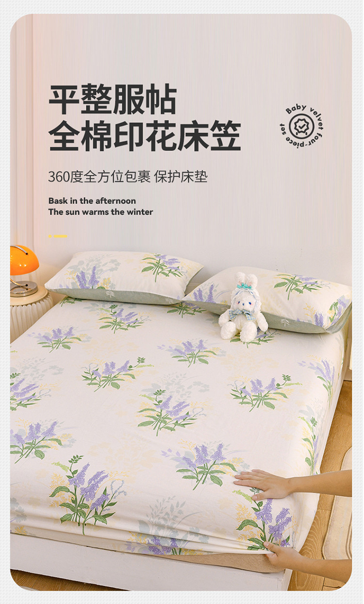 • 91家纺网 家纺一手货源 找家纺 名兮 2022新款全棉印花床笠 薰衣草