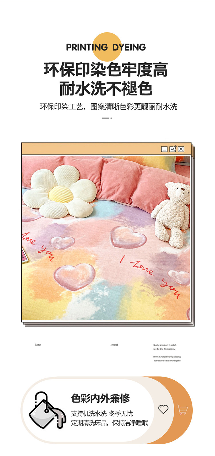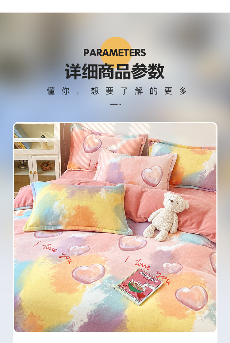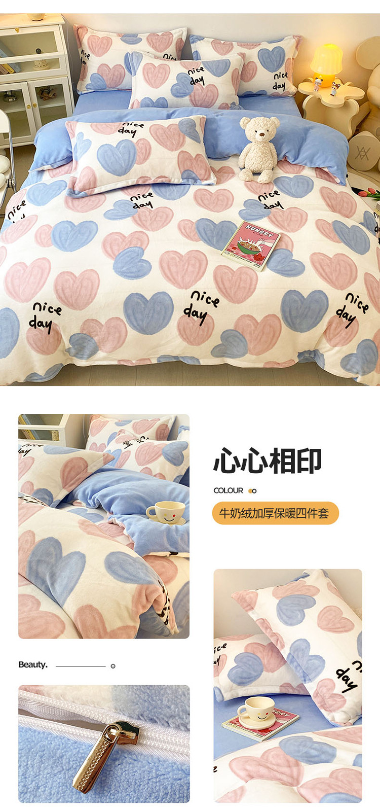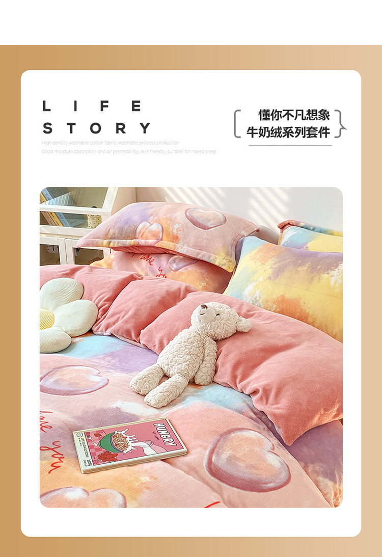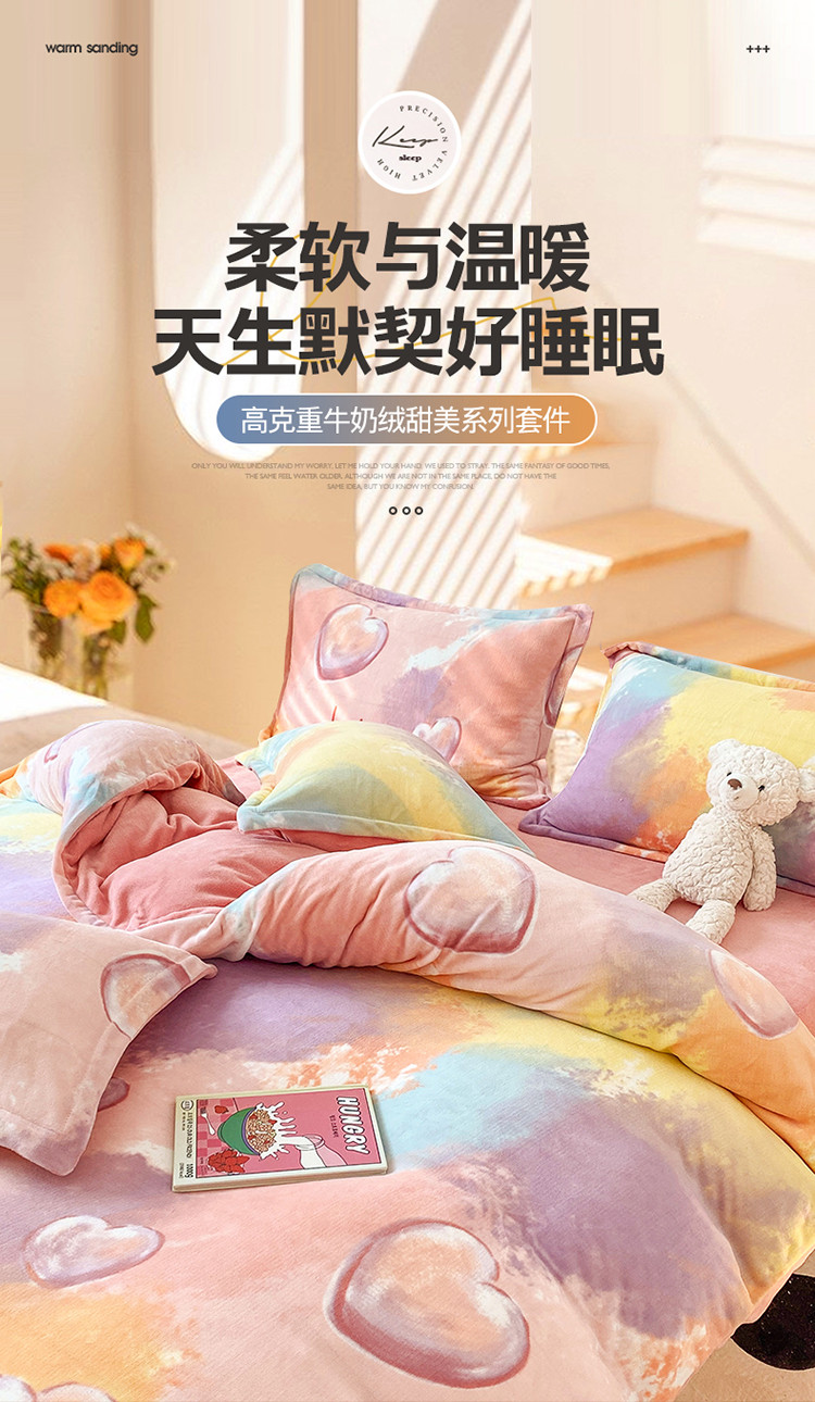 (总)木堇 2022秋冬新款高克重甜美系列印花牛奶绒四件套