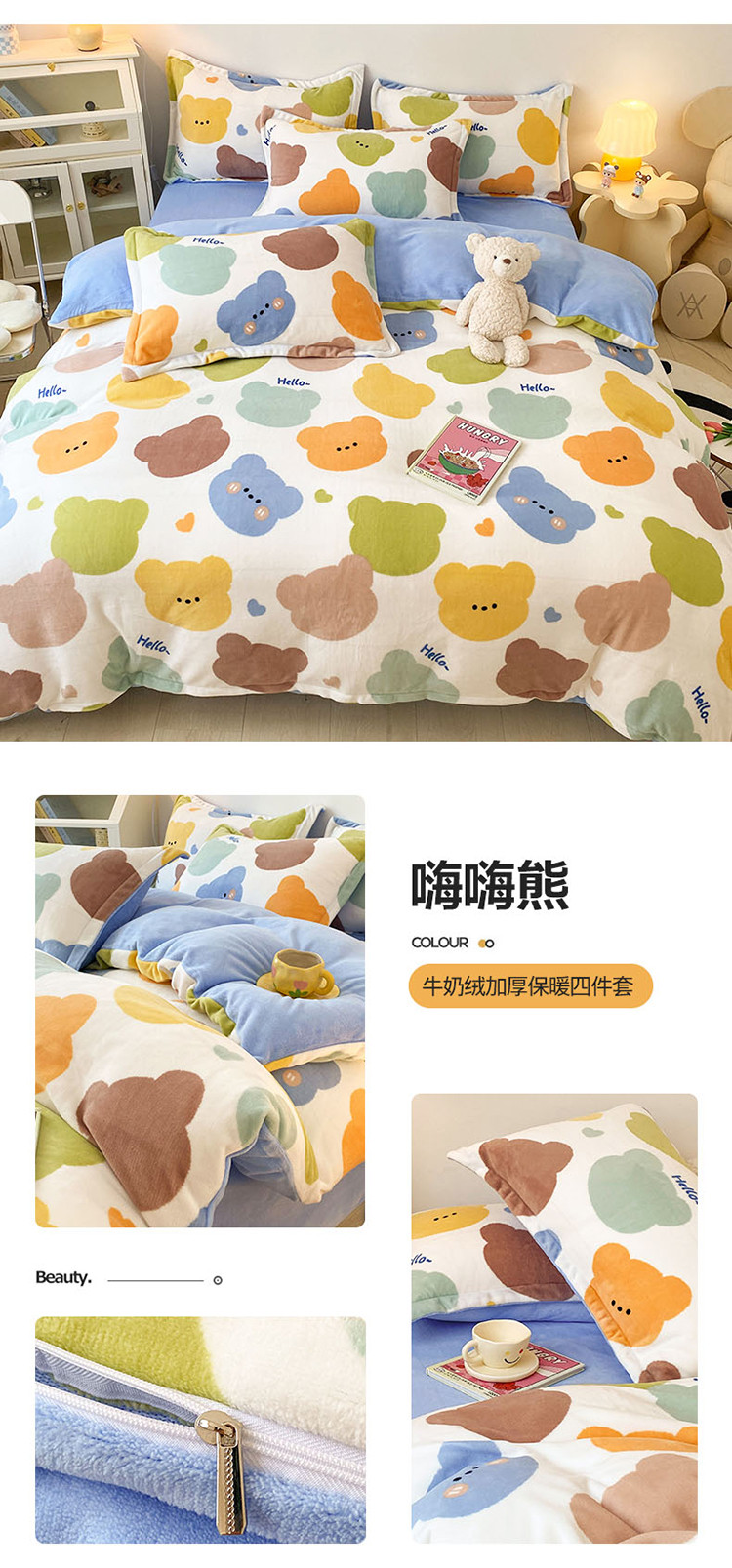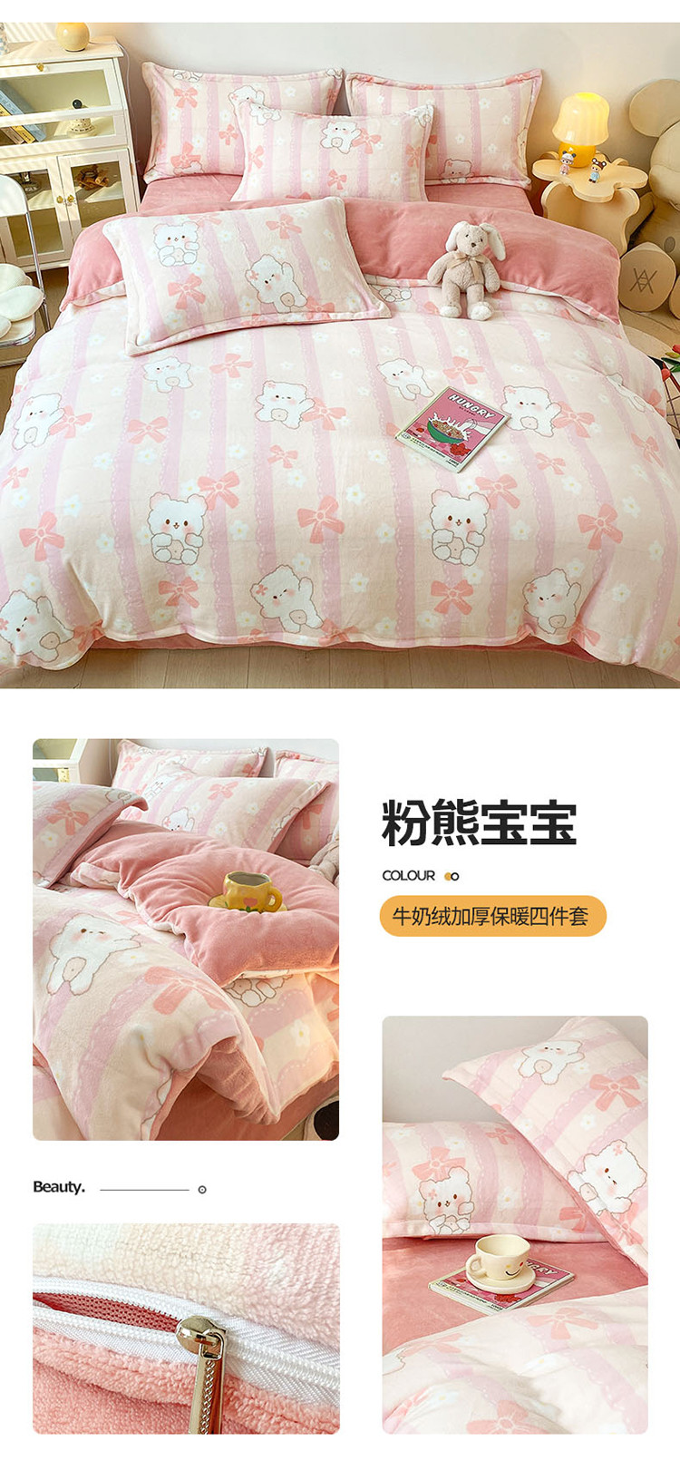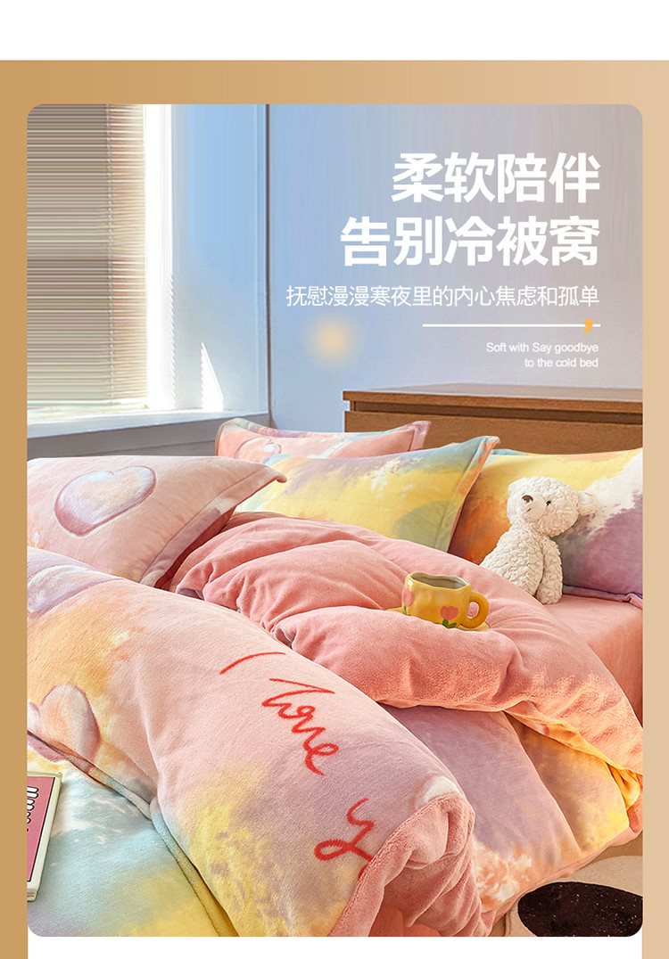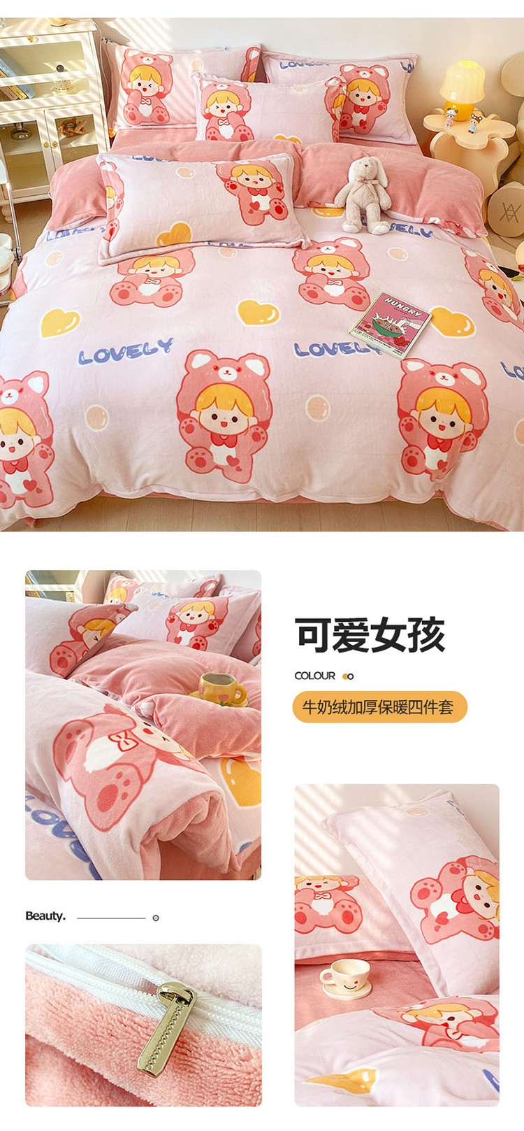 (总)木堇 2022秋冬新款高克重甜美系列印花牛奶绒四件套