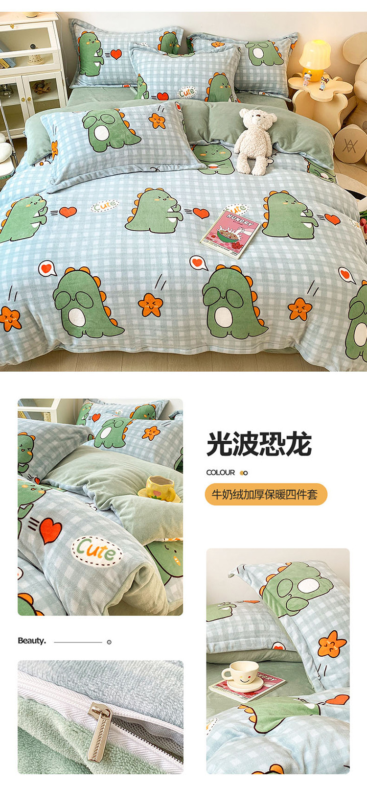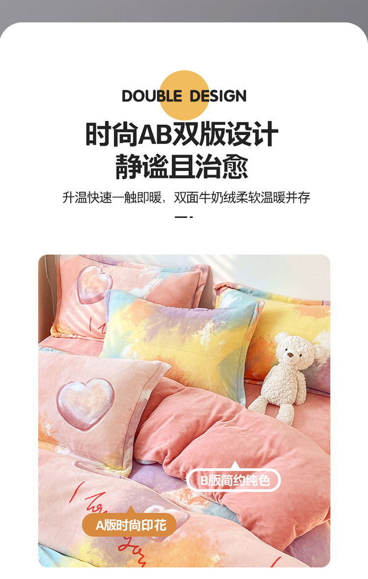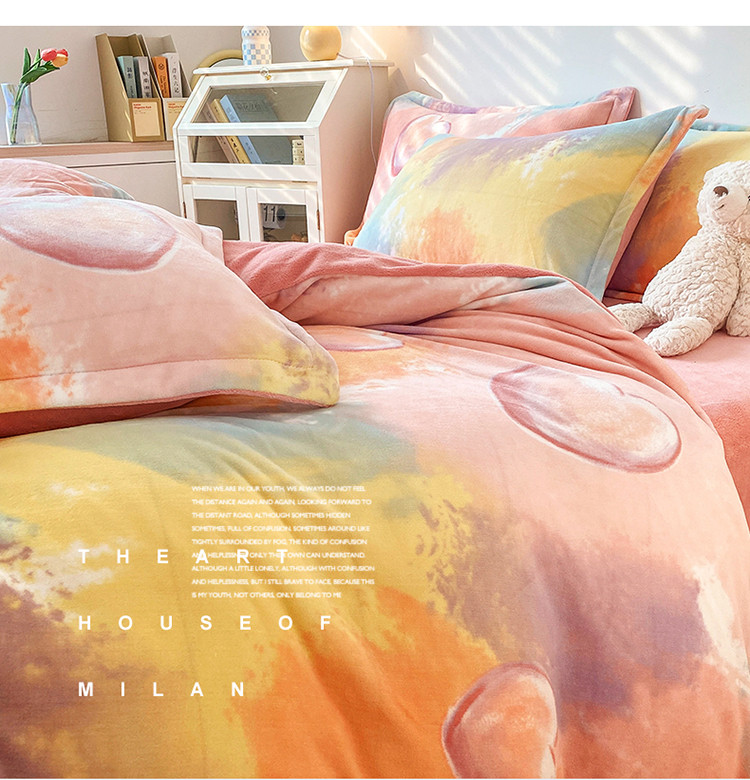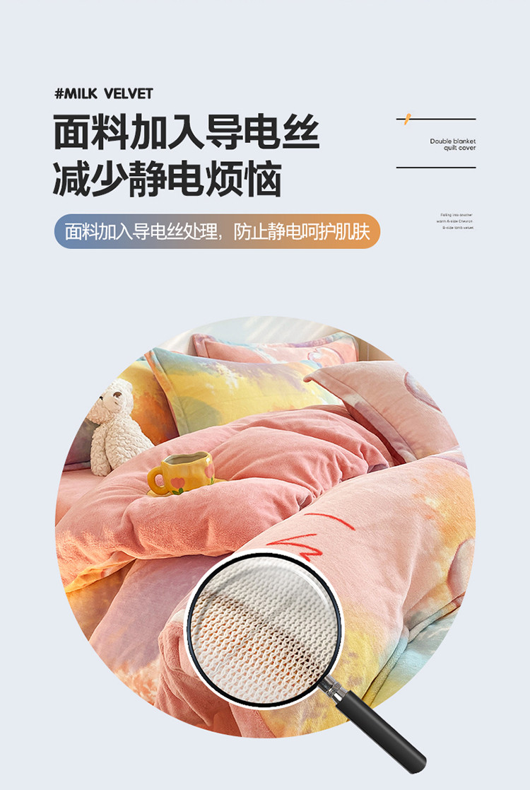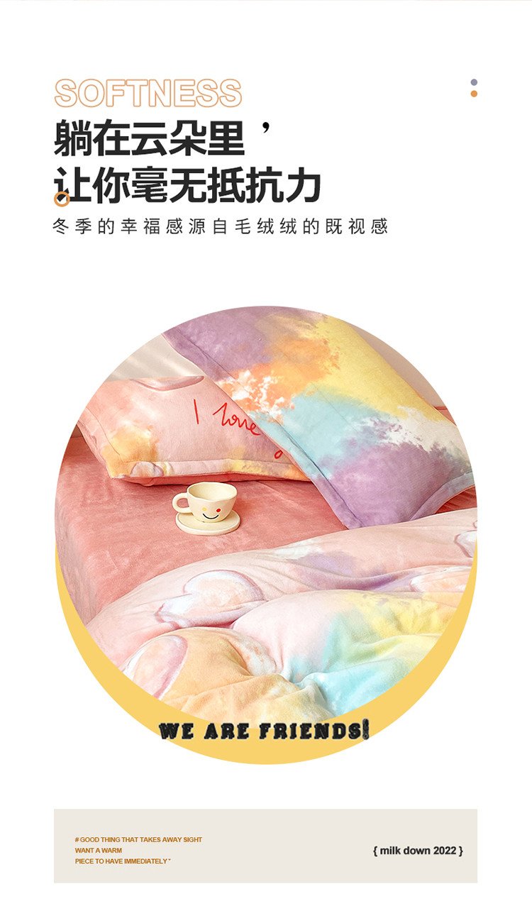 (总)木堇 2022秋冬新款高克重甜美系列印花牛奶绒四件套