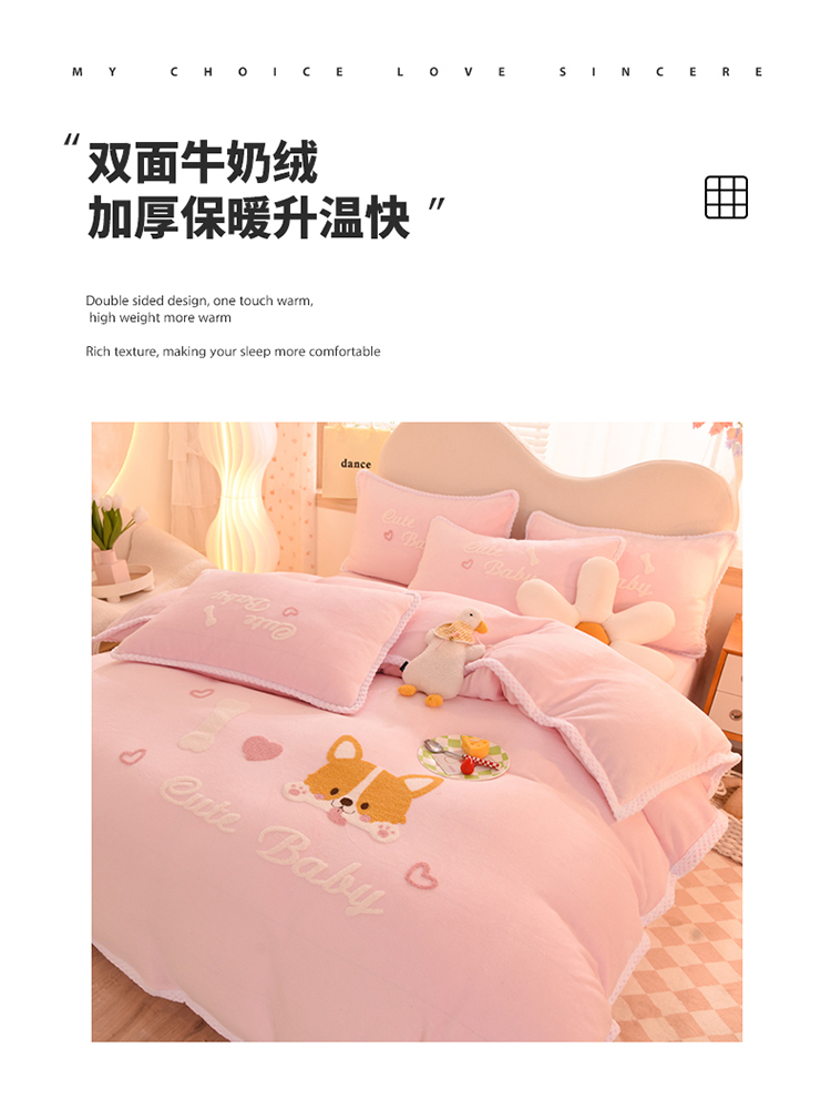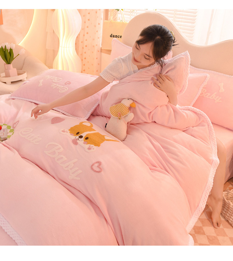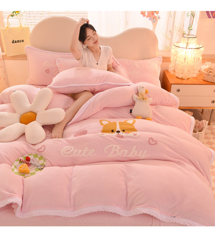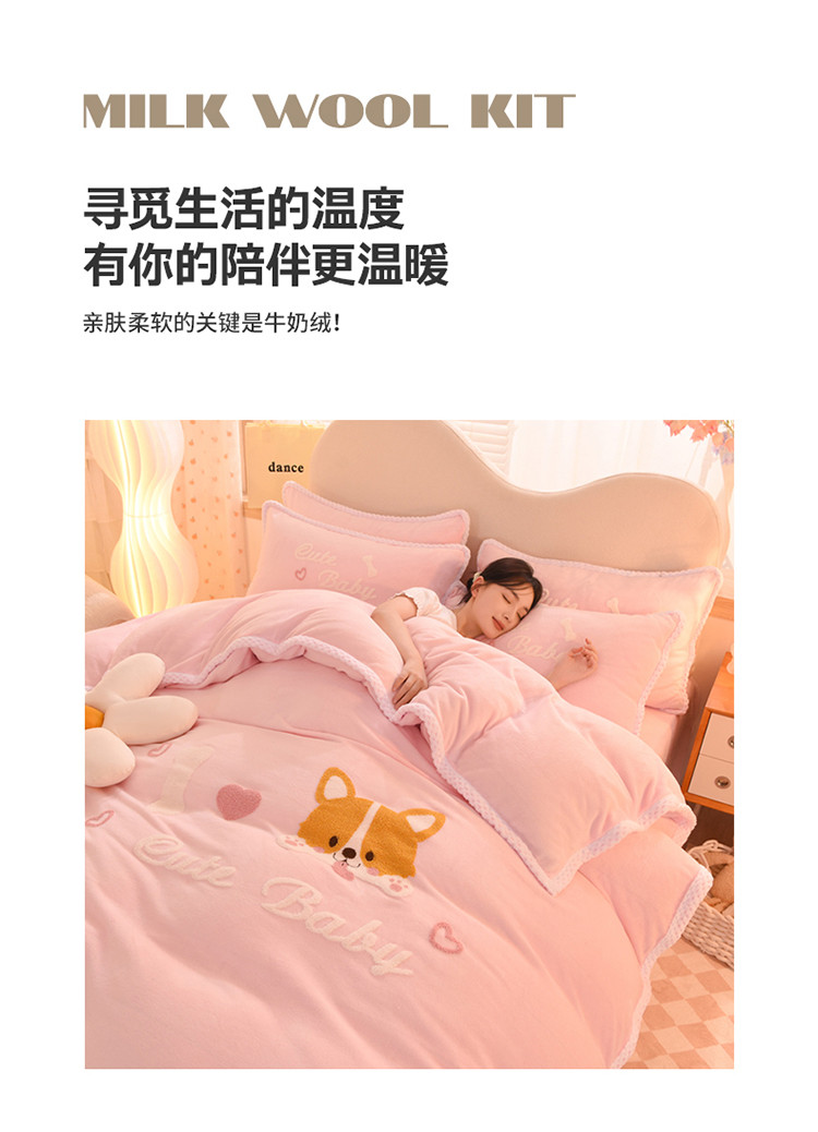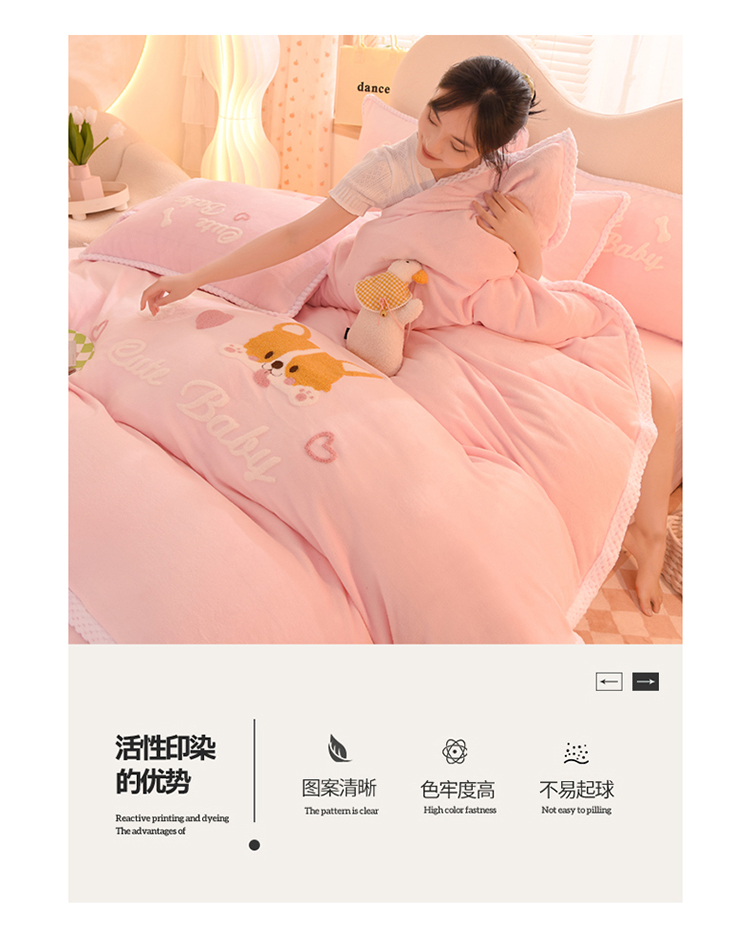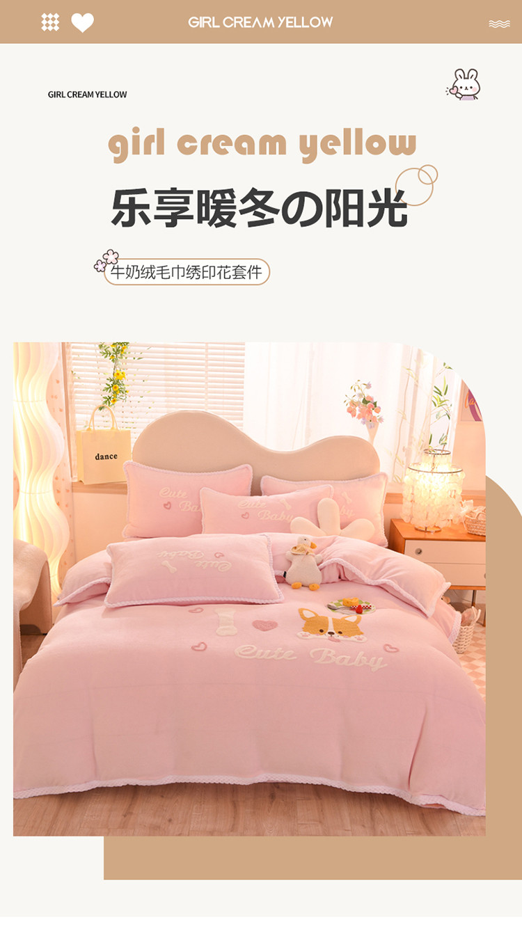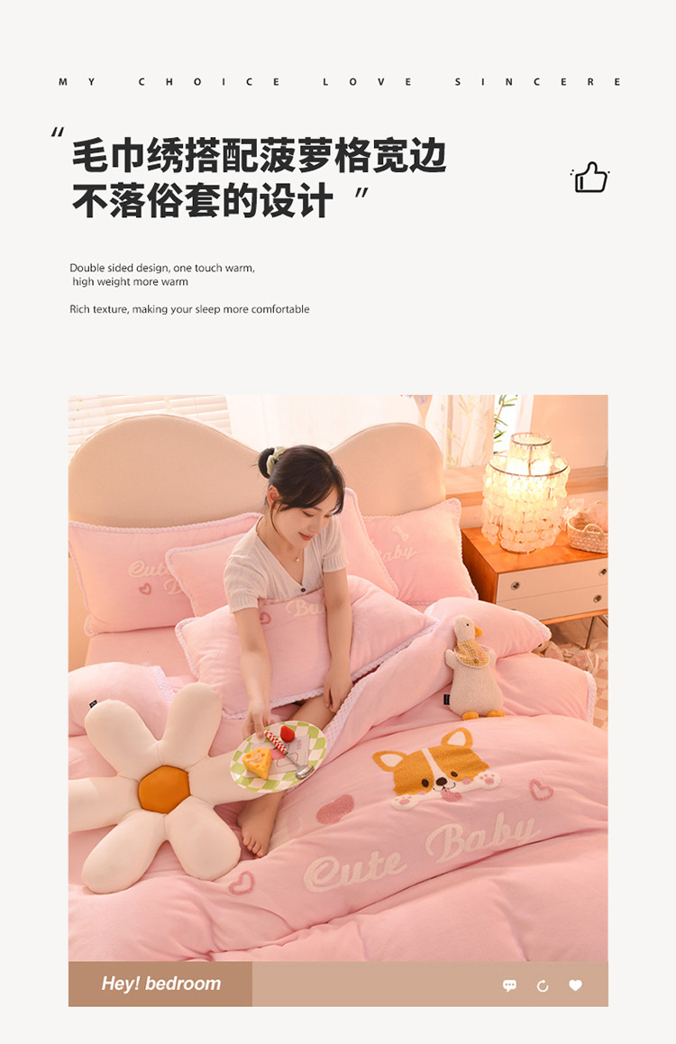 当前位置: 91家纺网 > 商品网购 > 床品套件 > 四件套 > 牛奶绒四件套 > 菲儿 2022新款毛巾绣牛奶绒四件套 旺仔-萝莉粉