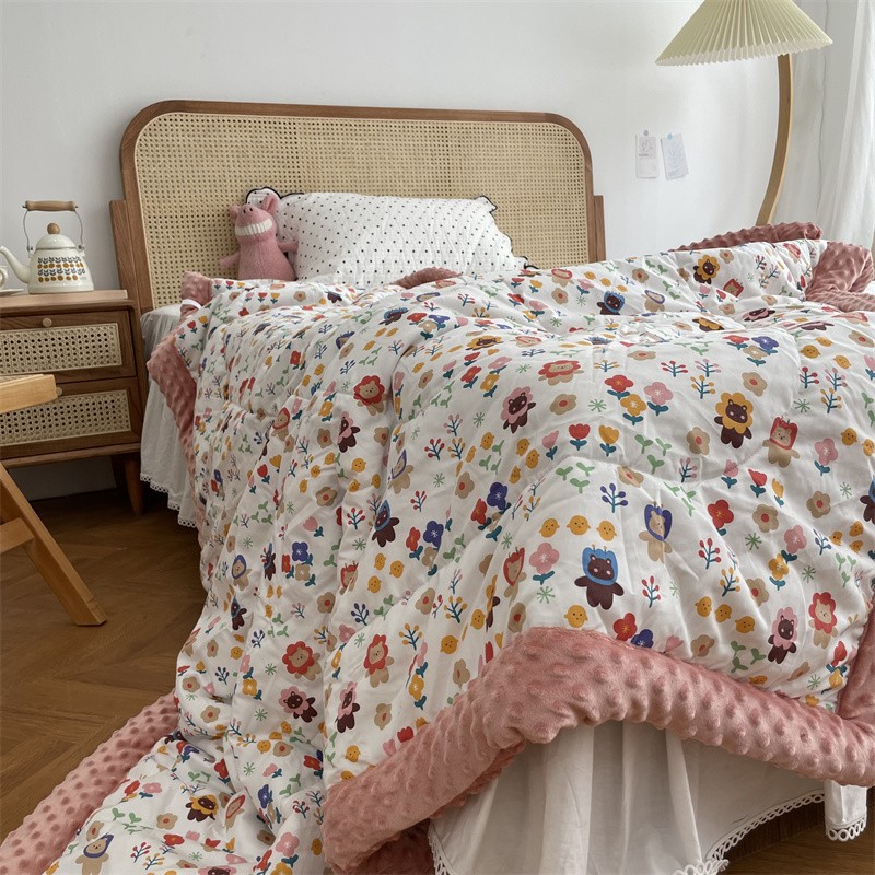 源启生活 2022新款韩国手工包边豆豆单人被被子被芯 花花世界