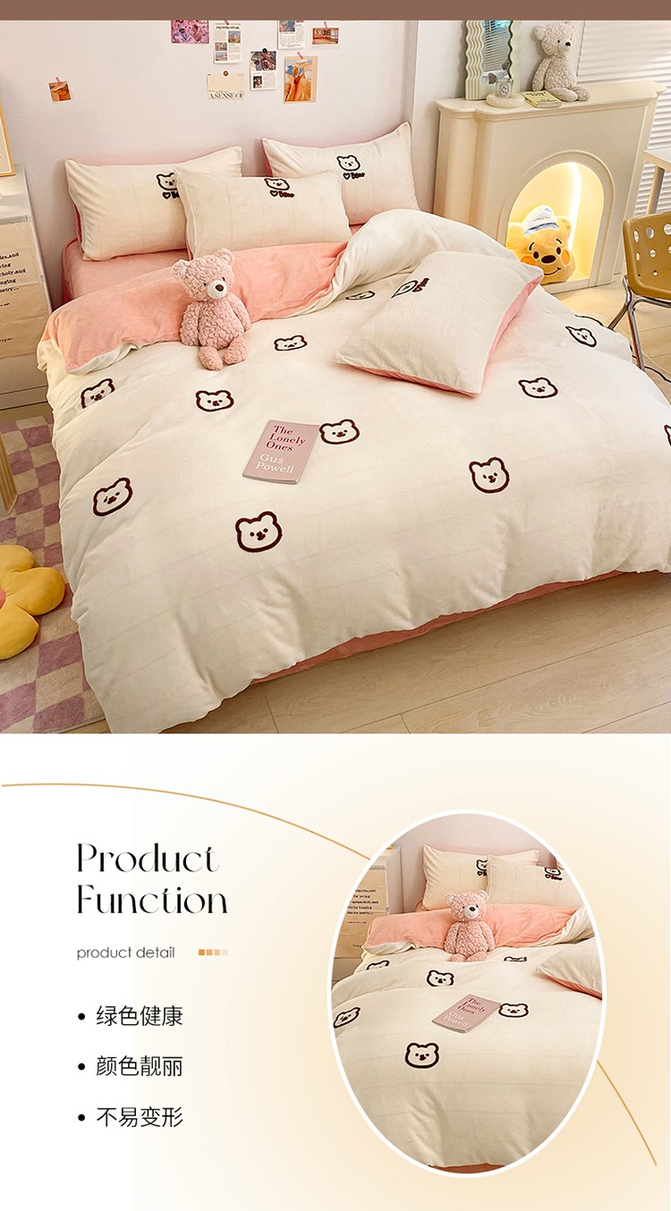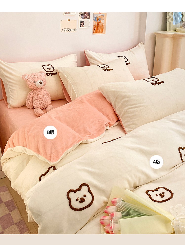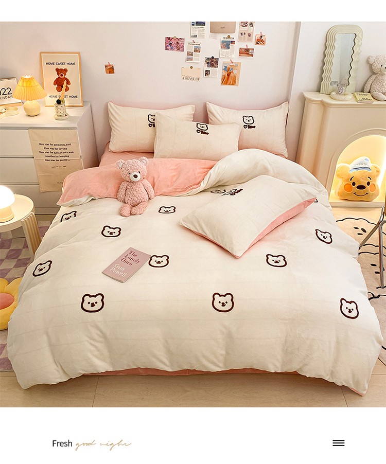 雅居坊2022新款毛巾绣小熊 牛奶绒四件套系列 小熊 白粉