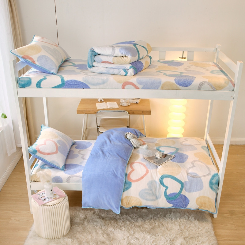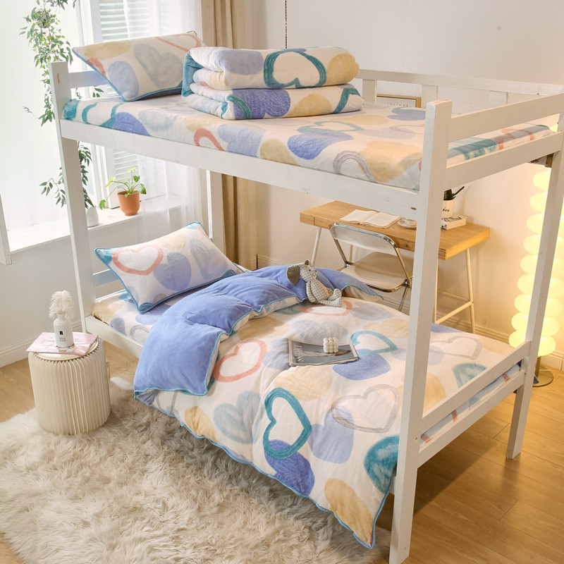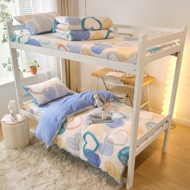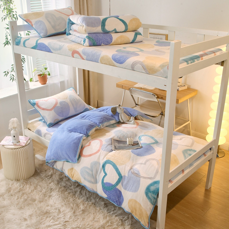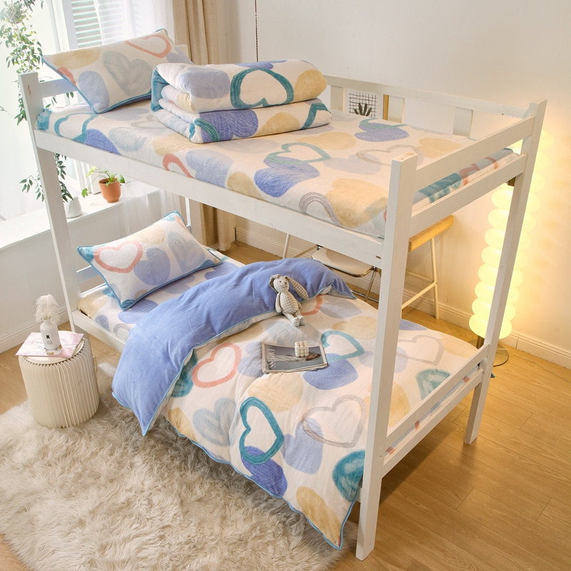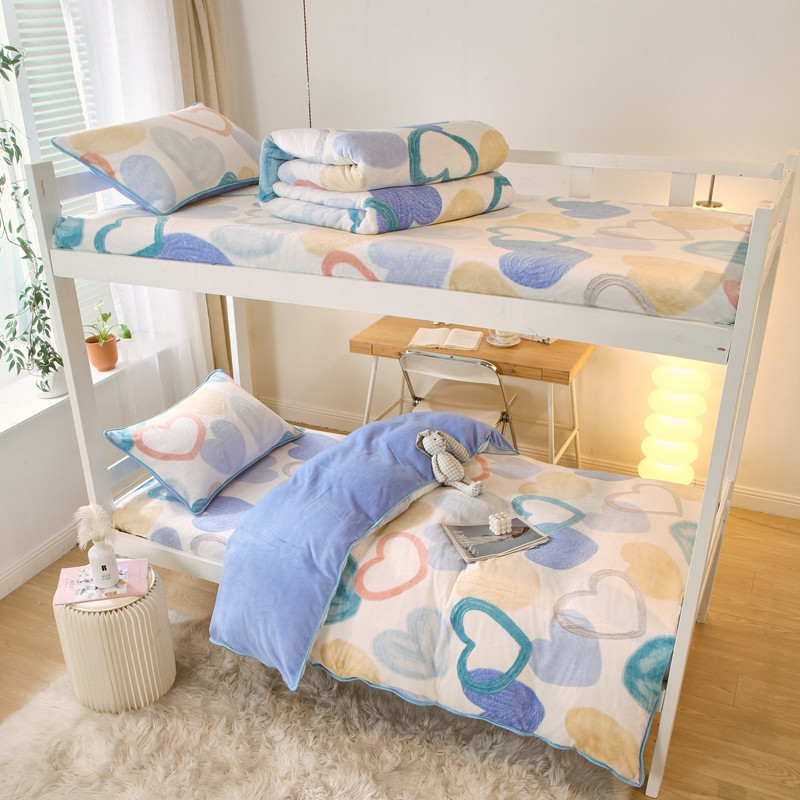 当前位置: 91家纺网 > 商品网购 > 床品套件 > 四件套 > 牛奶绒四件套 > 金鑫汇 2022新款牛奶绒学生上下铺三件套 爱心-兰