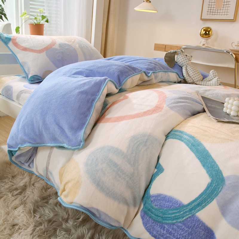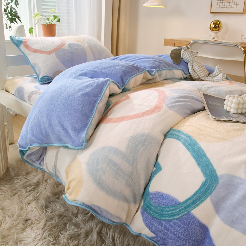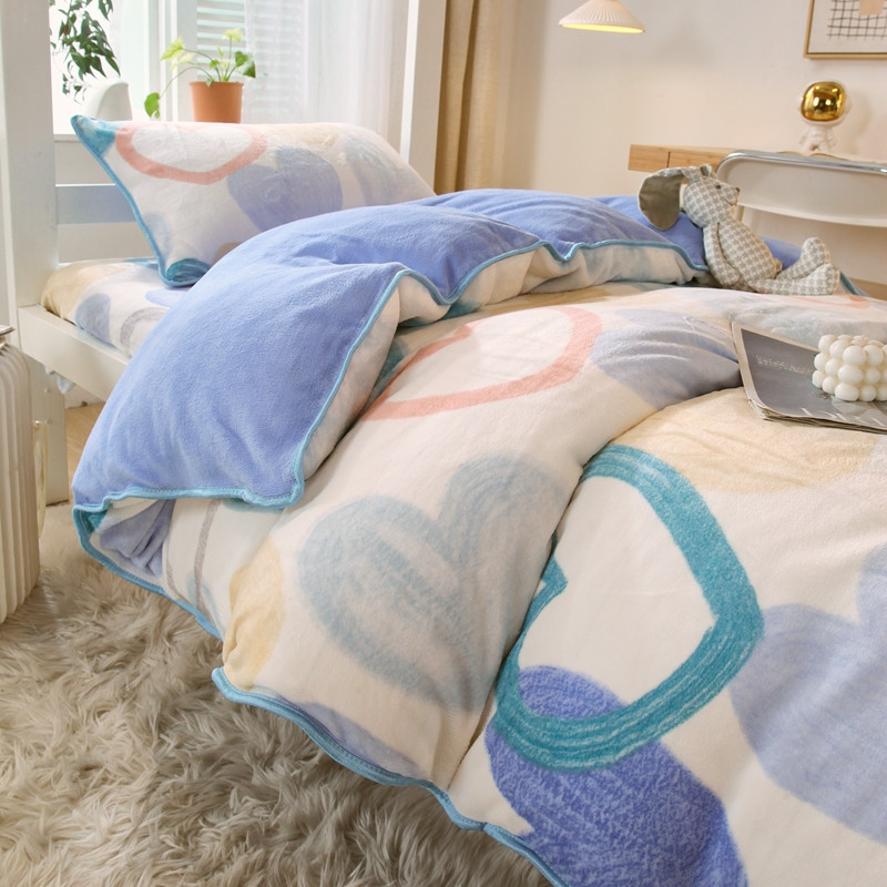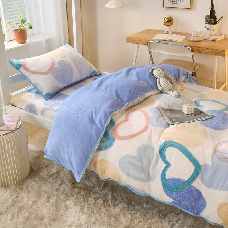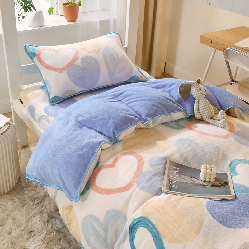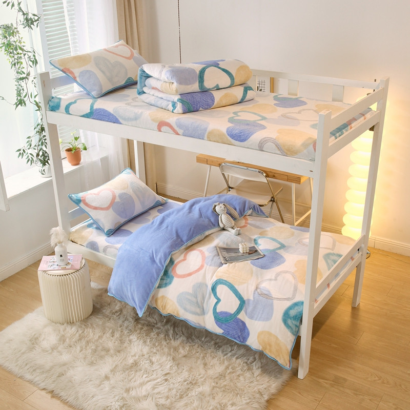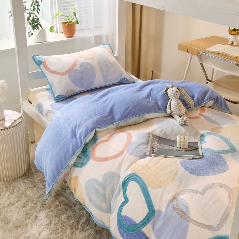 当前位置: 91家纺网 > 商品网购 > 床品套件 > 四件套 > 牛奶绒四件套 > 金鑫汇 2022新款牛奶绒学生上下铺三件套 爱心-兰