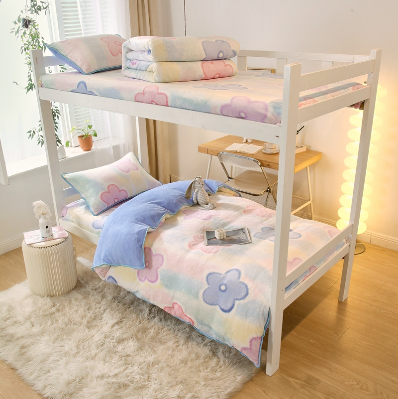 当前位置: 91家纺网 > 商品网购 > 床品套件 > 四件套 > 牛奶绒四件套 > 金鑫汇 2022新款牛奶绒学生上下铺三件套 油菜五叶花朵