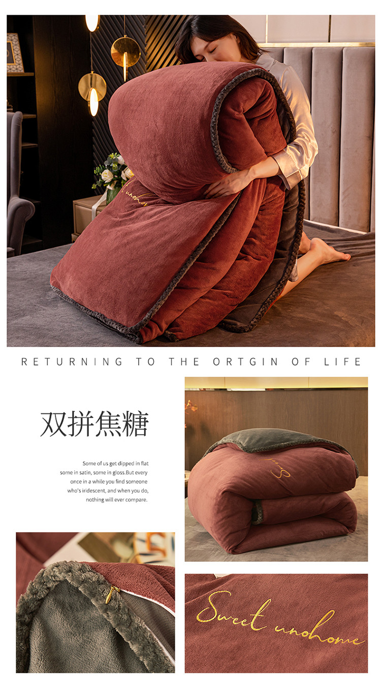 • 91家纺网 家纺一手货源 找家纺 吾诺 2022新款双拼色二合一冬被 双拼焦糖风格二
