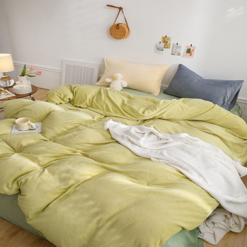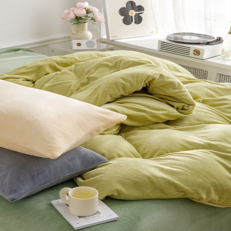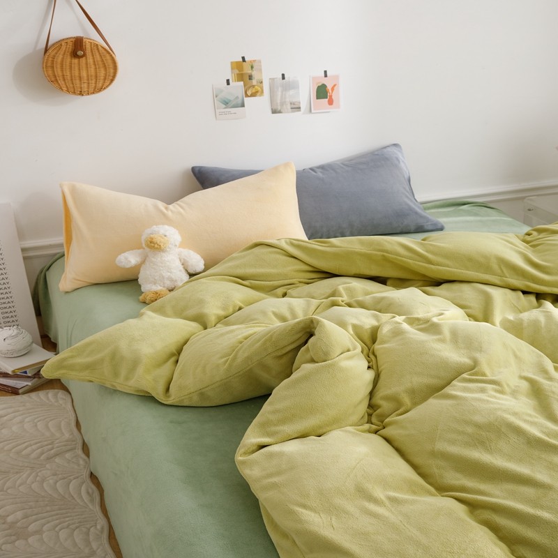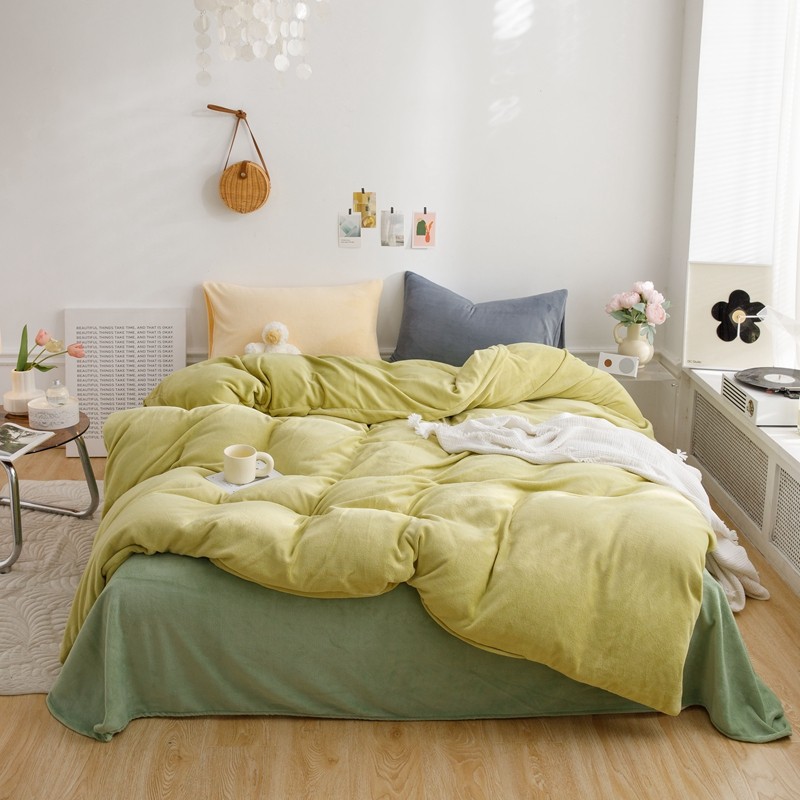 商品名称:珺柔 2023年新款双拼色纯色牛奶绒四件套 双拼豆绿绿
