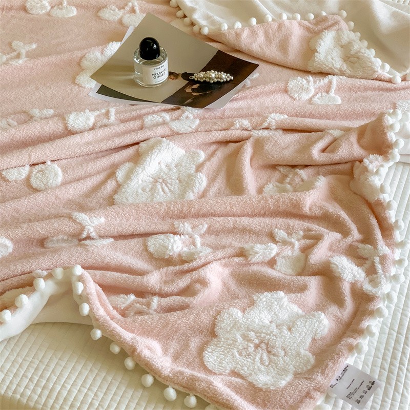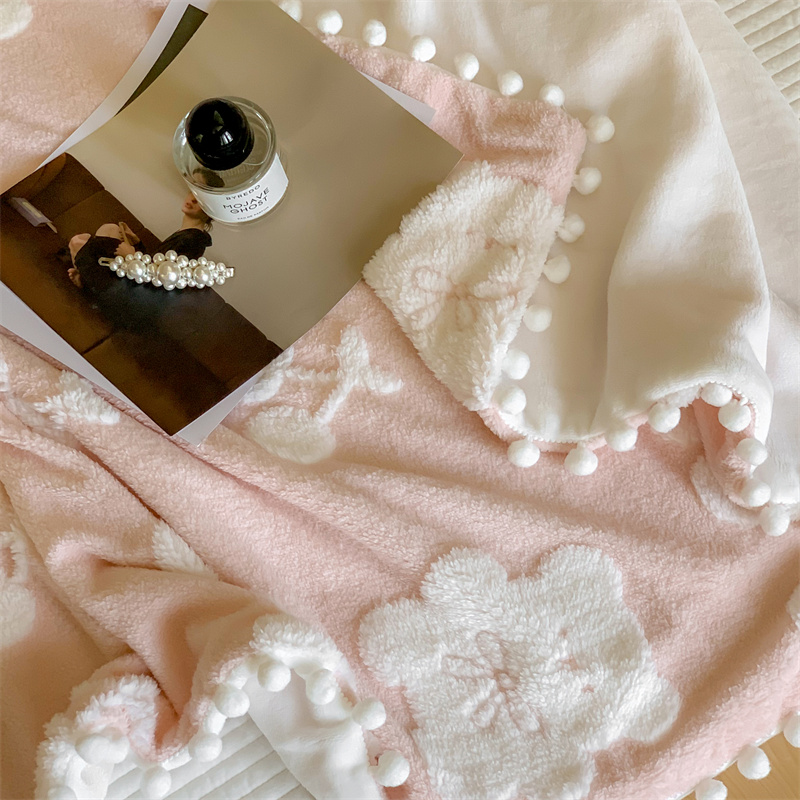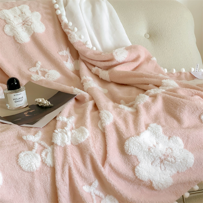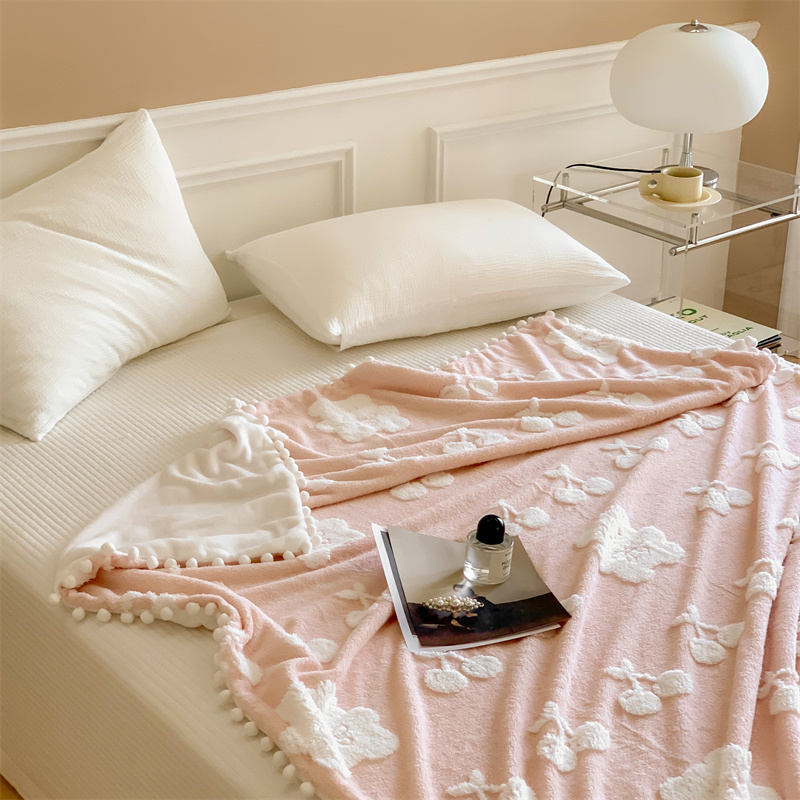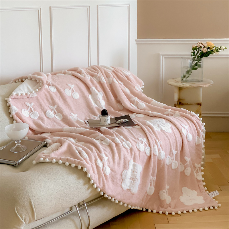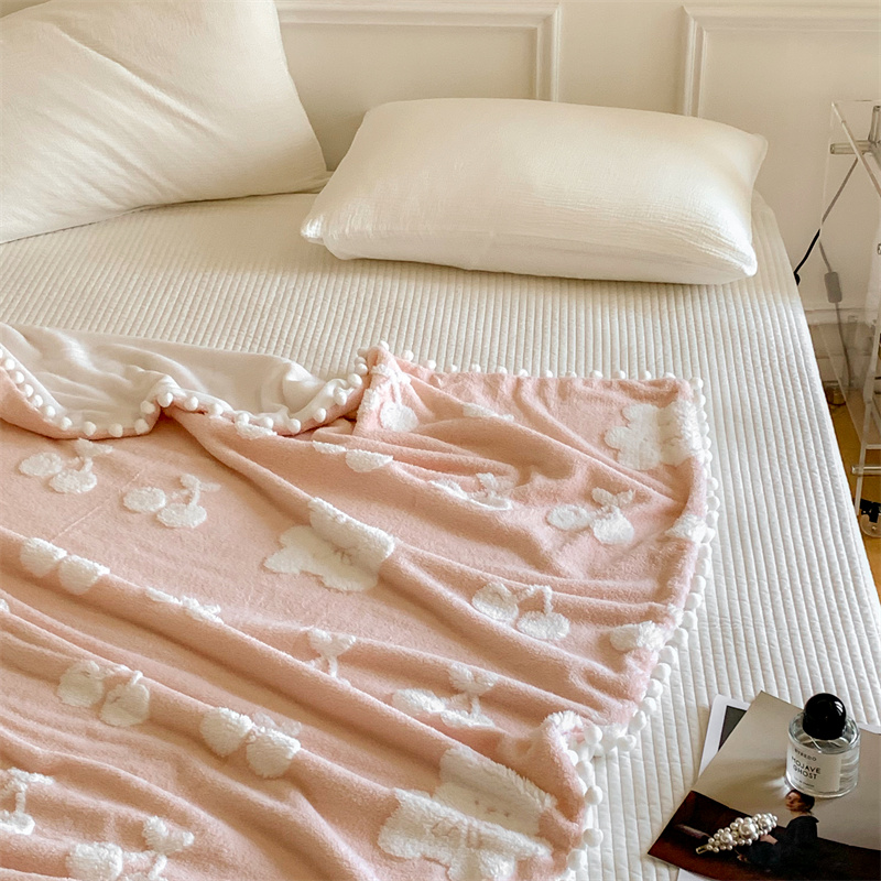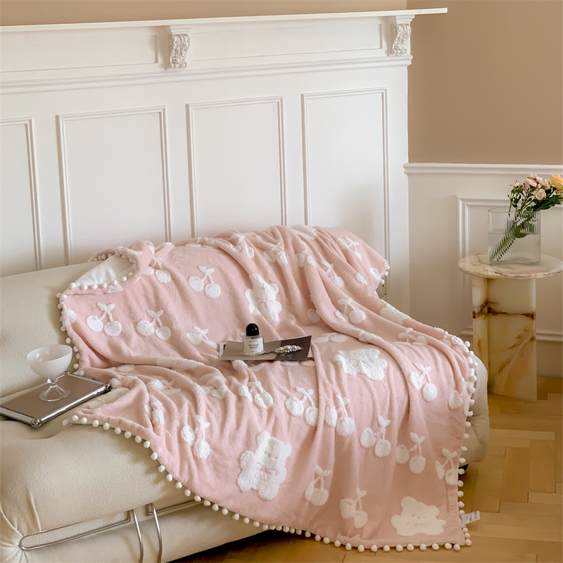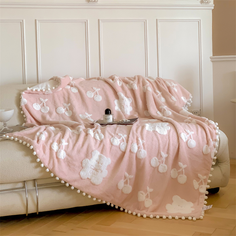 洋铭区 2022新款a版舒棉绒b版牛奶绒毯子-樱桃小熊 樱桃小熊粉
