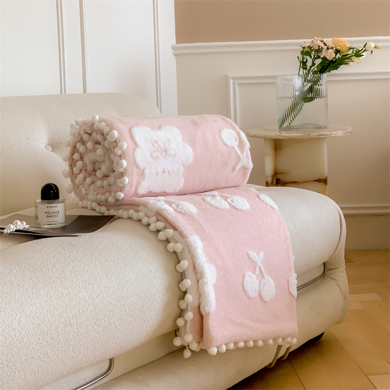 商品名称:洋铭区 2022新款a版舒棉绒b版牛奶绒毯子-樱桃小熊 樱桃小熊粉
