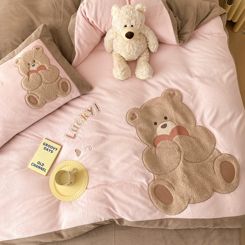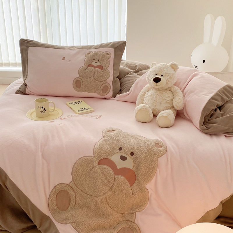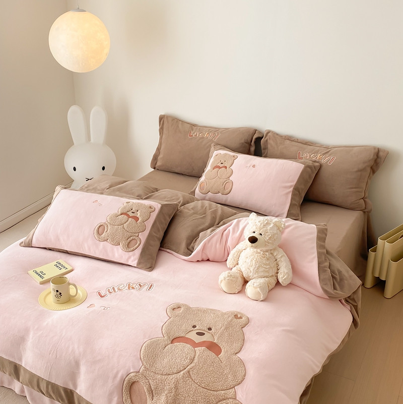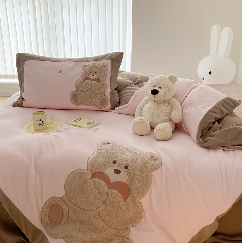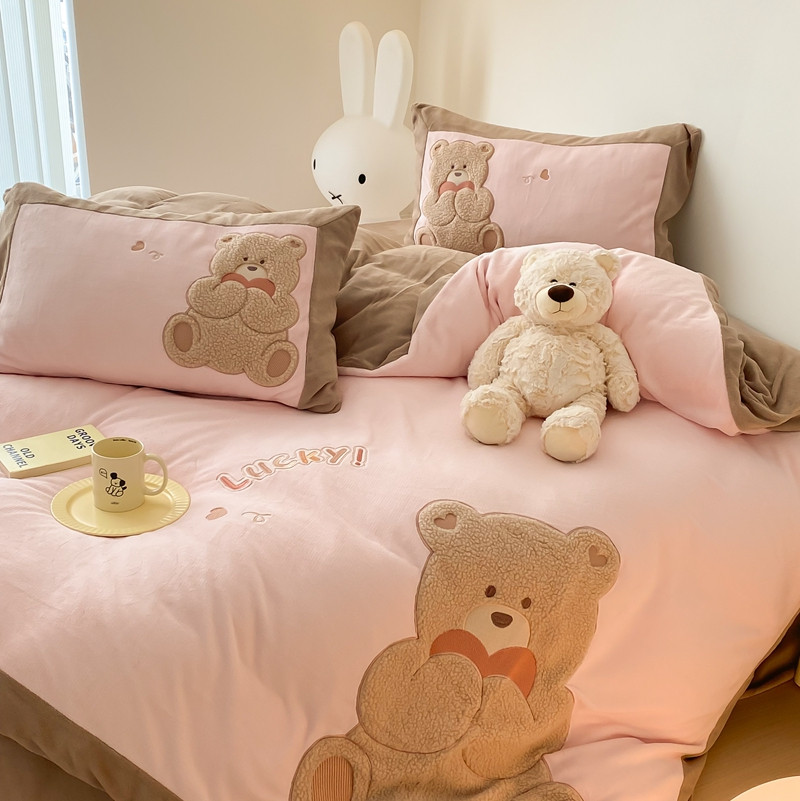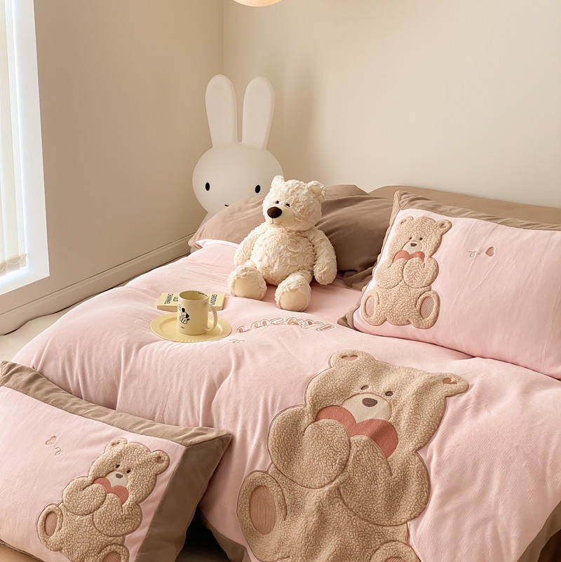 橘滋 2022新款高端系列牛奶绒贴布绣四件套-爱心熊 爱心熊-粉