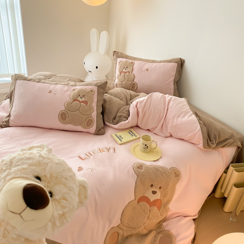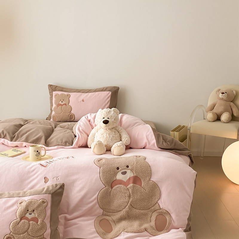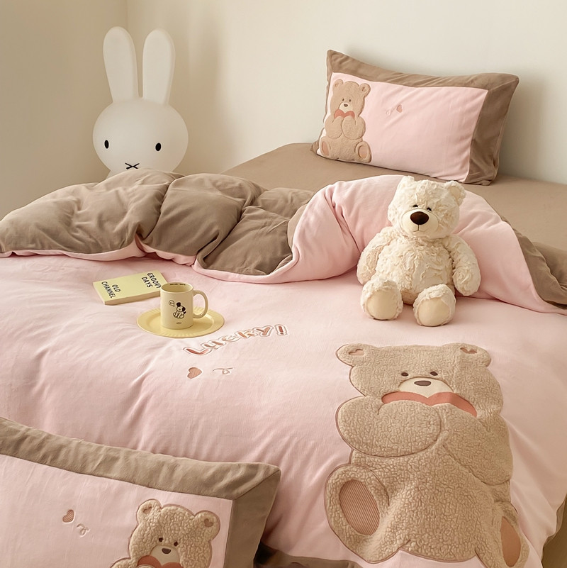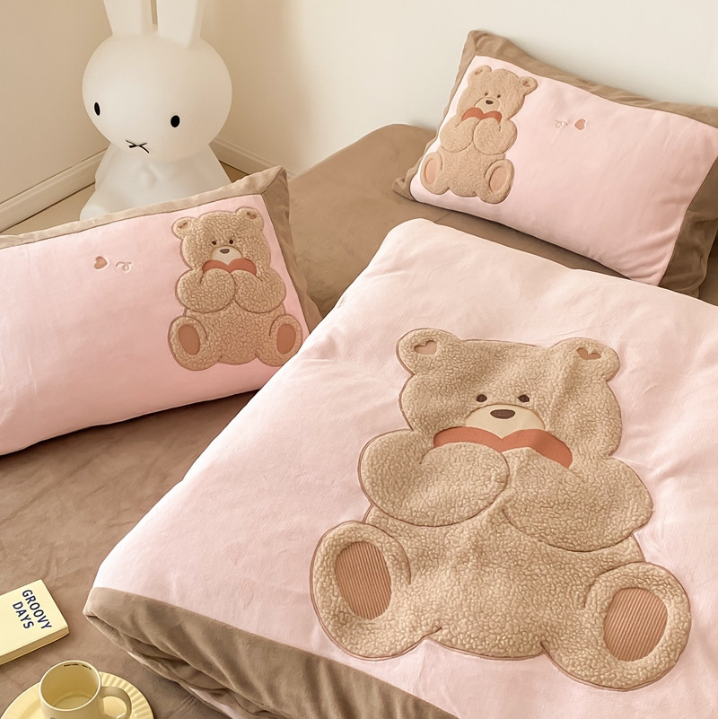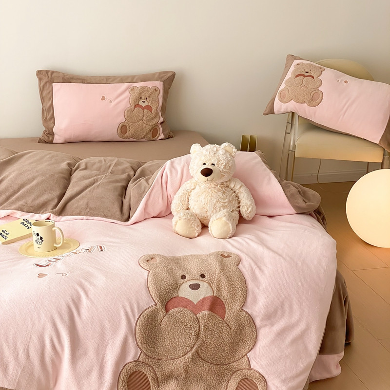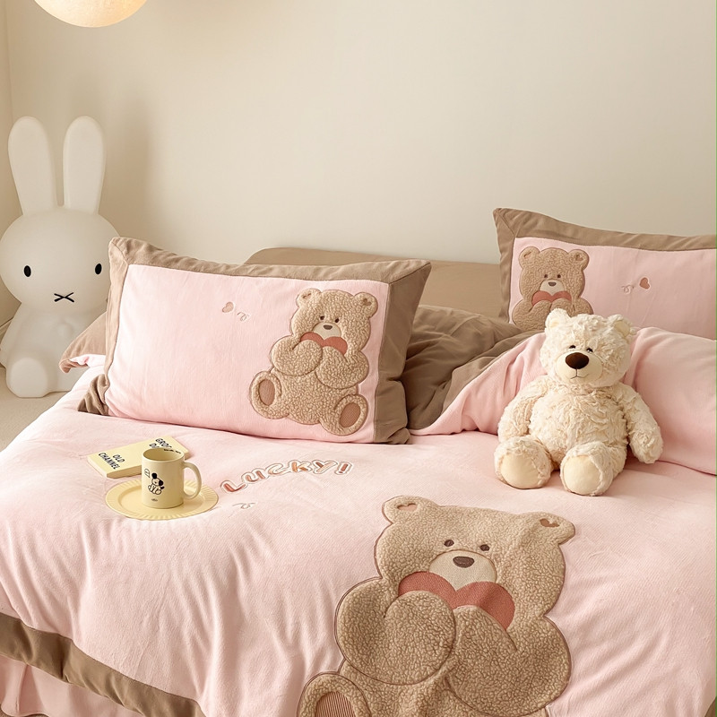 橘滋 2022新款高端系列牛奶绒贴布绣四件套-爱心熊 爱心熊-粉