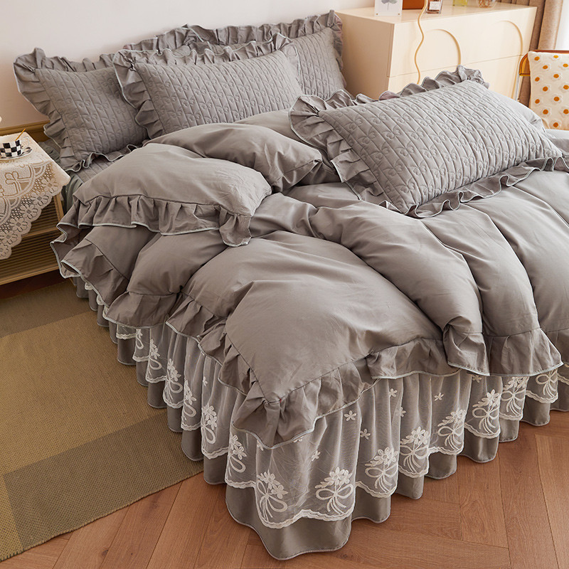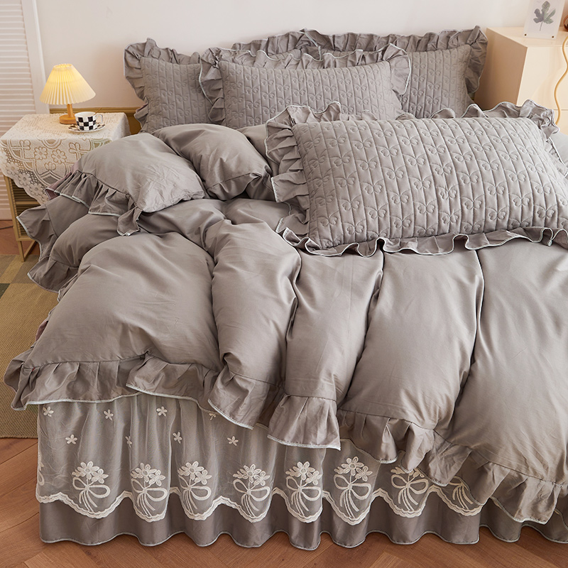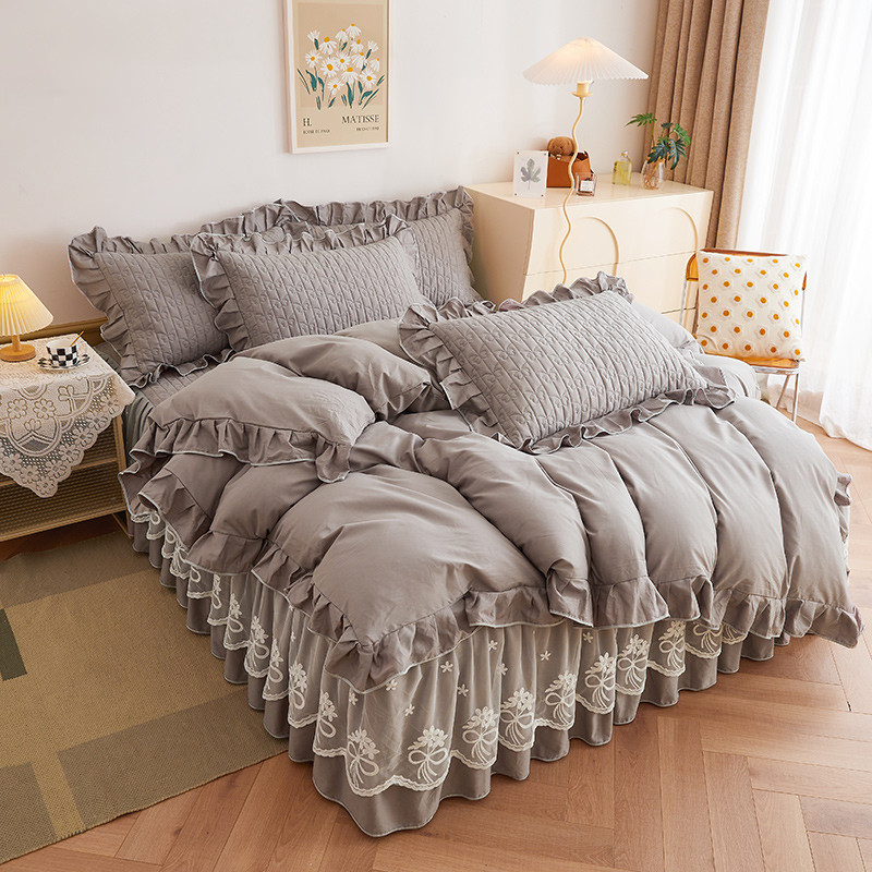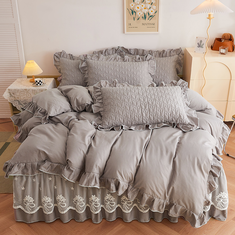 当前位置: 91家纺网 > 商品网购 > 床品套件 > 四件套 > 全棉普通四件套 > 宜凡 2023新款四季款全棉夹棉床裙四件套 春禾集 月灰