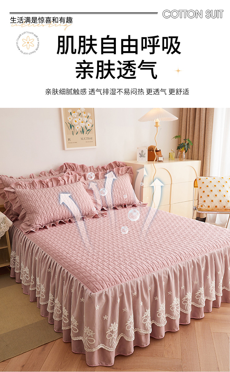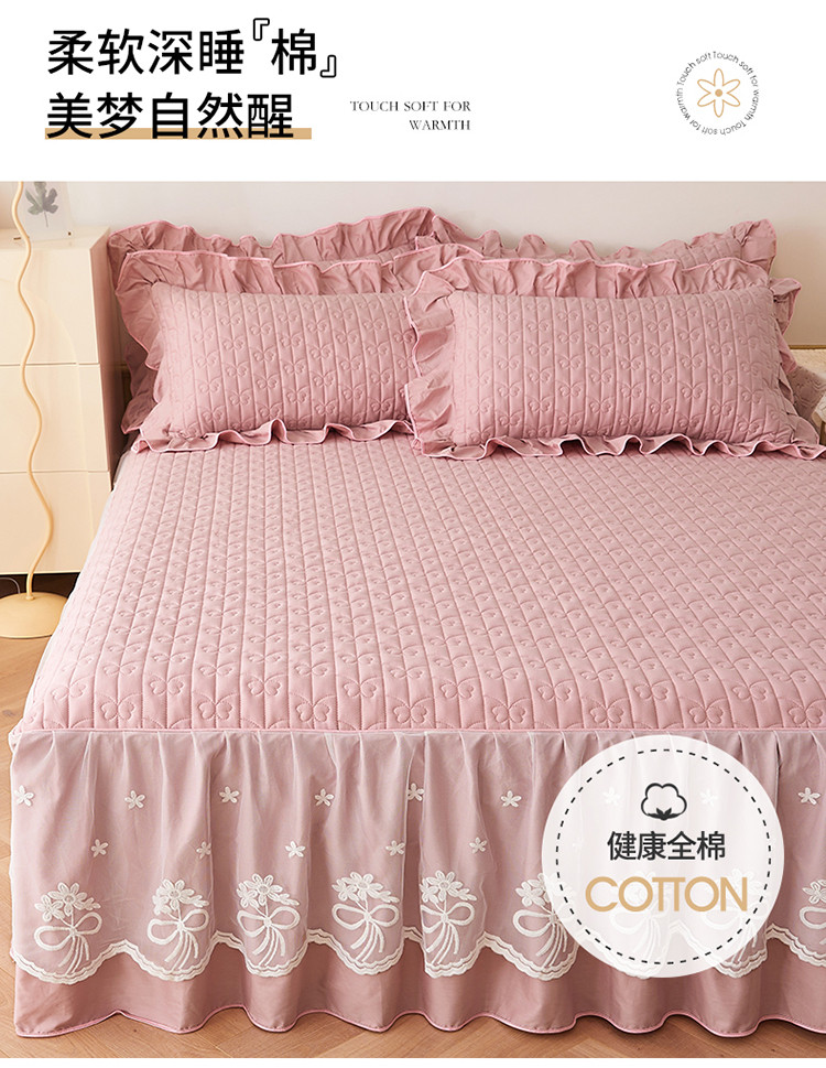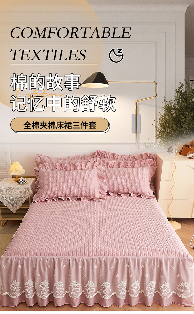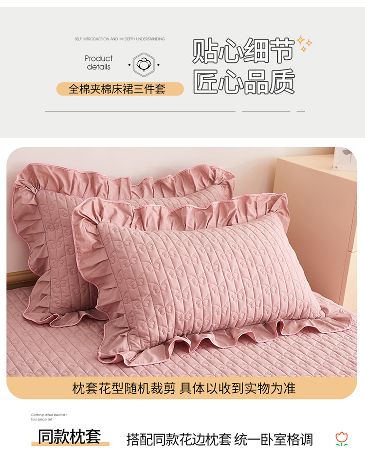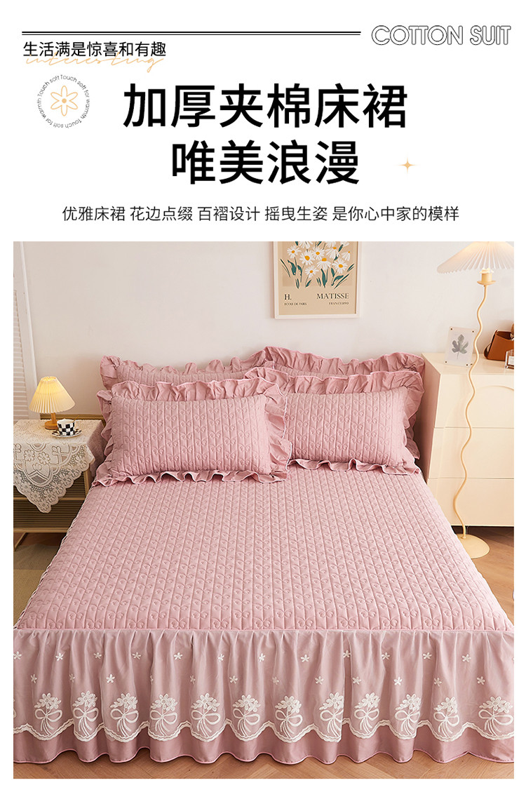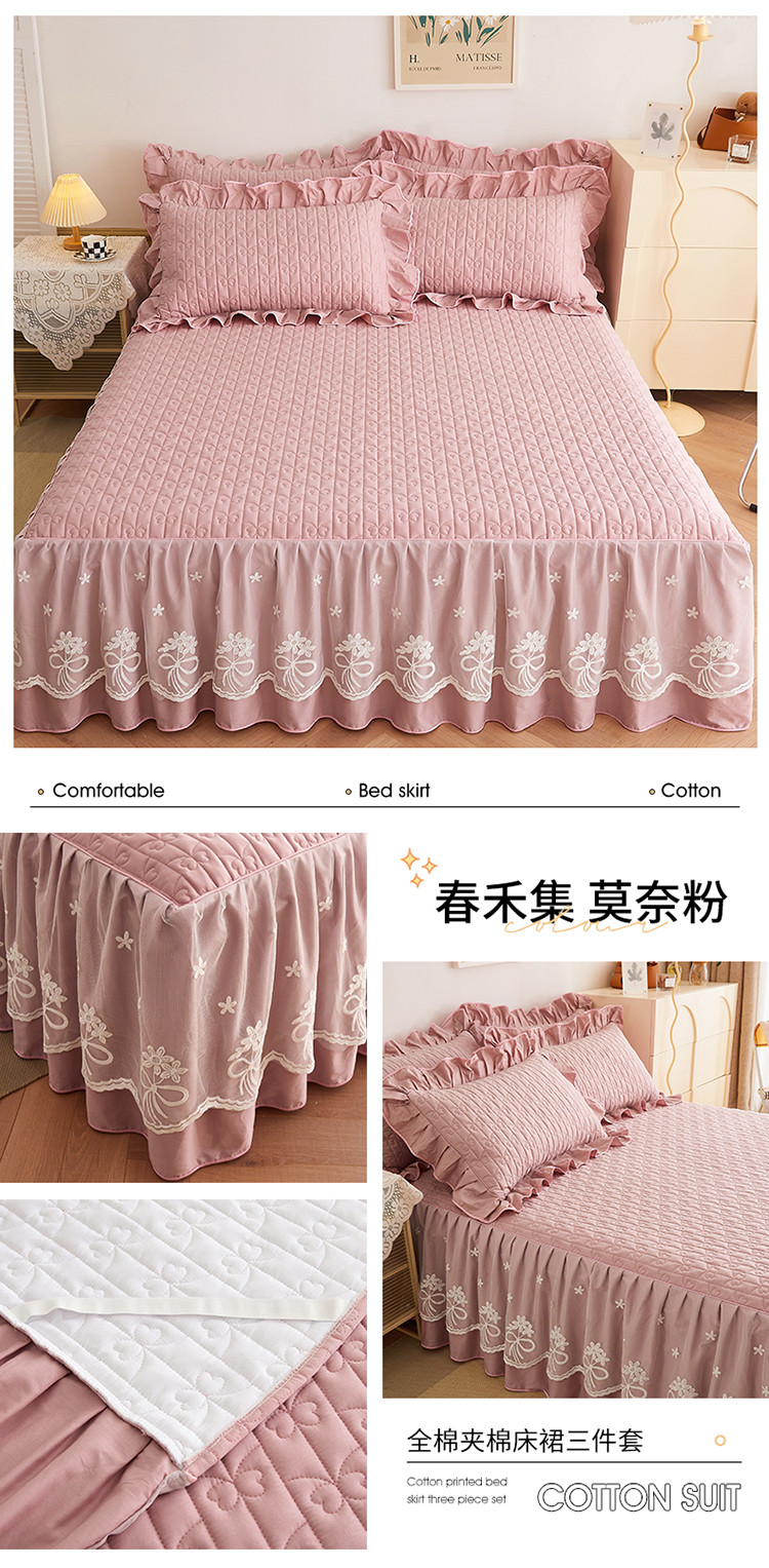 宜凡 2023新款四季款全棉夹棉床裙三件套 春禾集 莫奈粉