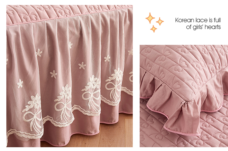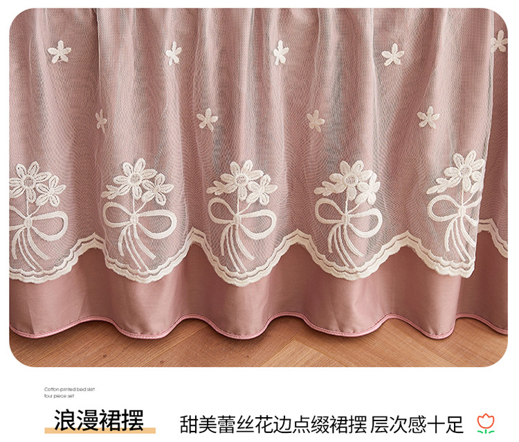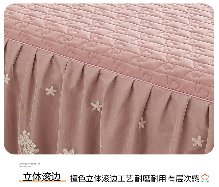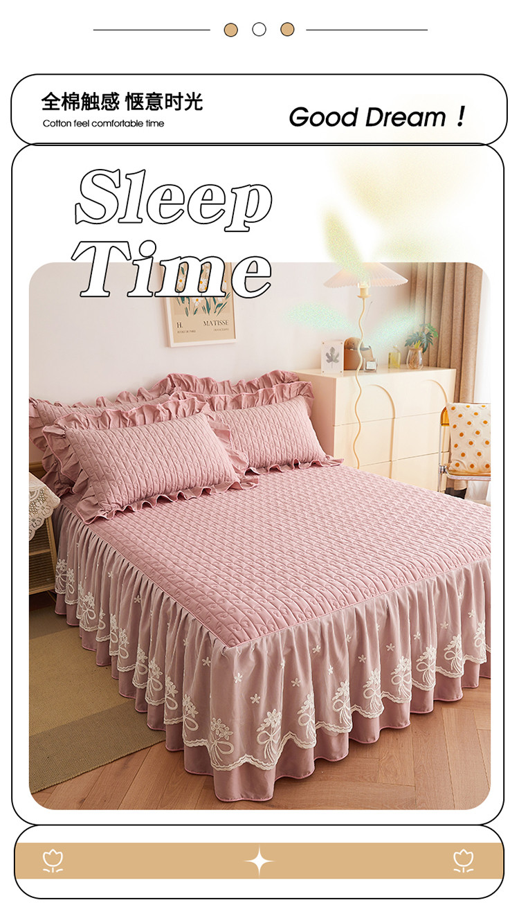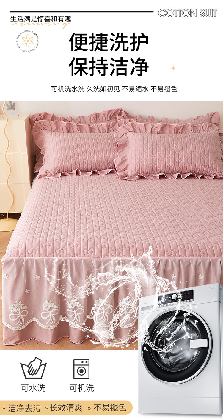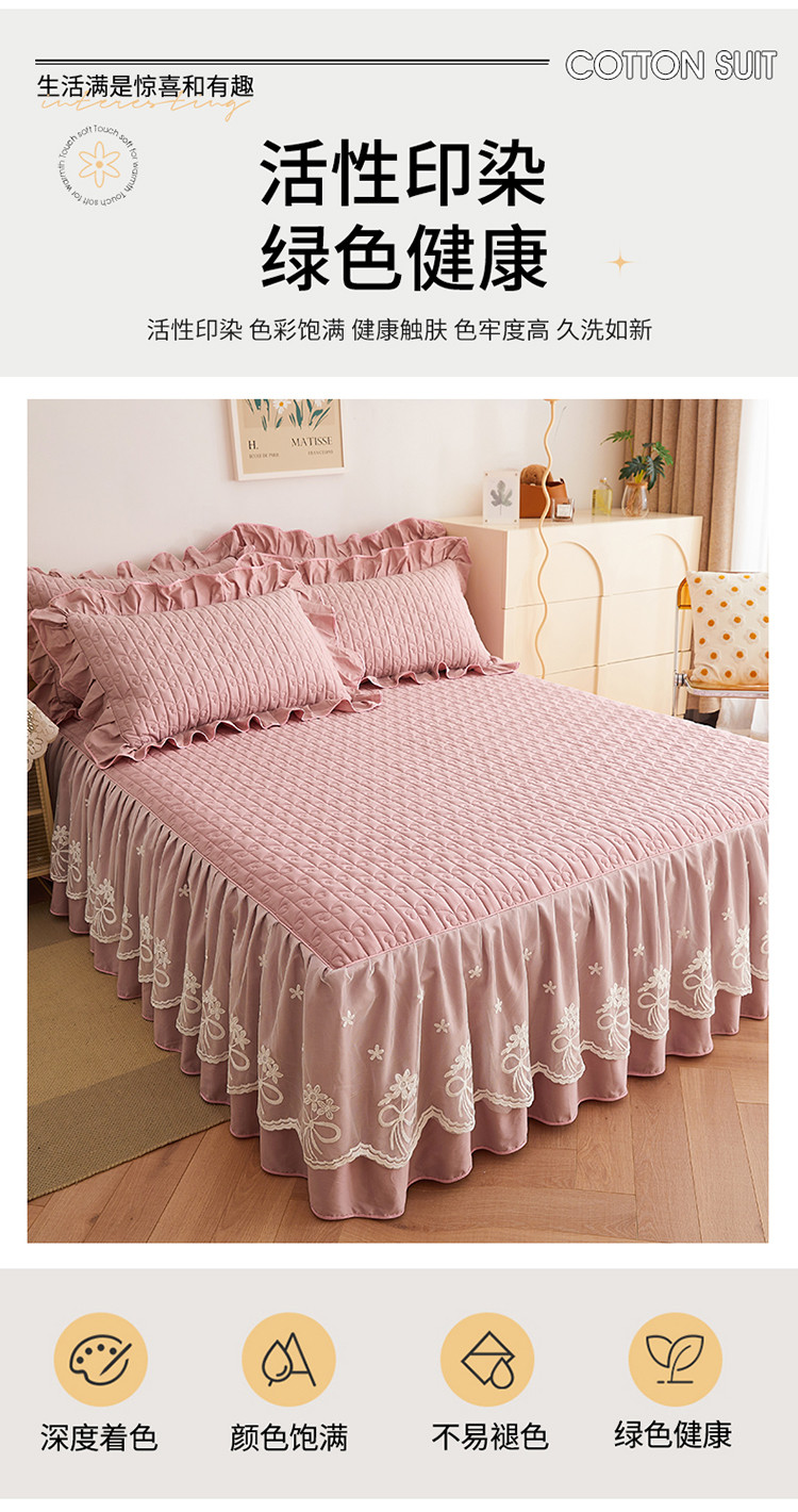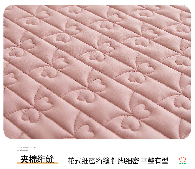 宜凡 2023新款四季款全棉夹棉床裙三件套 春禾集 莫奈粉