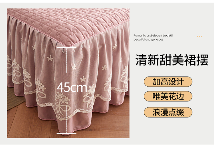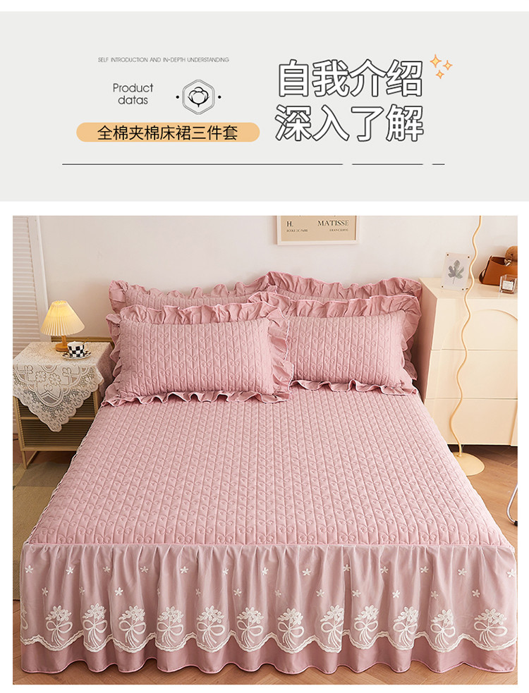 商品名称:宜凡 2023新款四季款全棉夹棉床裙三件套 春禾集 莫奈粉