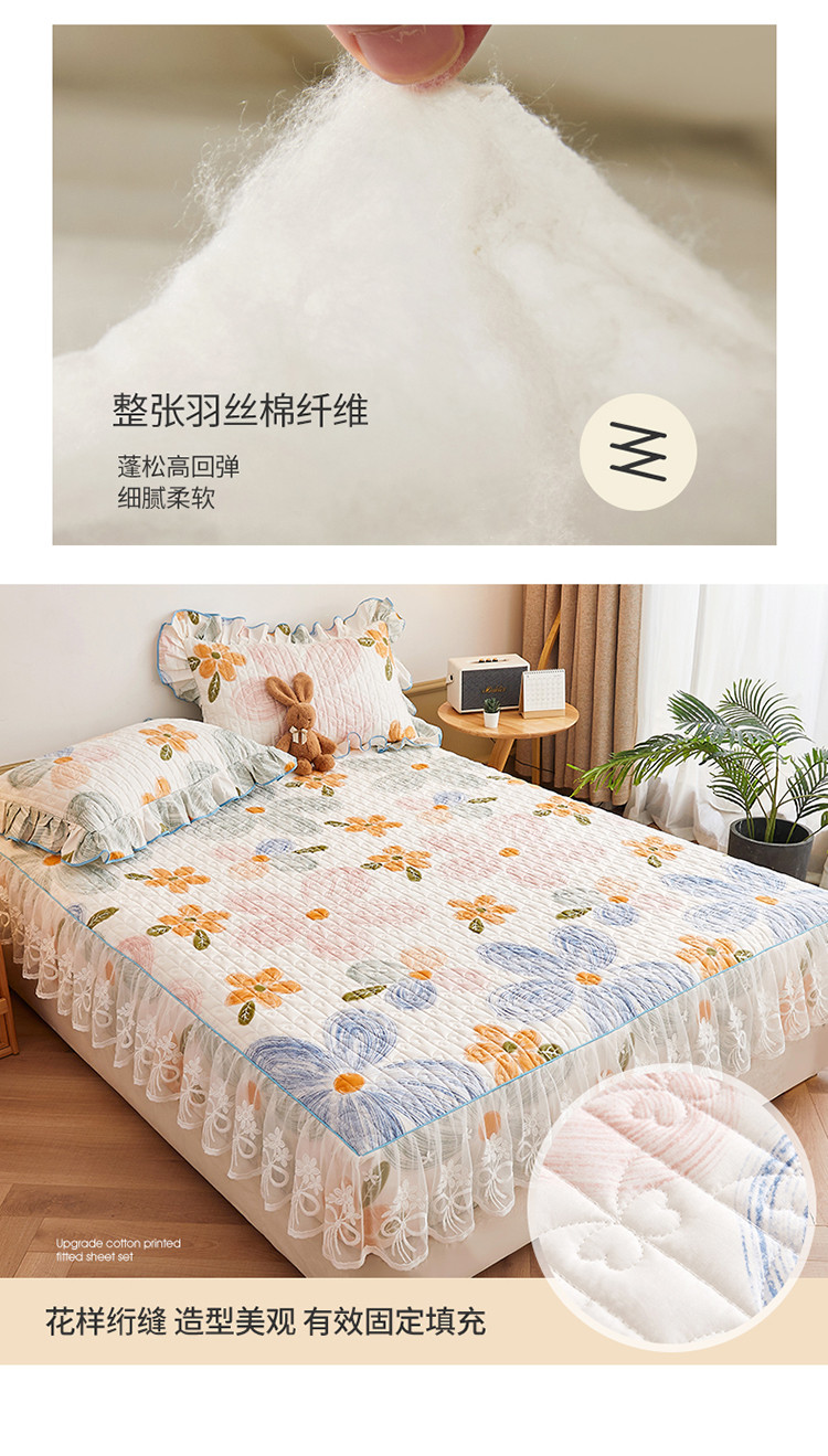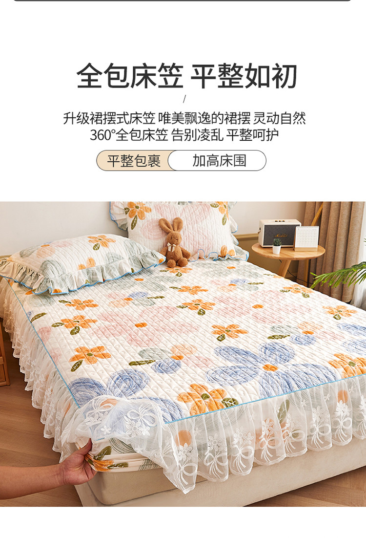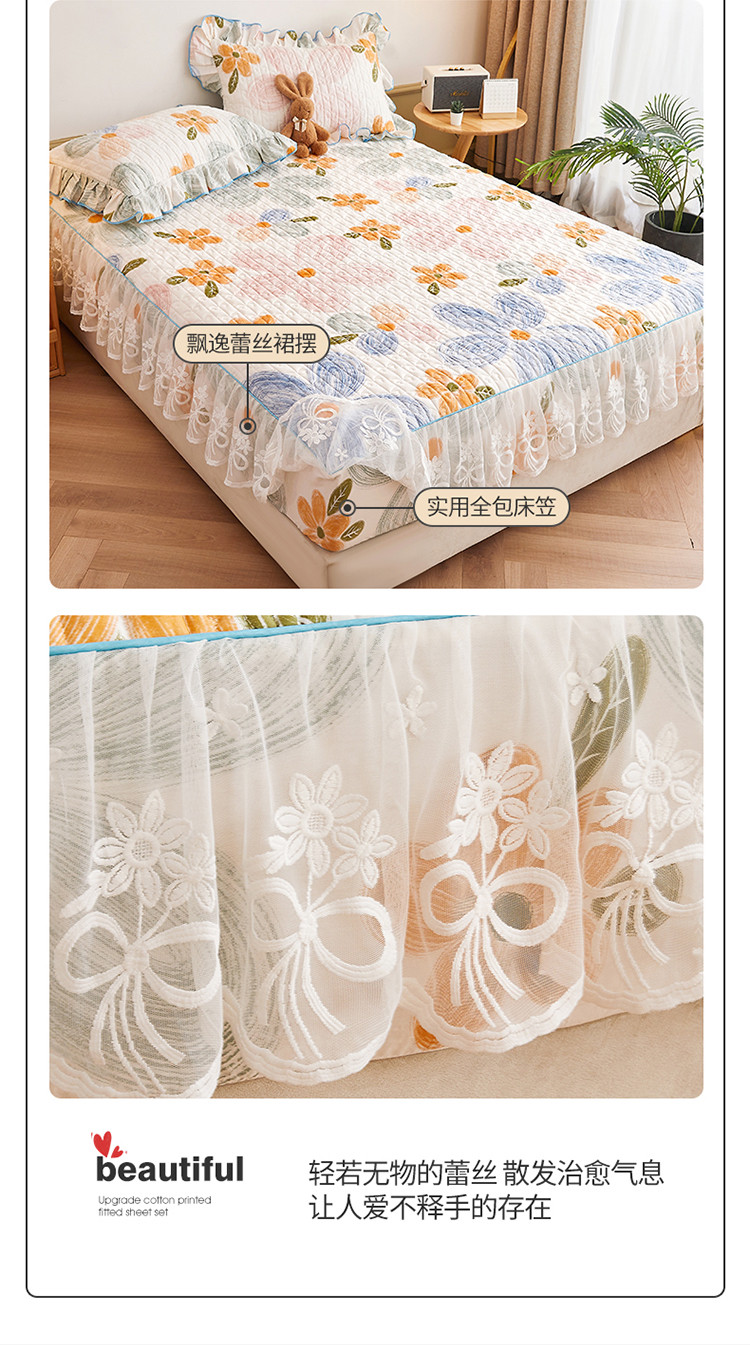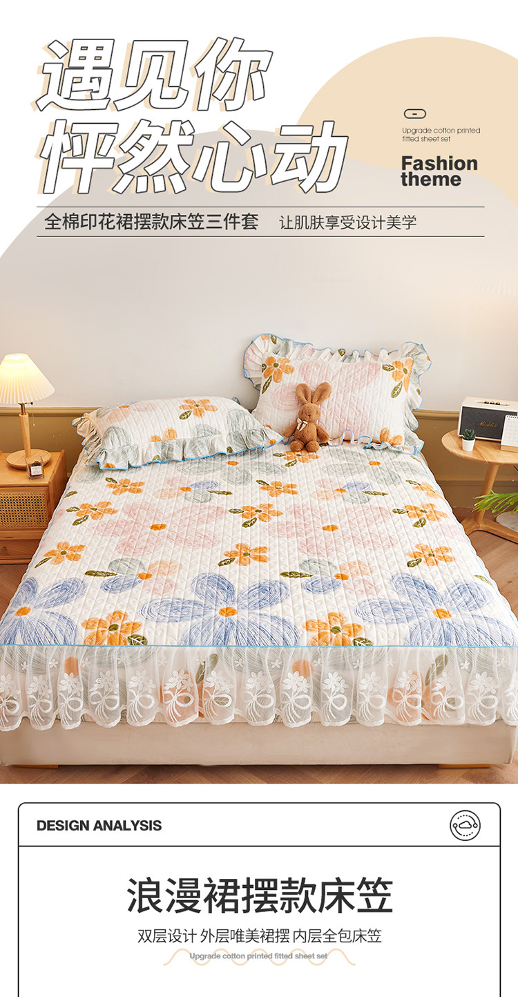 宜凡 2023新款四季款夹棉小清新床笠三件套 清风花语