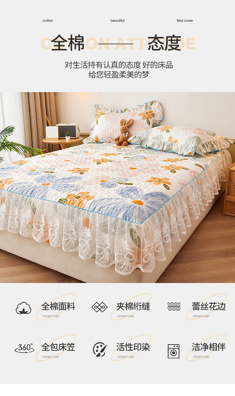 (总)宜凡家纺 2025新款全棉数码印花床裙三件套系列一,静若幽兰,浮云织梦,梦幻花园,陌上花开
