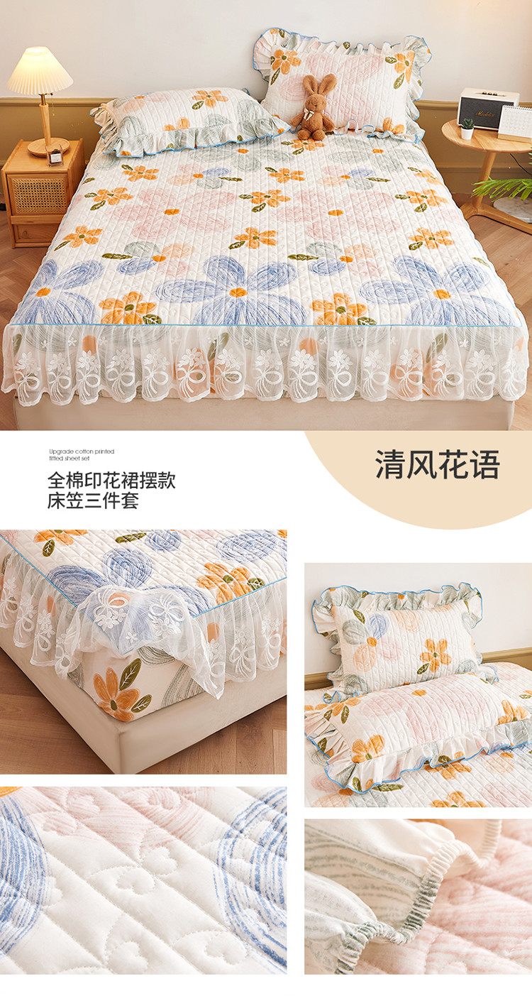 商品名称:宜凡 2023新款四季款夹棉小清新床笠三件套 清风花语