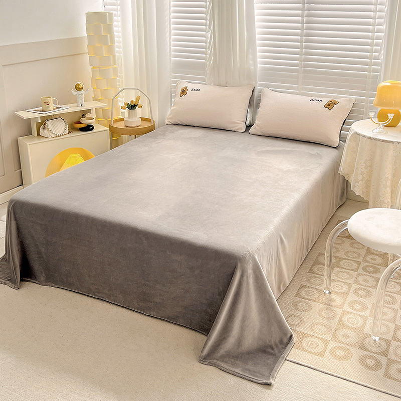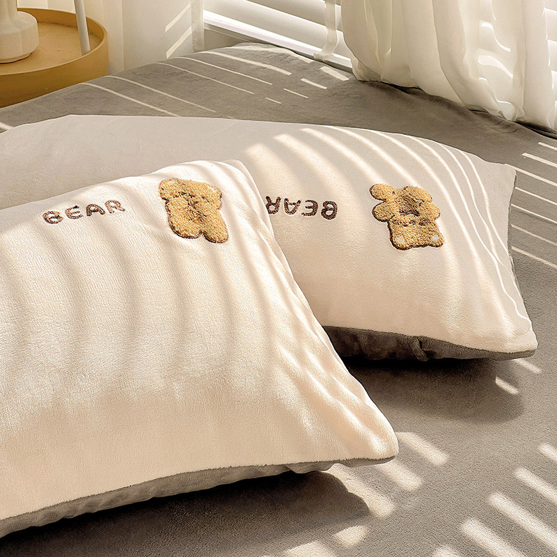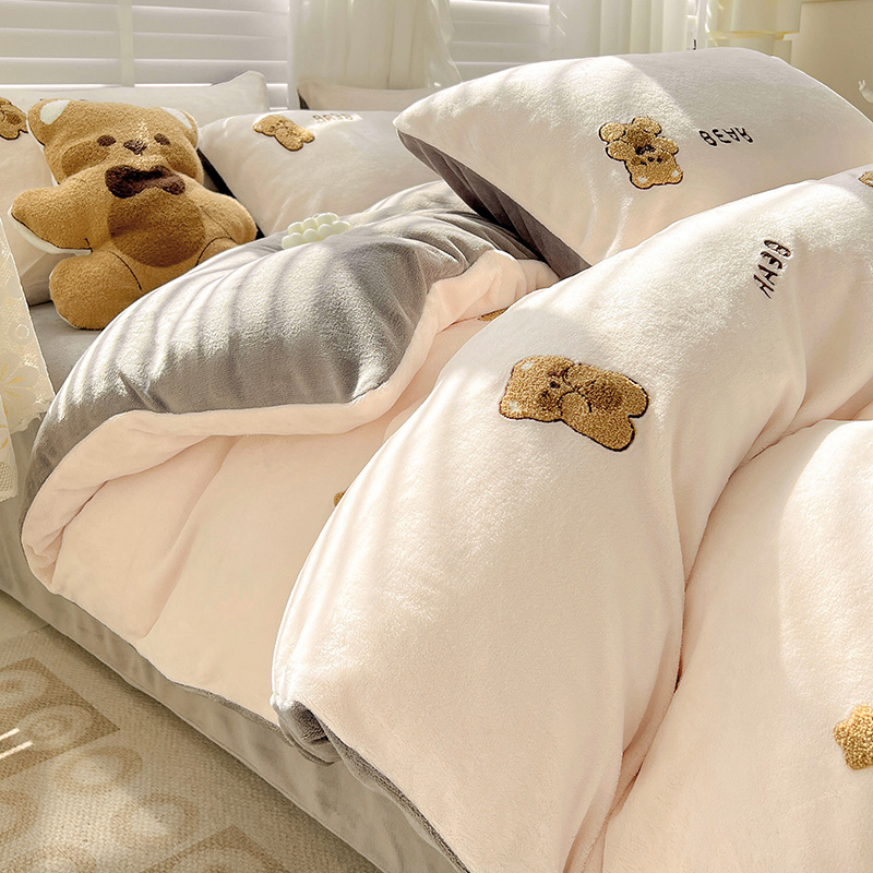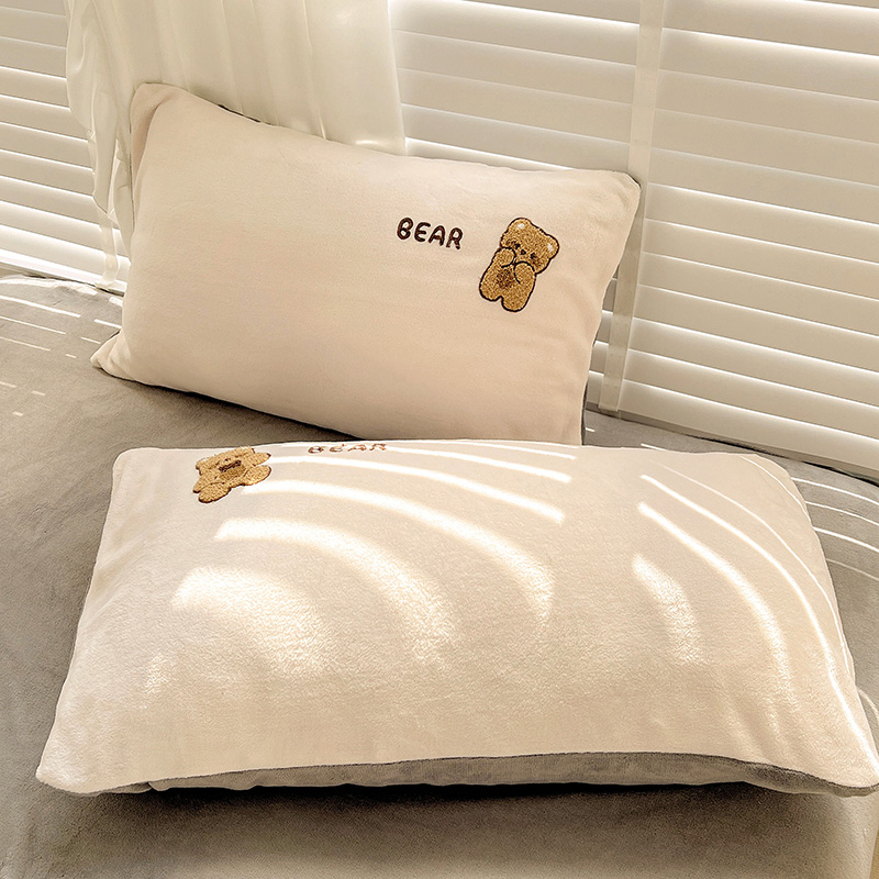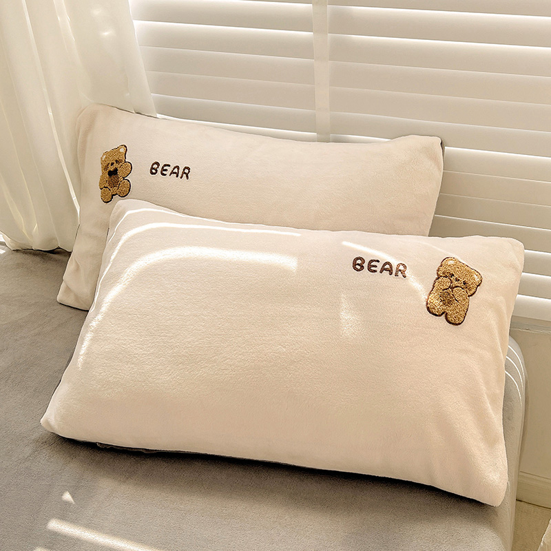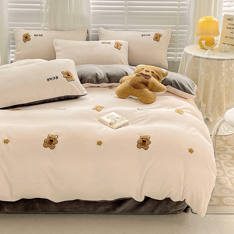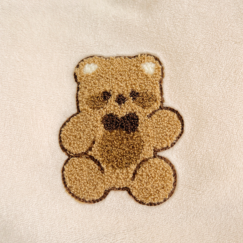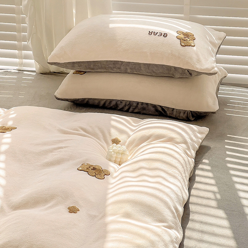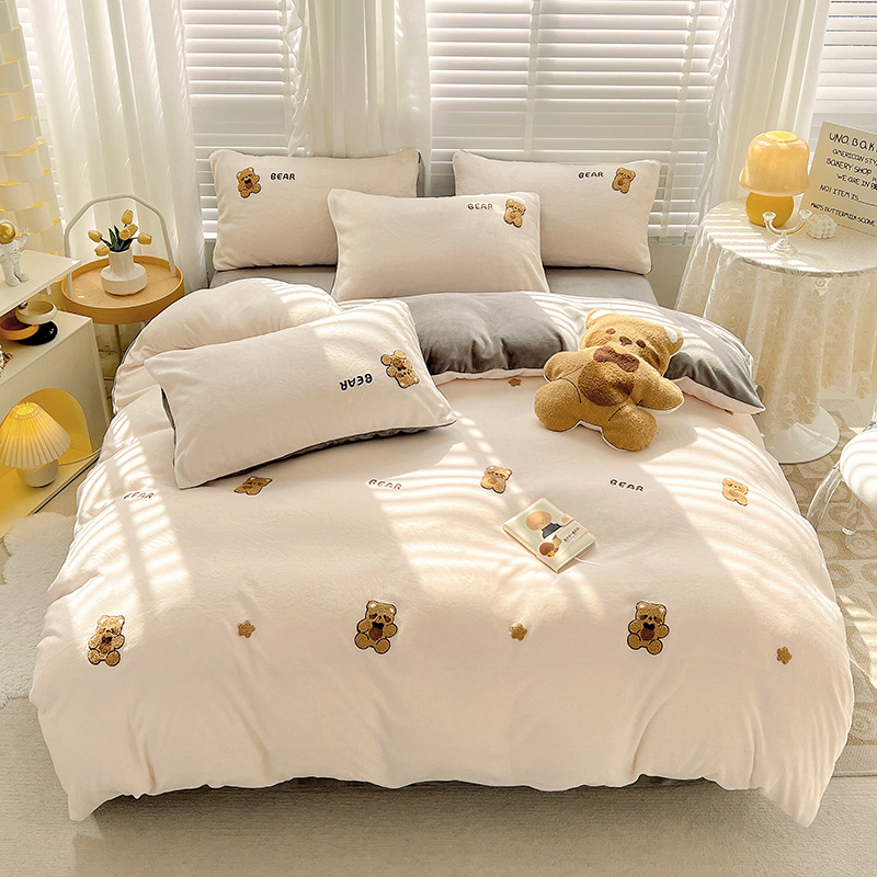 寐居2022新款毛巾绣牛奶绒单被套 萌萌熊-米白
