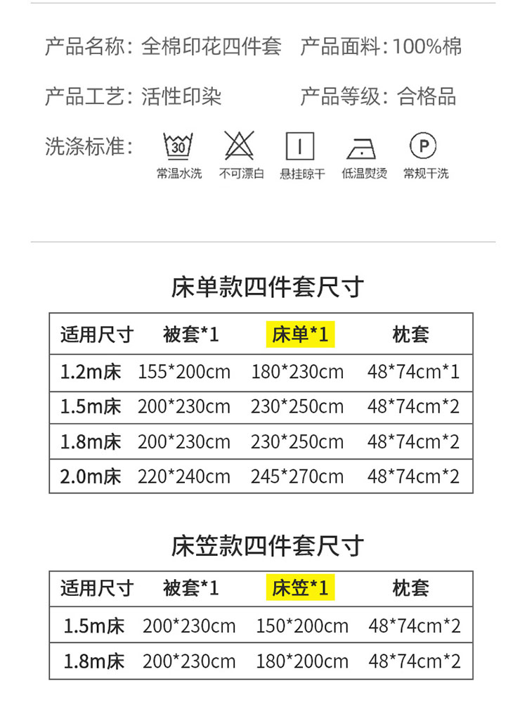 商品名称:(总)晨希2023年新款全棉花卉印花简约款多规格四件套