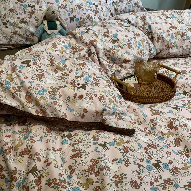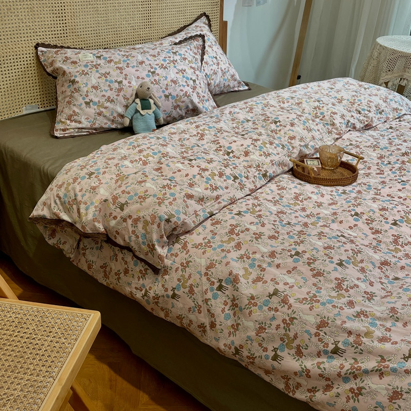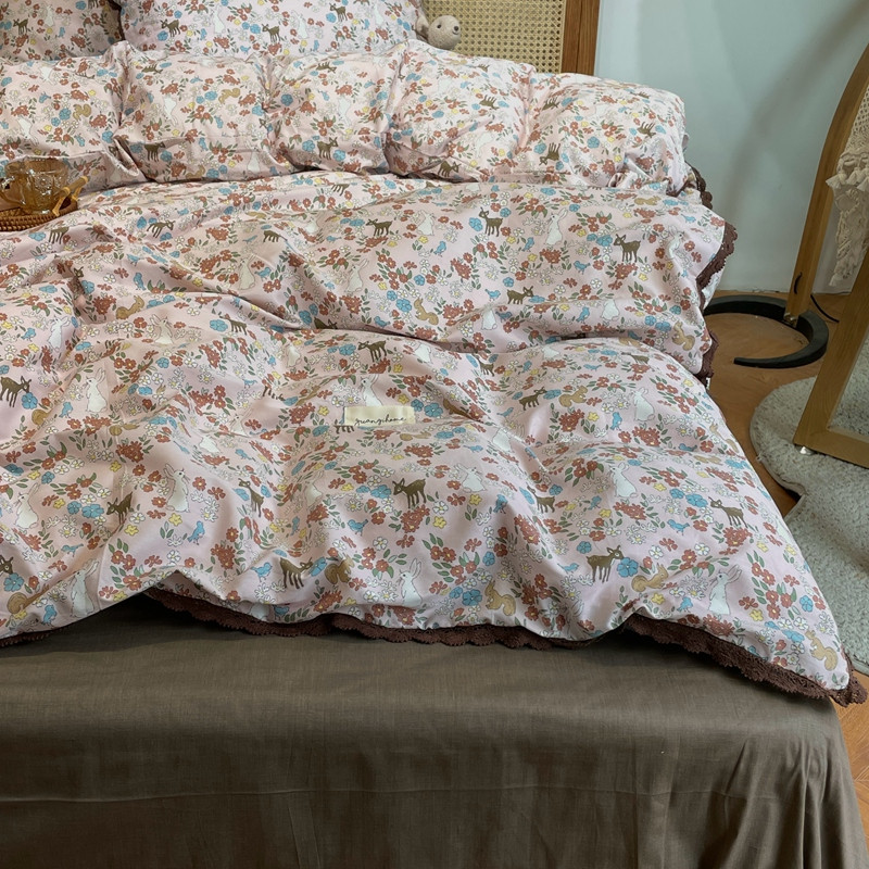 源启生活 2022新款全棉法式田园风花边款四件套 鹿灵