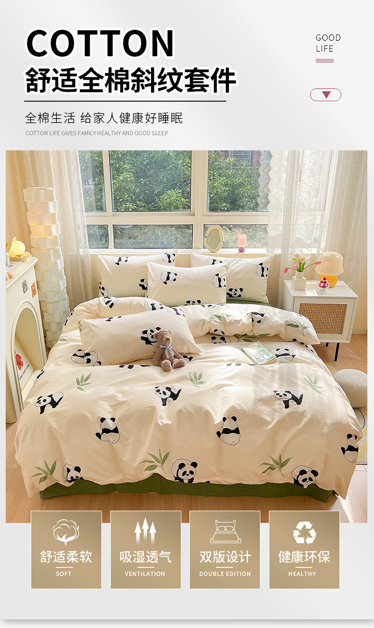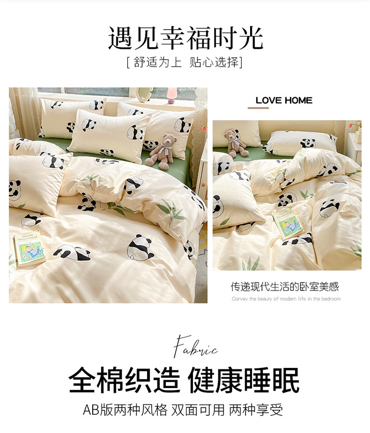 金丝鸟 2023新款全棉小清新四件套 熊猫宝宝