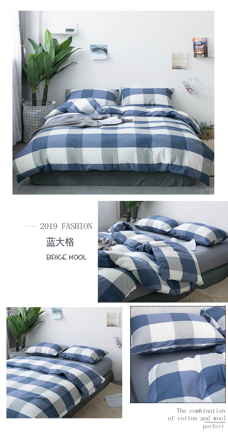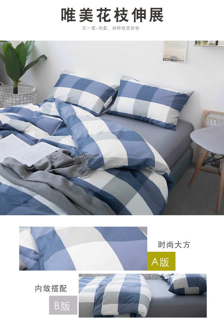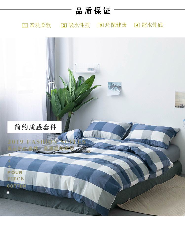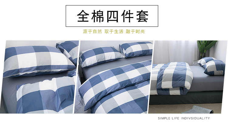 简宜 2023新款北欧简约全棉四件套 蓝大格