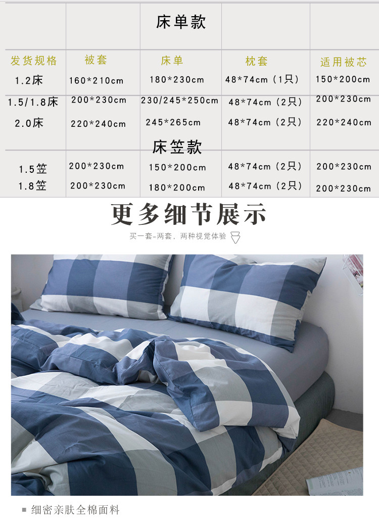 商品名称:简宜 2023新款北欧简约全棉四件套 蓝大格