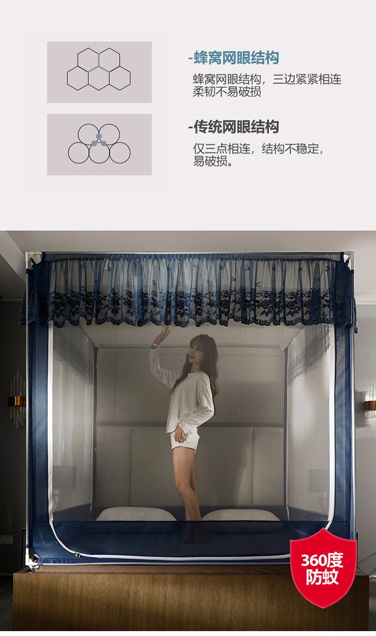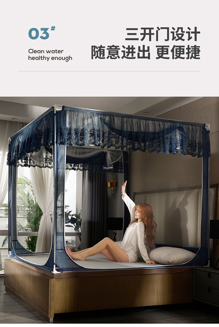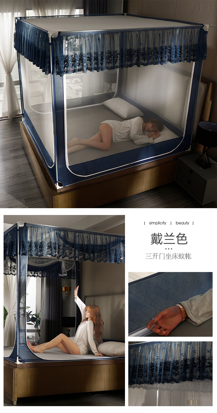 商品名称:飞轮海 2023新款大空间三开门方顶蚊帐-Z78 戴兰色