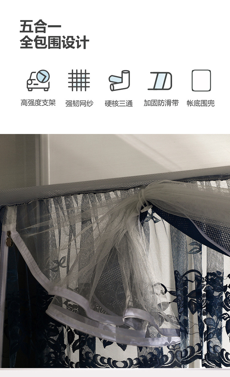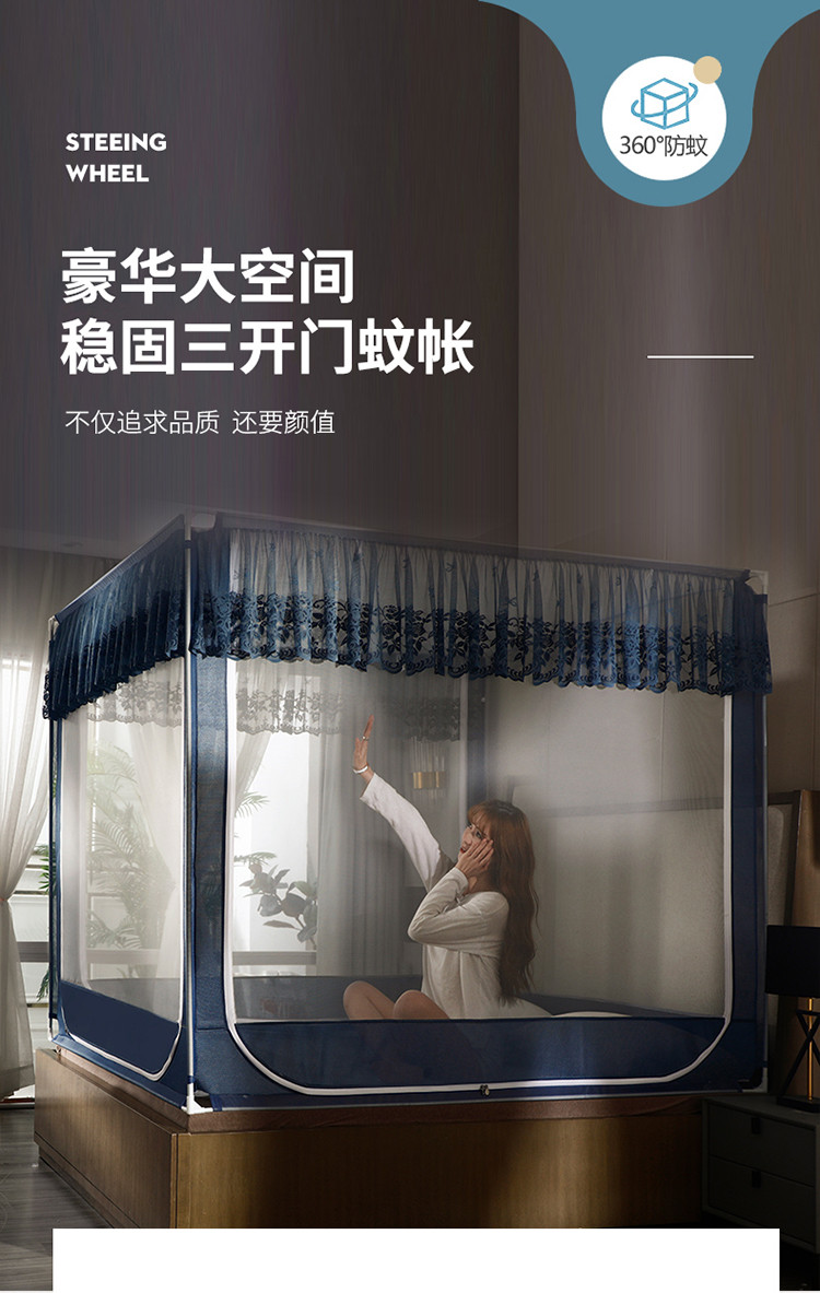 (总)飞轮海蚊帐 2023新款U型三开门遮光坐床蚊帐-Z-75,黛蓝,奶油黄,香槟