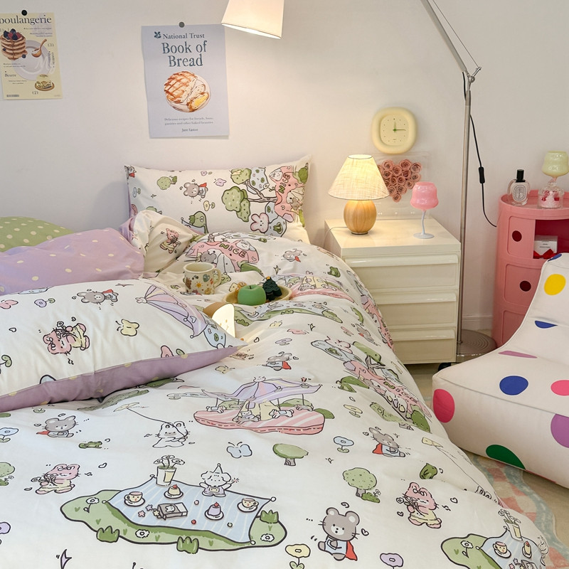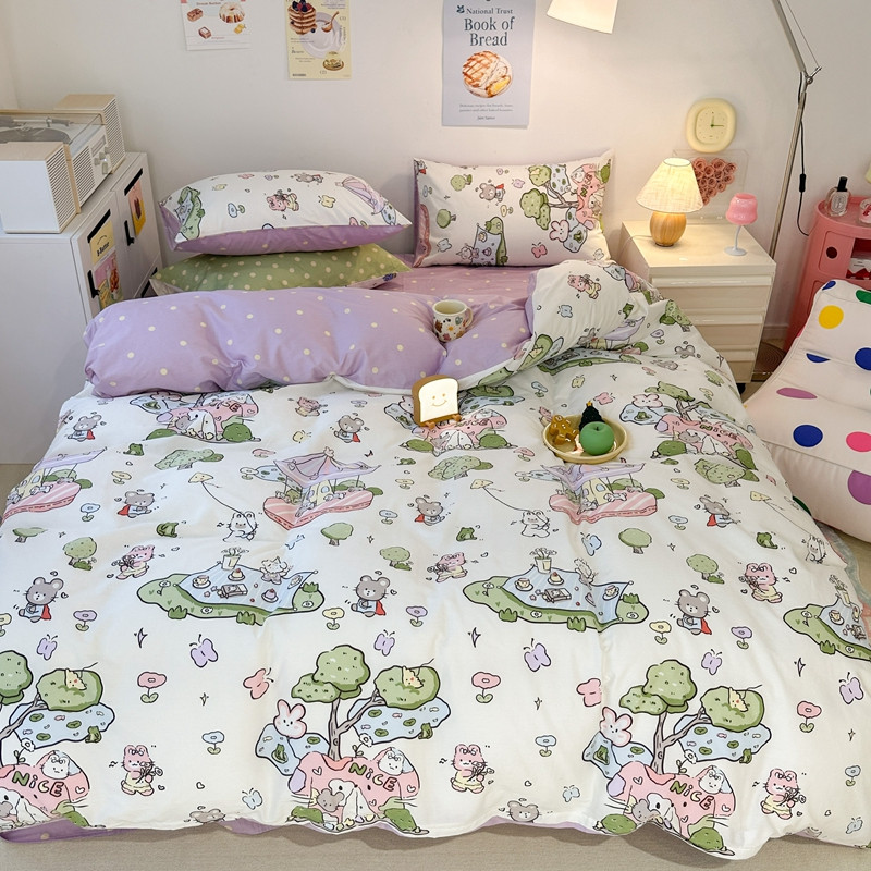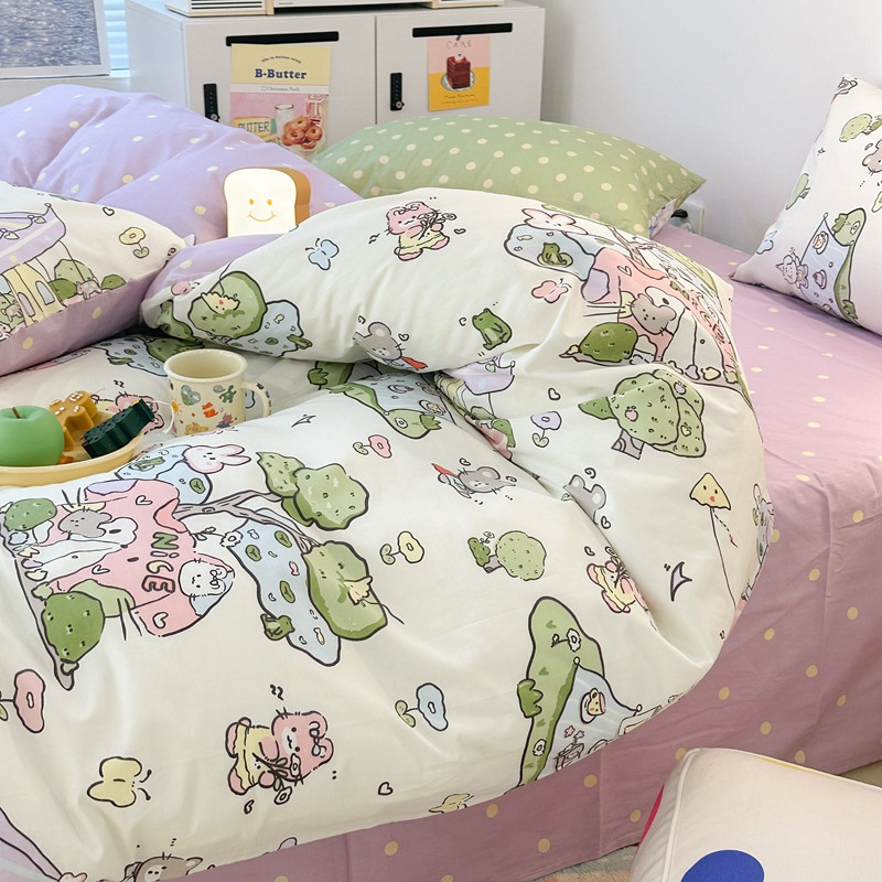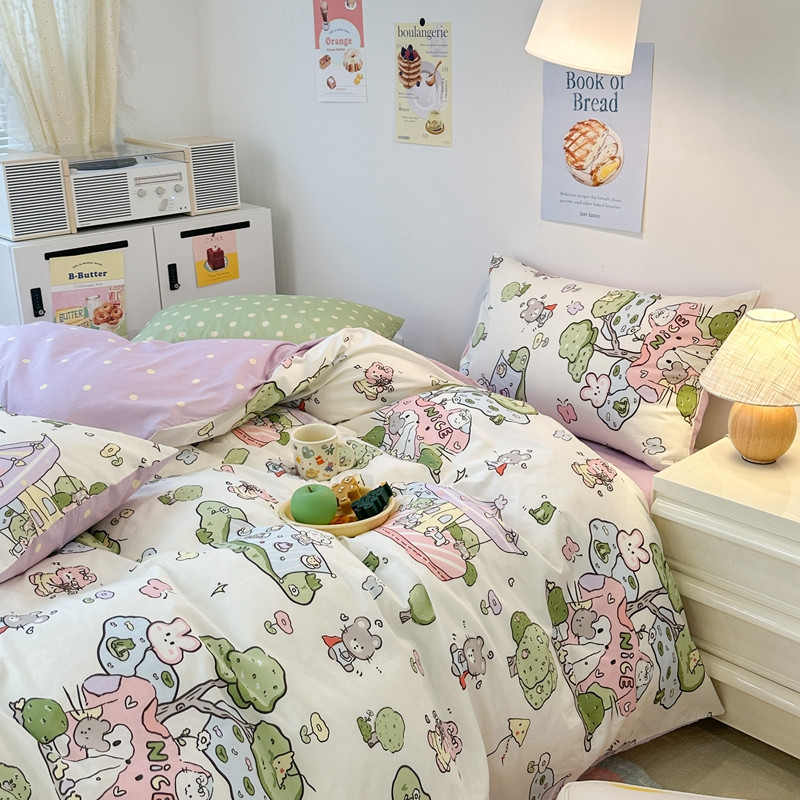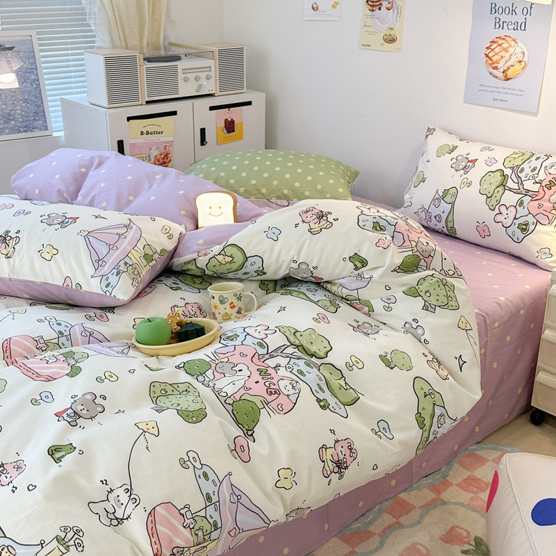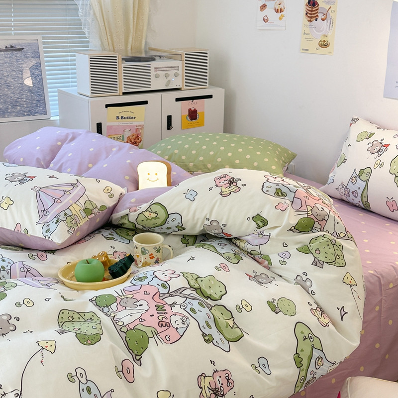 (总)昔可 2023新款学生季卡通普通款四件套,彩色气球熊,彩条恐龙,憨憨熊,花蜜小兔,蘑菇兔,圈圈草莓,蔬菜小兔,郁金香小萌狗