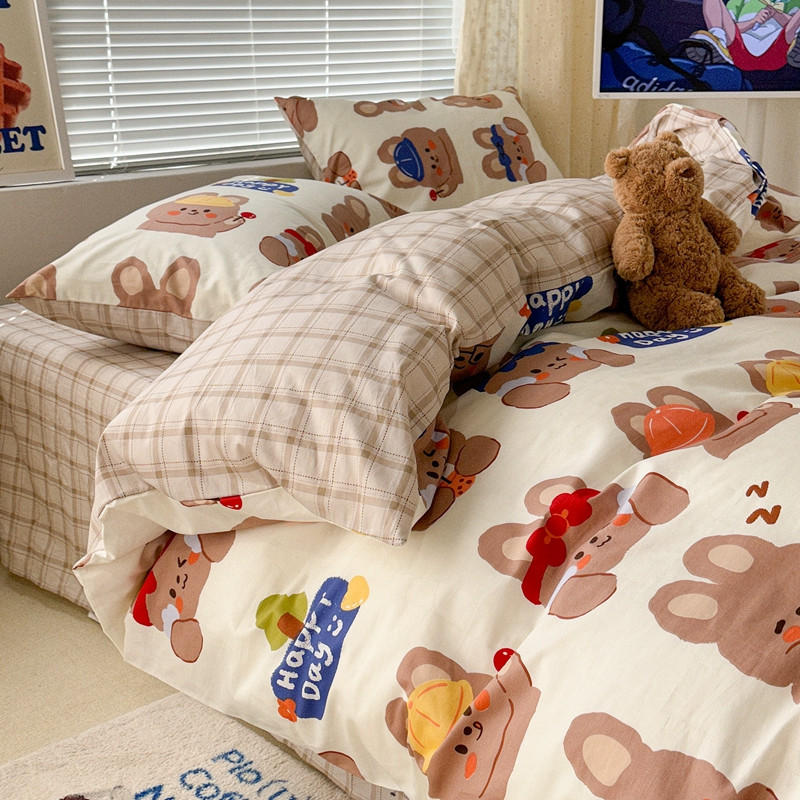 (总)昔可 2023新款学生季卡通普通款四件套,彩色气球熊,彩条恐龙,憨憨熊,花蜜小兔,蘑菇兔,圈圈草莓,蔬菜小兔,郁金香小萌狗